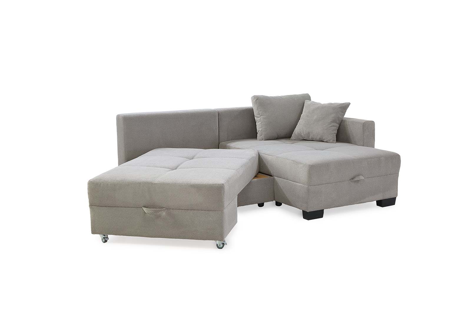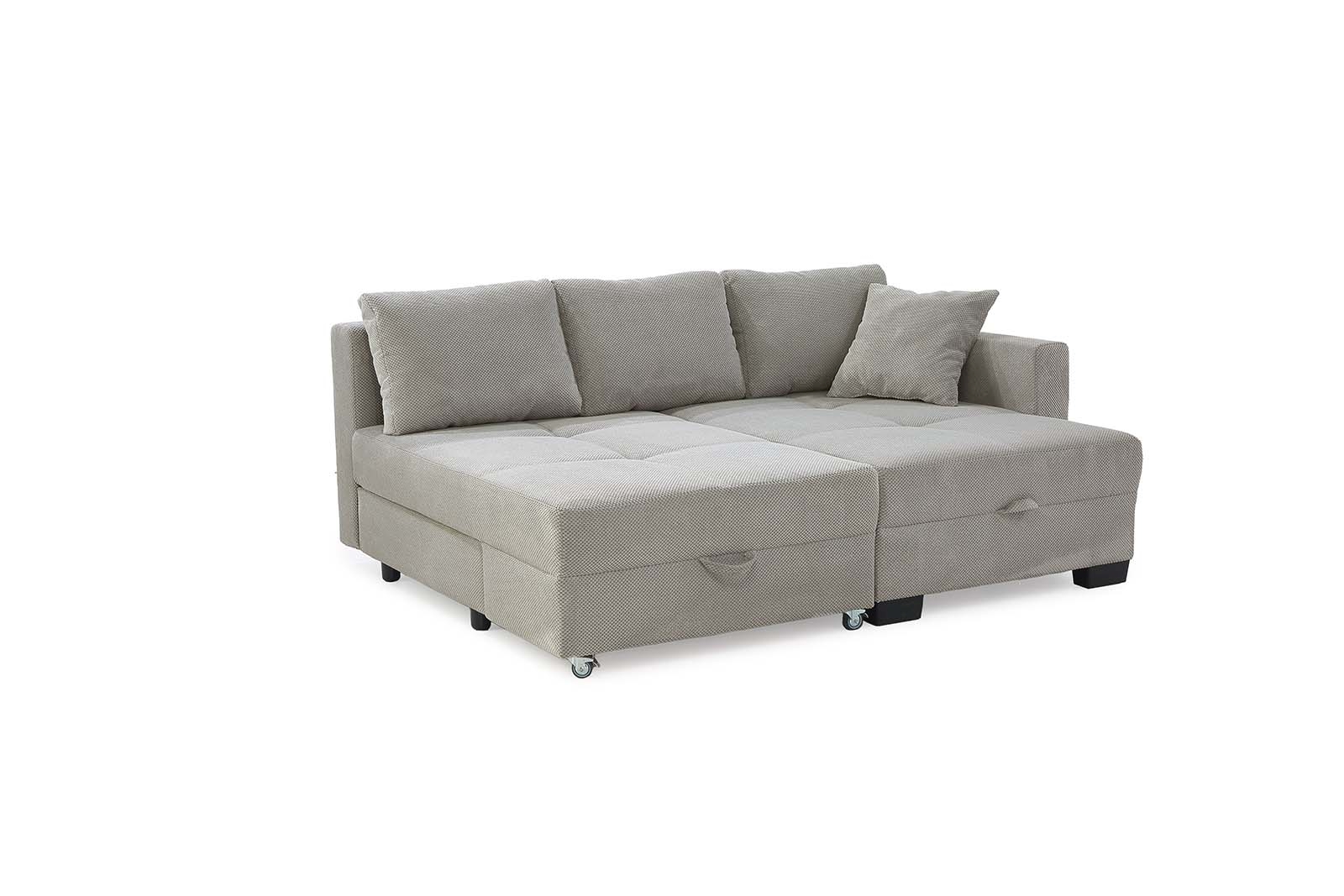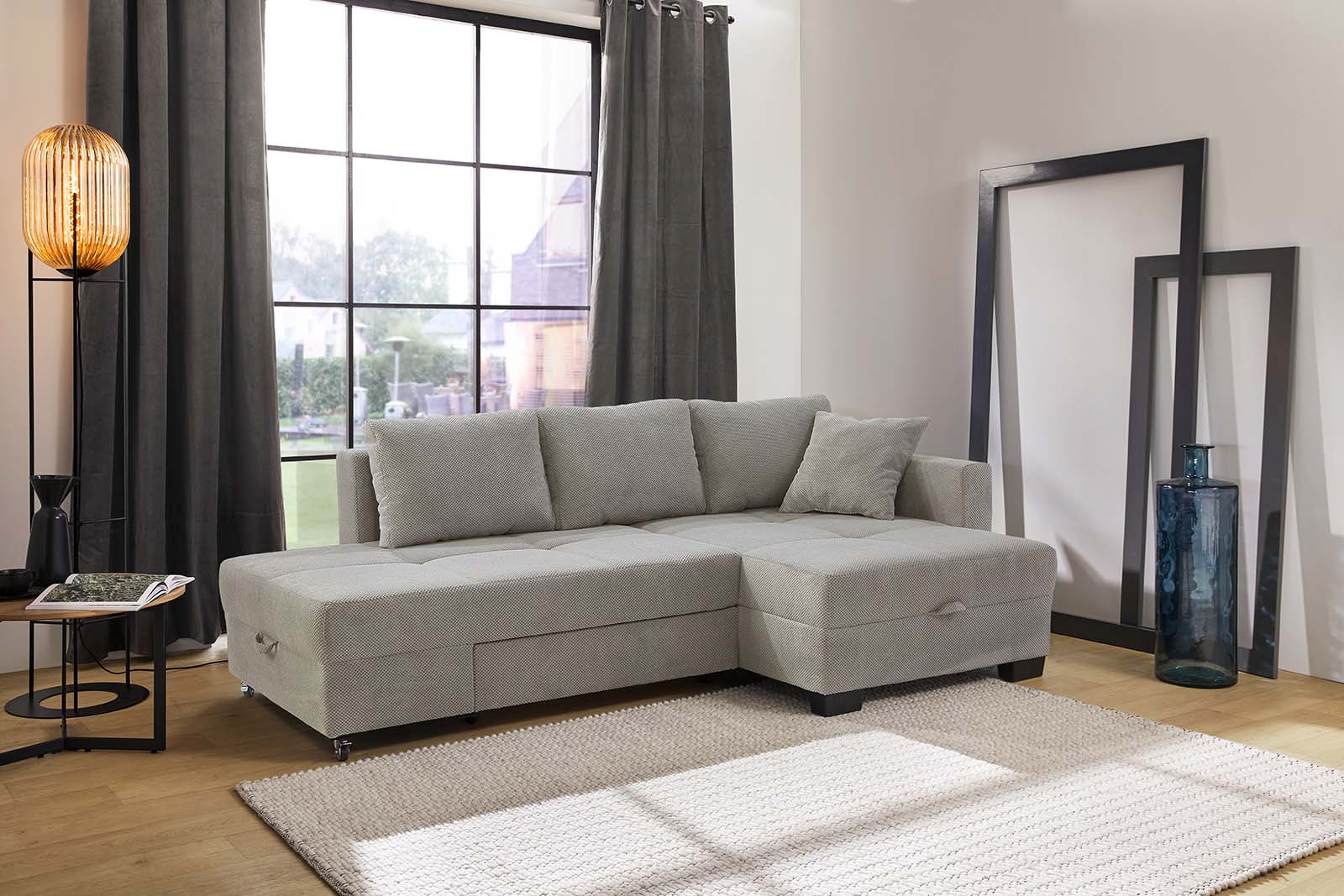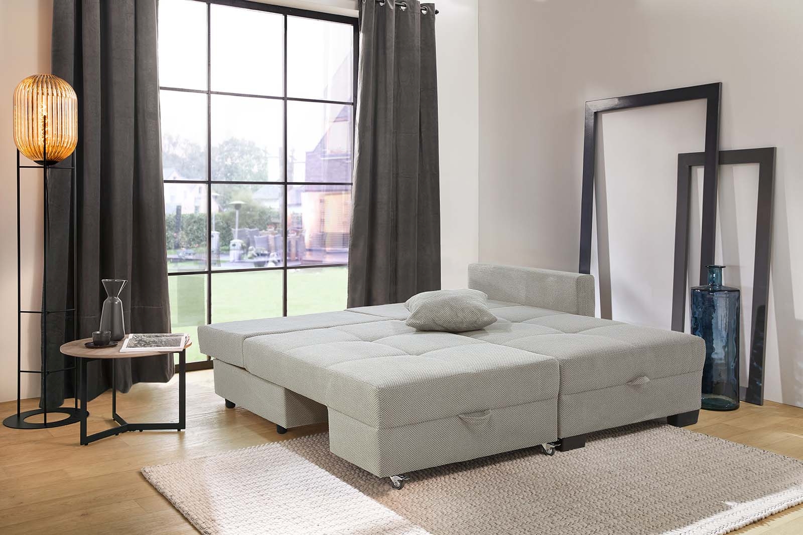 | Ausstattung Polster: | Ottomane rechts links wählbar, Rücken echt, inkl. Bettkasten, inkl. Kissen | ||
