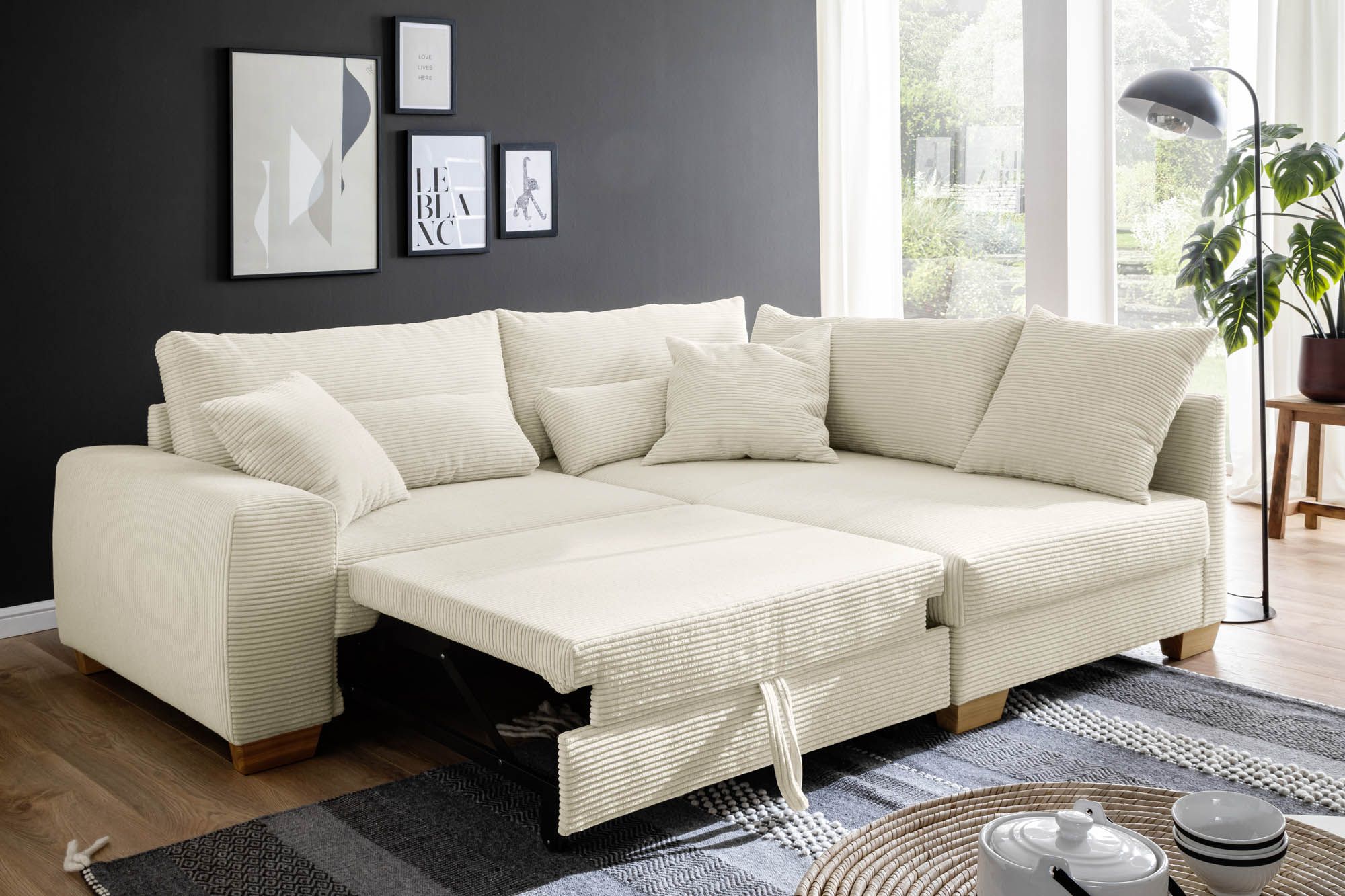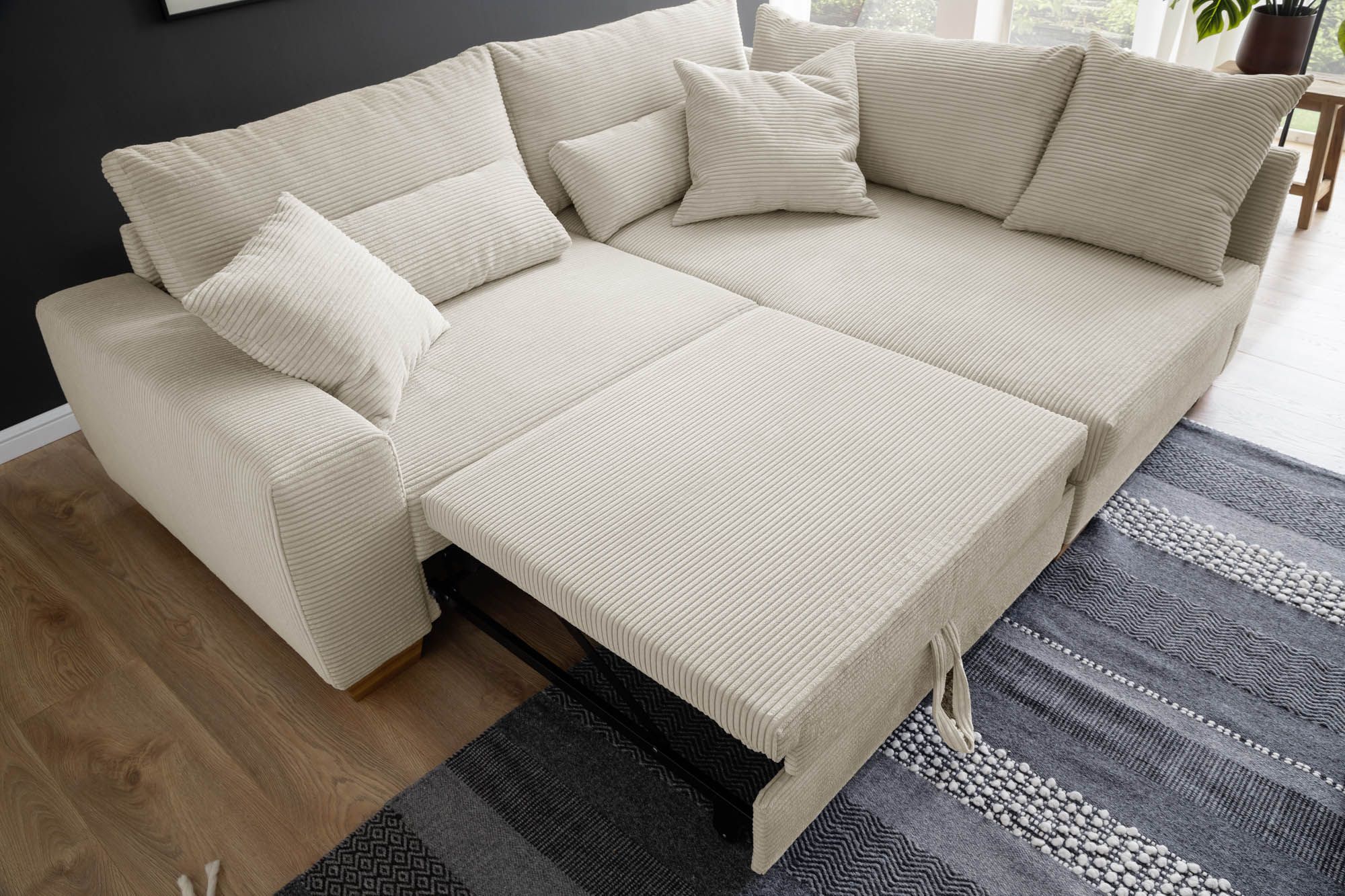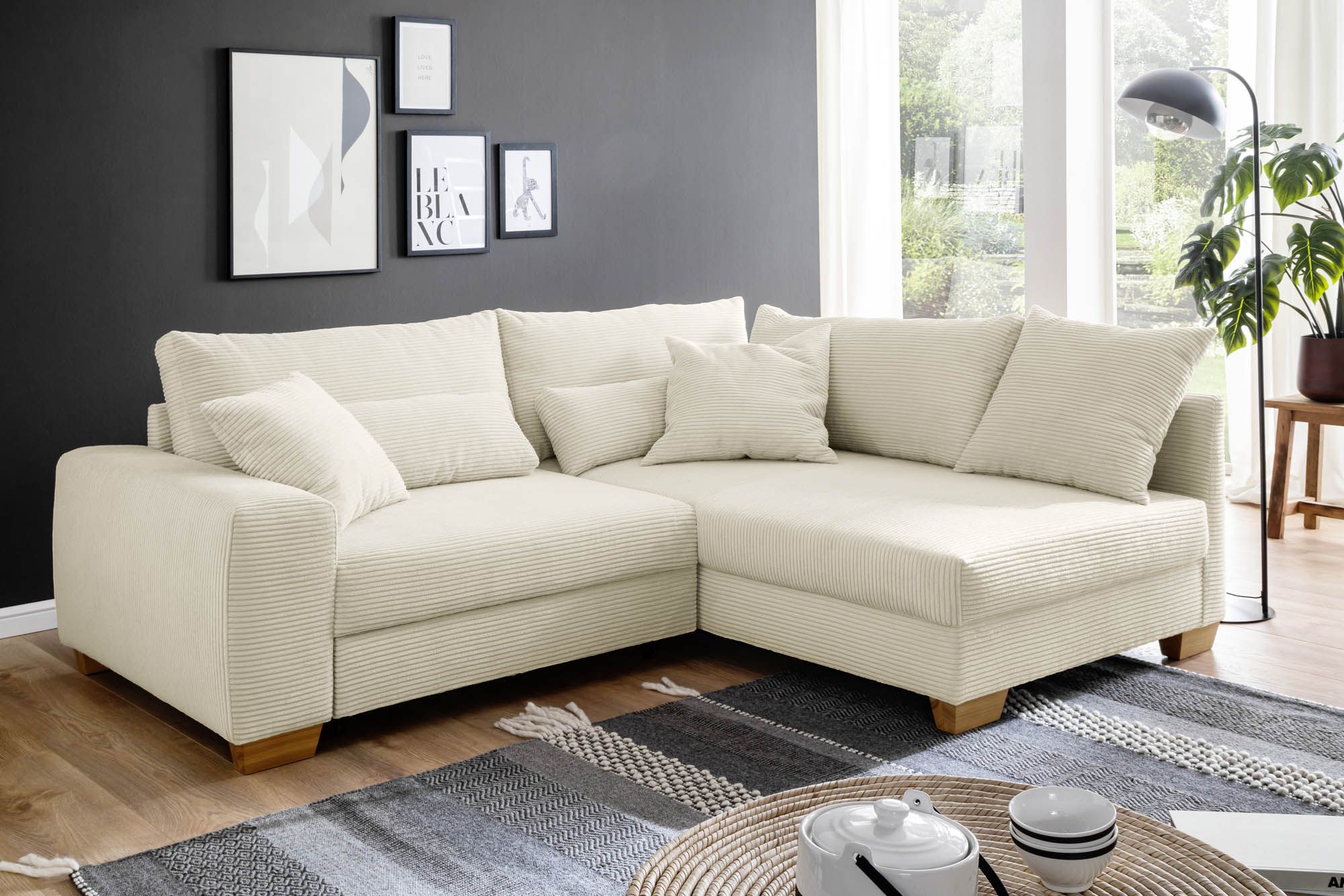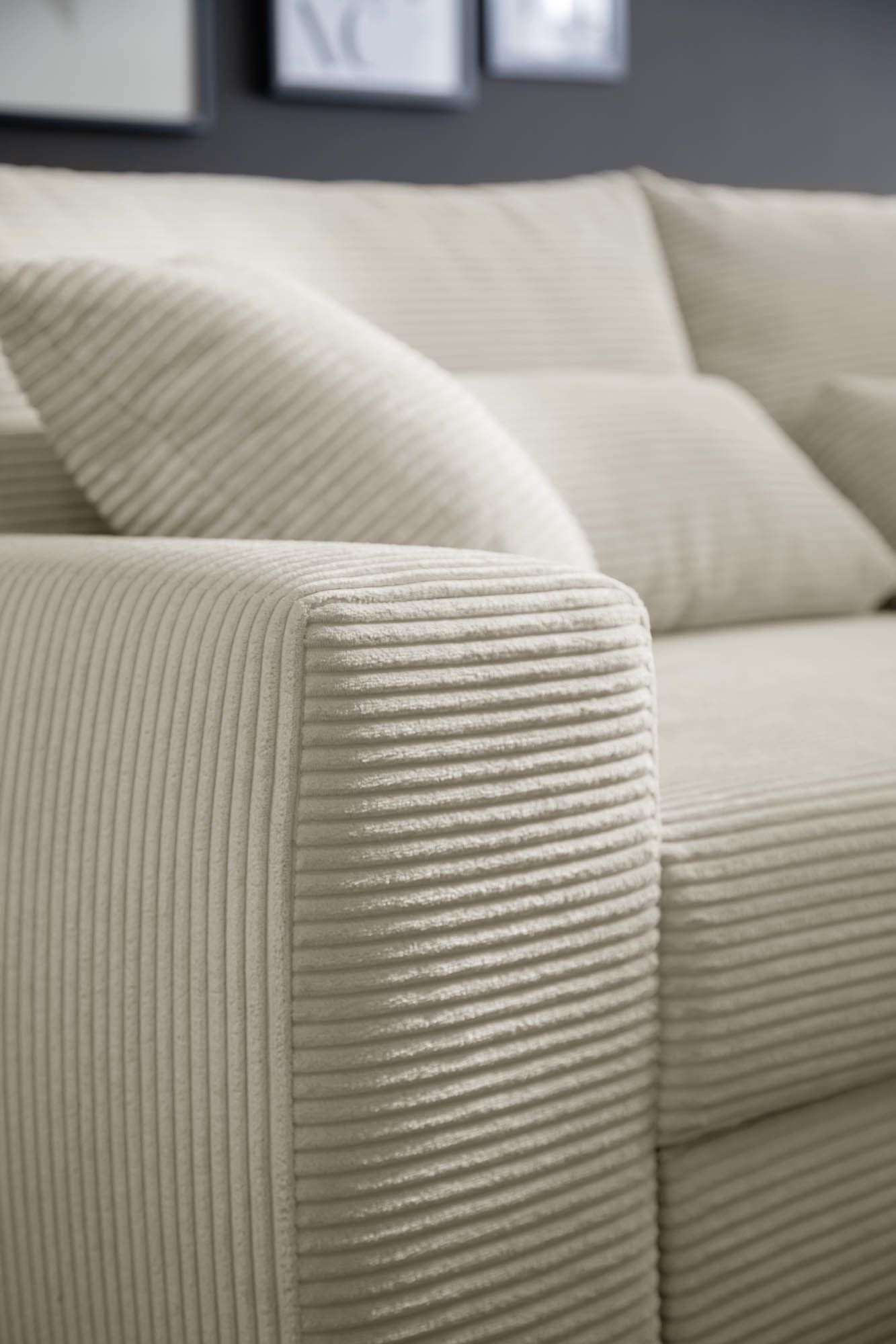 | Ausstattung Polster: | Ottomane rechts, Rücken echt, inkl. Kissen | ||
