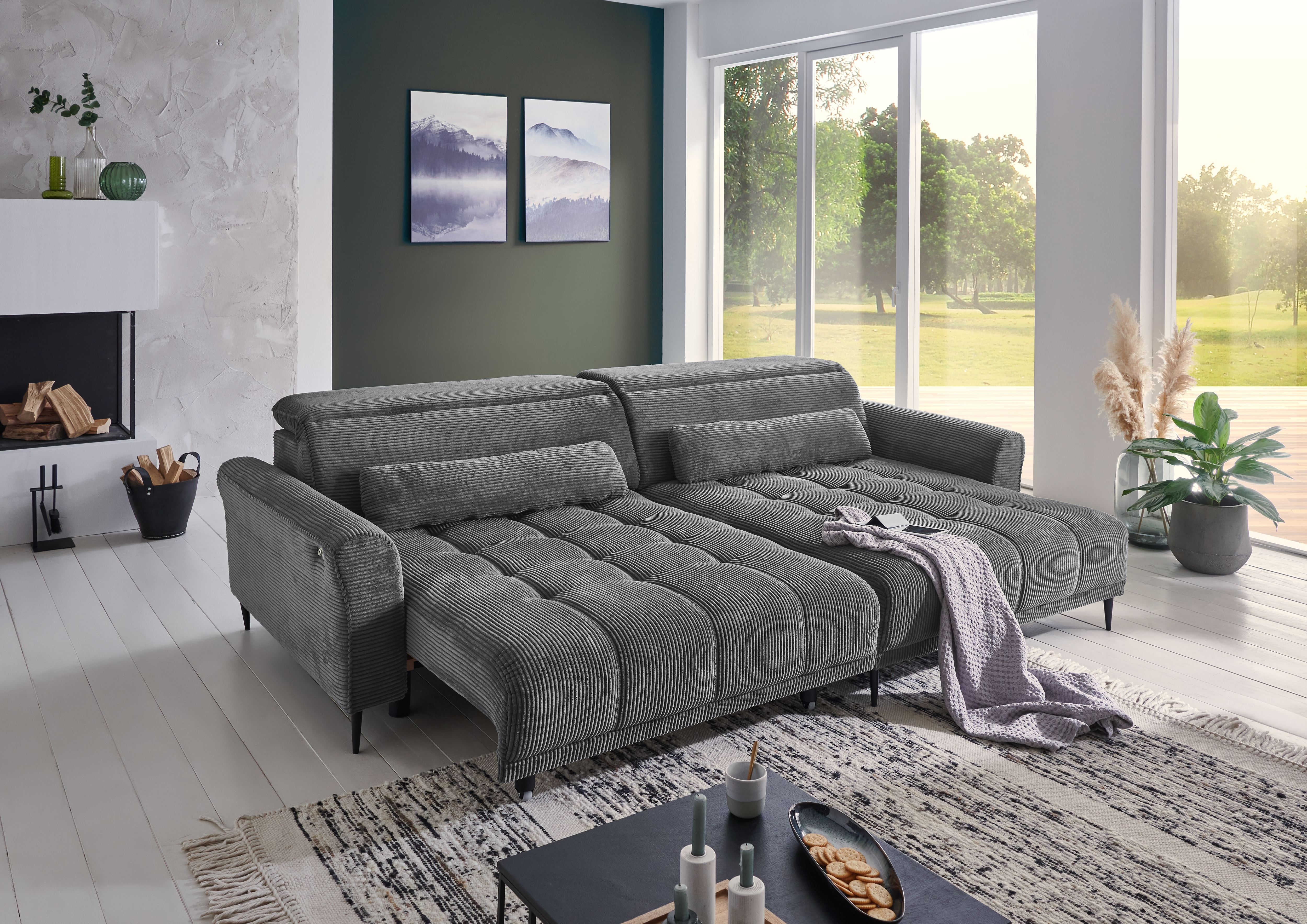 | Ausstattung Polster: | Kopfstützen, Ottomane rechts, Sitzvorzug motorisch, inkl. Kissen | ||