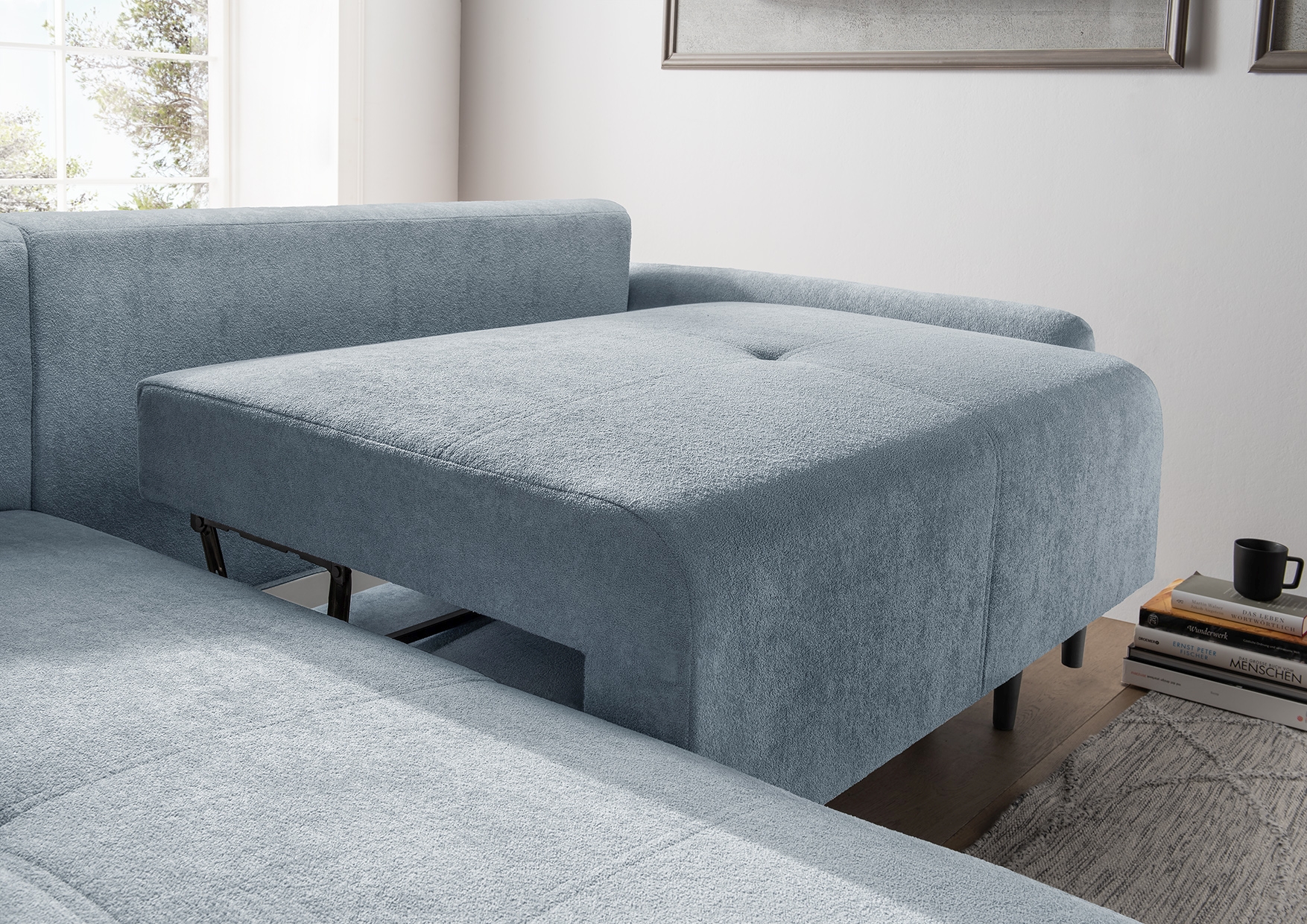 | Ausstattung Polster: | Ottomane rechts links wählbar, Rücken echt, inkl. Bettkasten | ||