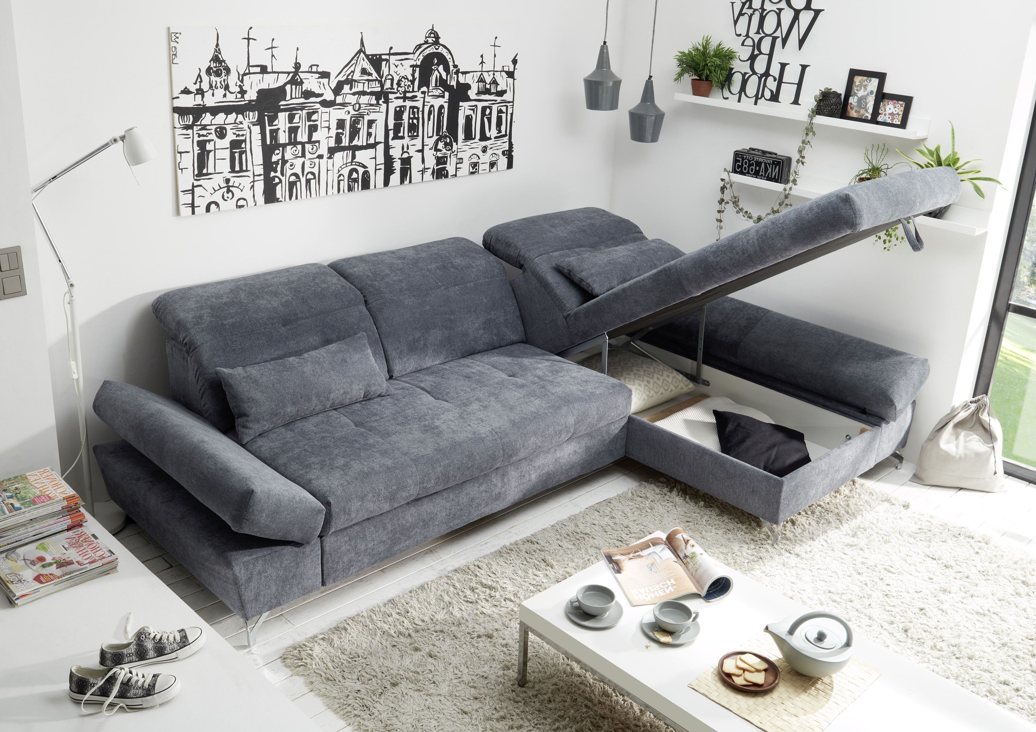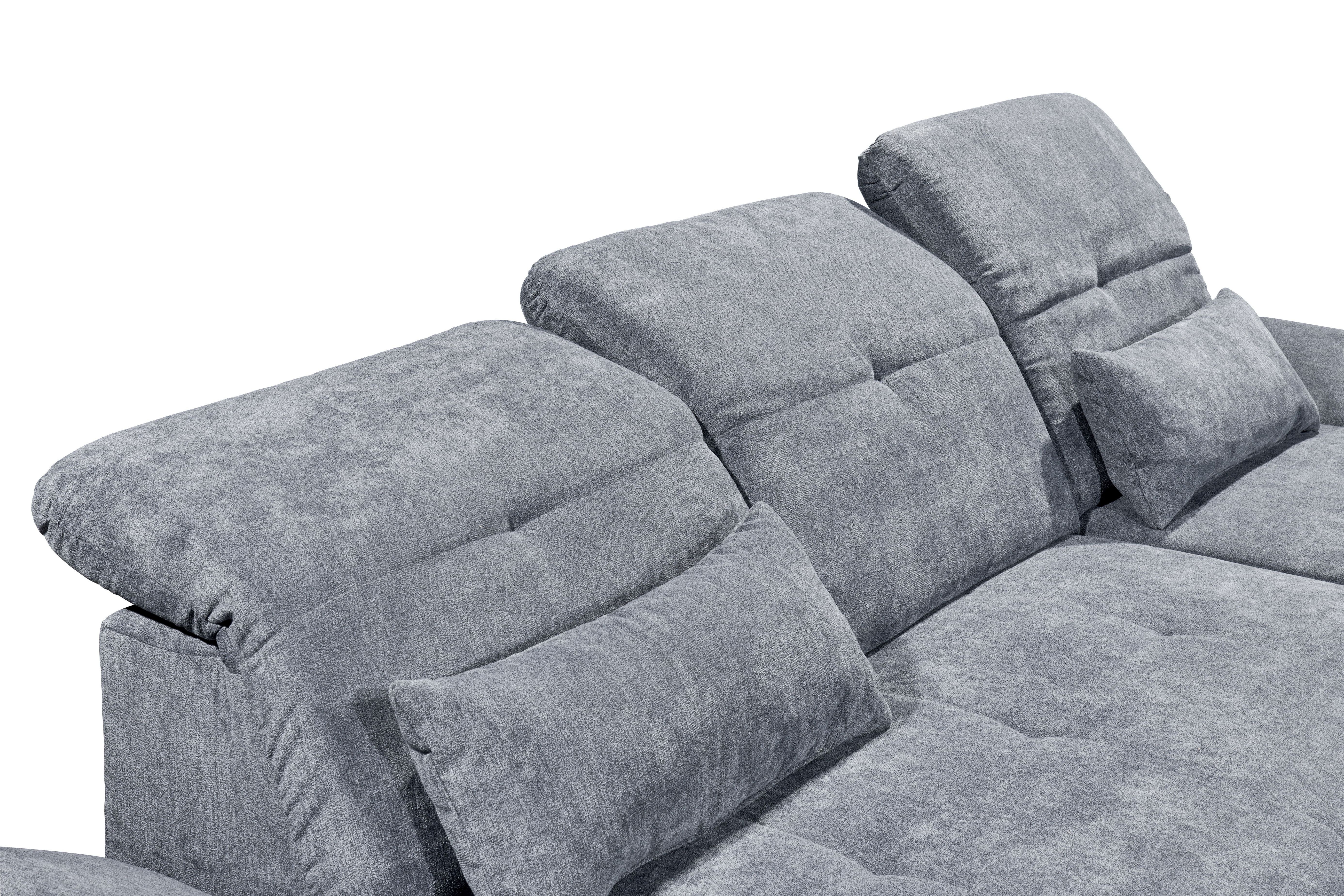 | Ausstattung Polster: | Kopfstützen, Ottomane rechts, Rücken echt, inkl. Bettkasten, inkl. Kissen | ||