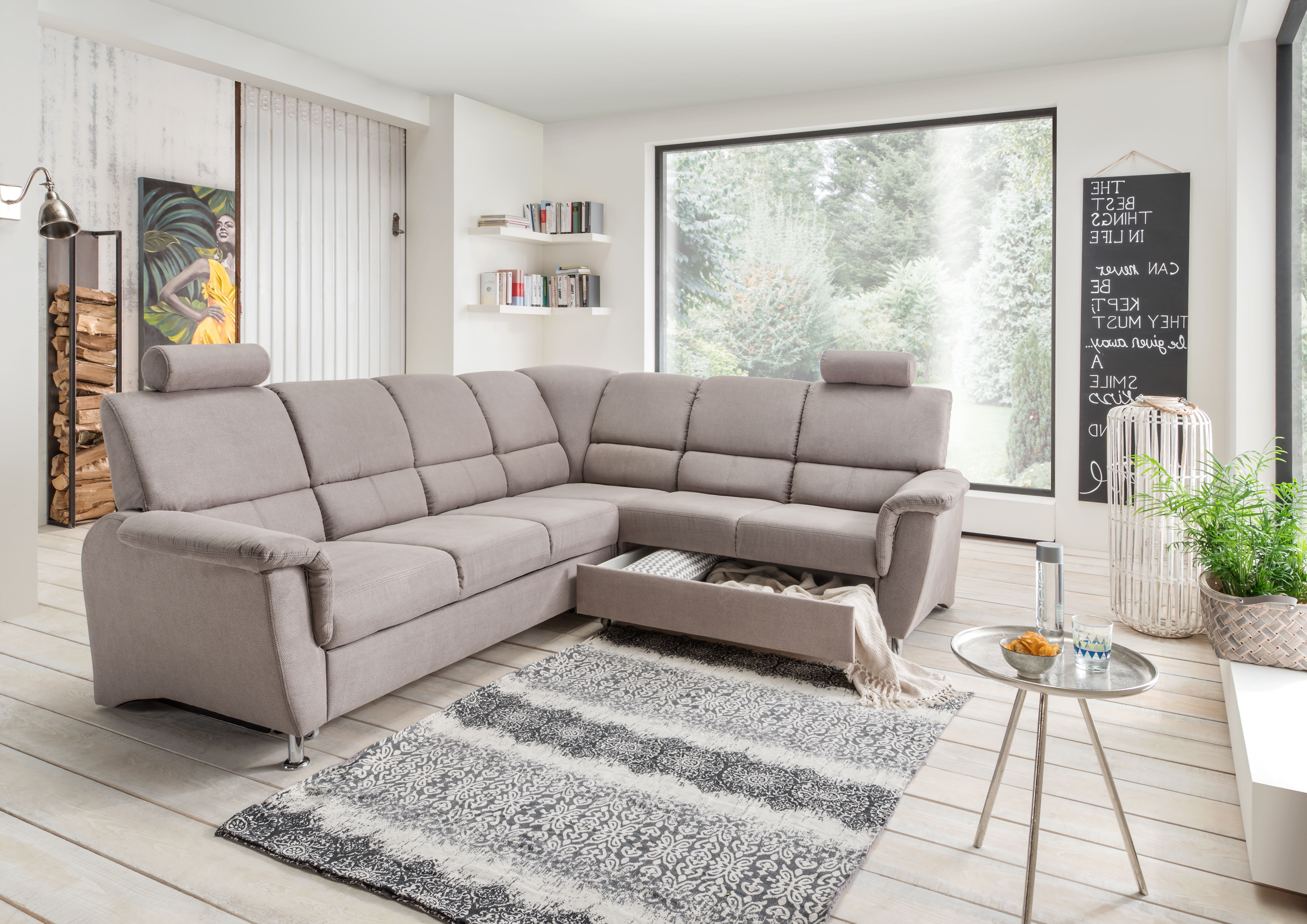 | Ausstattung Polster: | Kopfstützen, Rücken echt, inkl. Bettkasten | ||