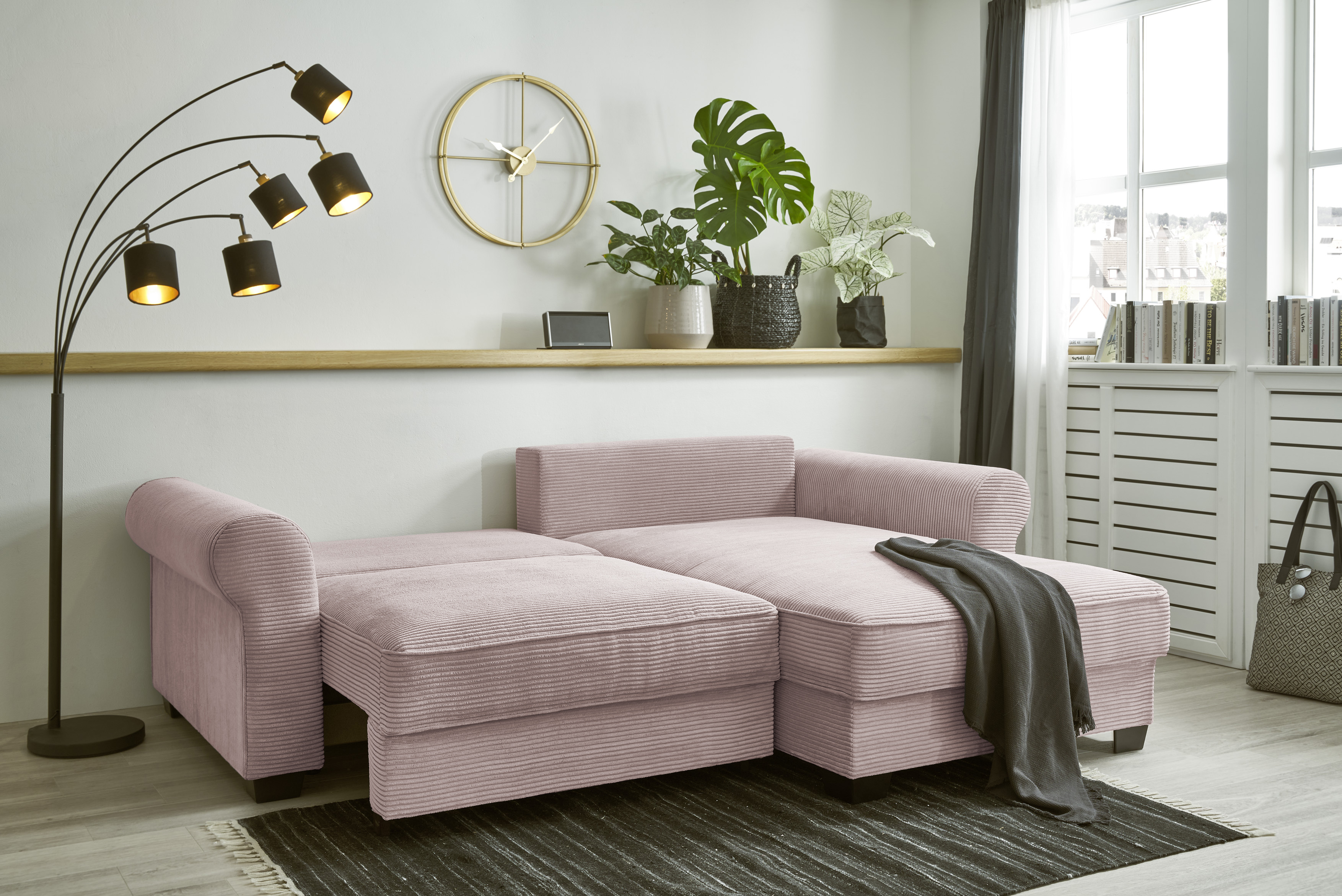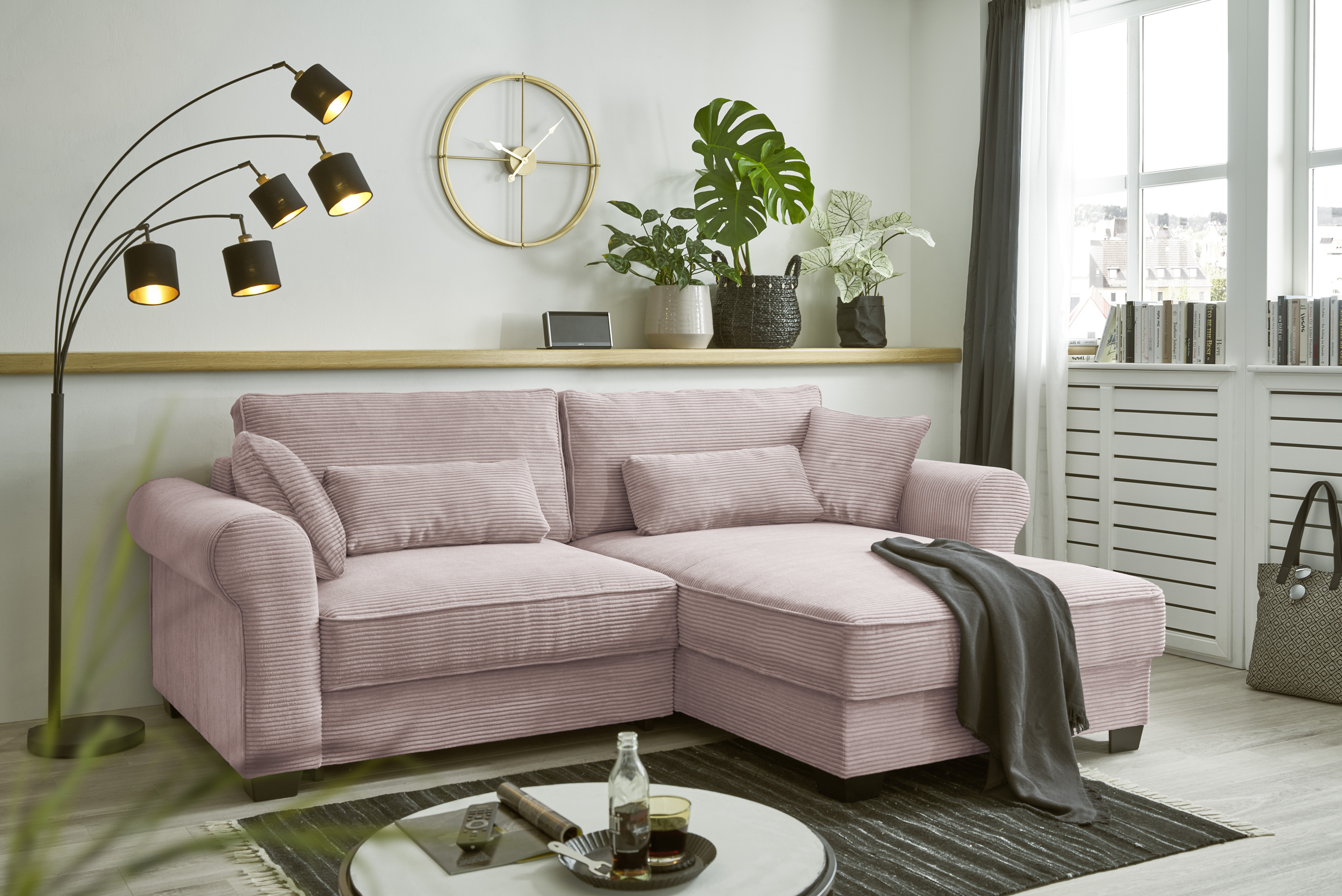 | Ausstattung Polster: | Ottomane rechts links wählbar, Rücken echt, inkl. Bettkasten, inkl. Kissen | ||