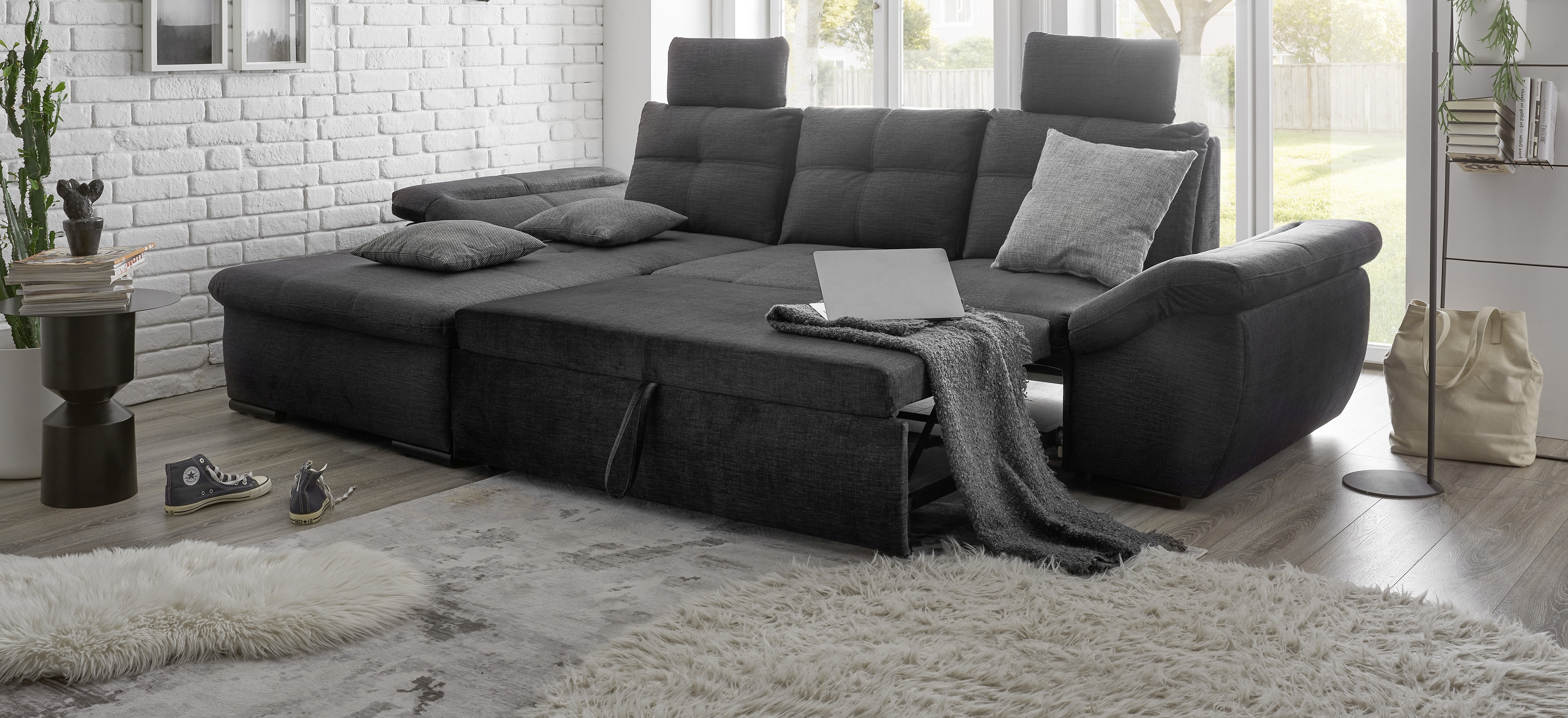| Ausstattung Polster: | Kopfstützen, Rücken echt, inkl. Bettkasten | ||