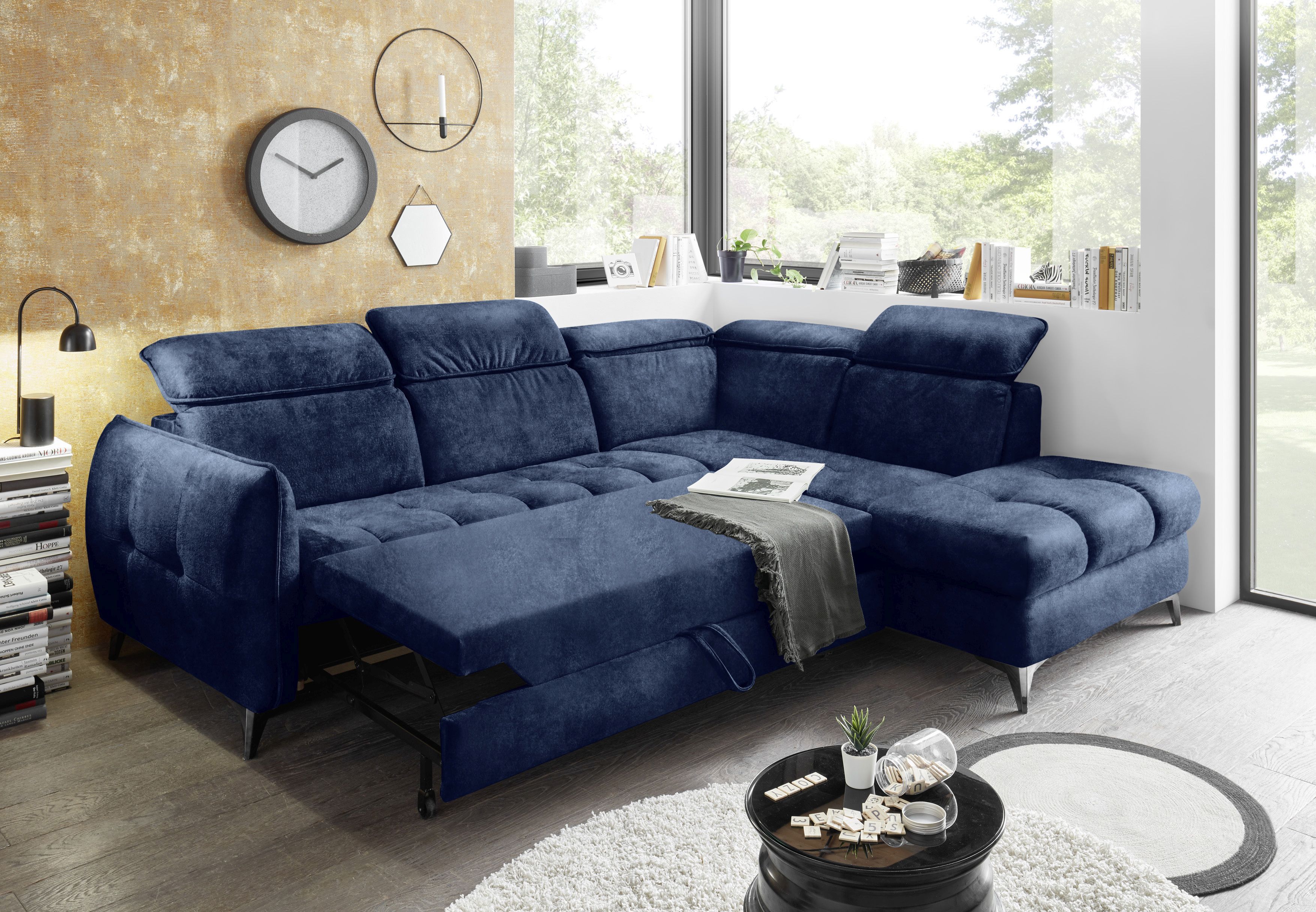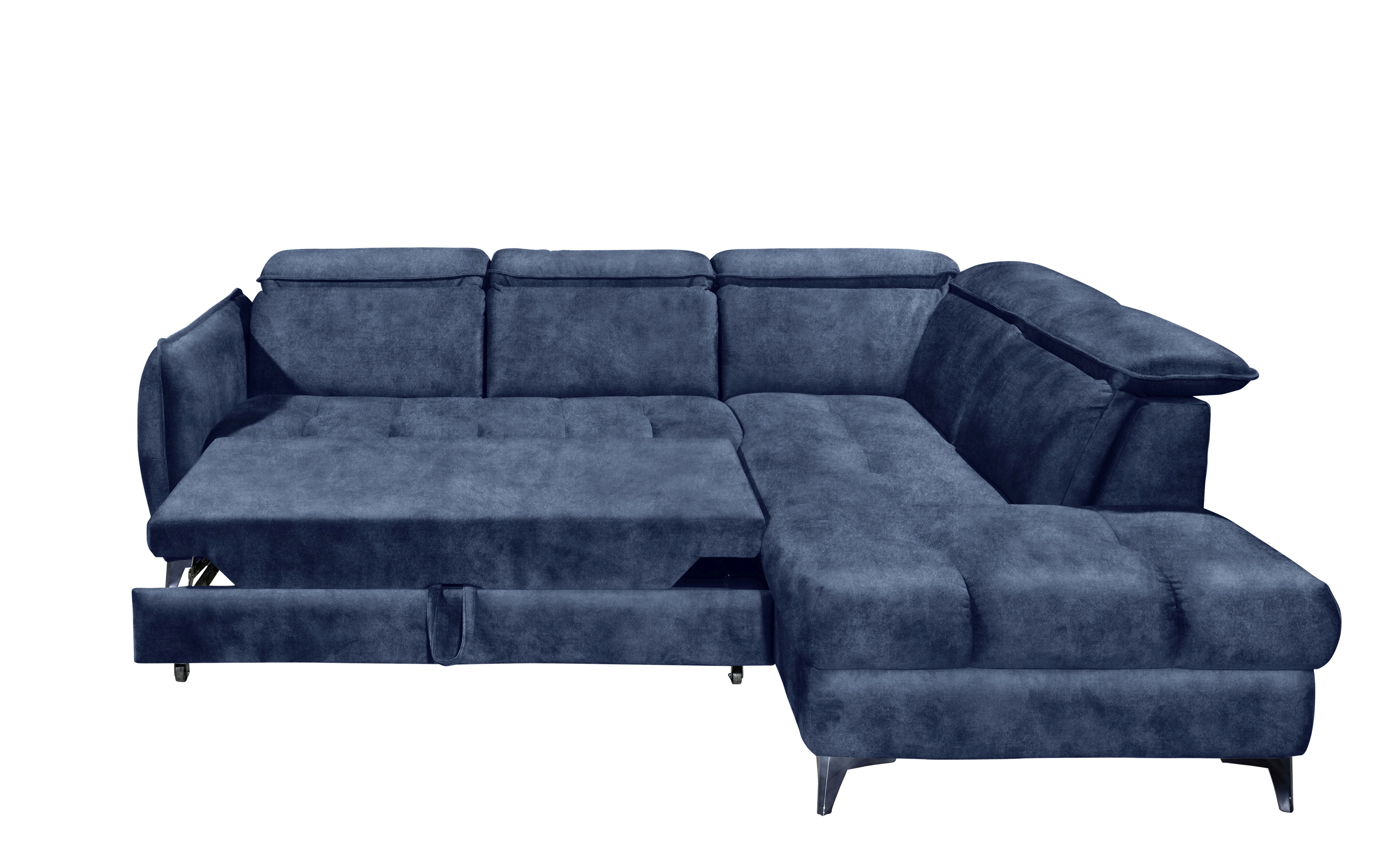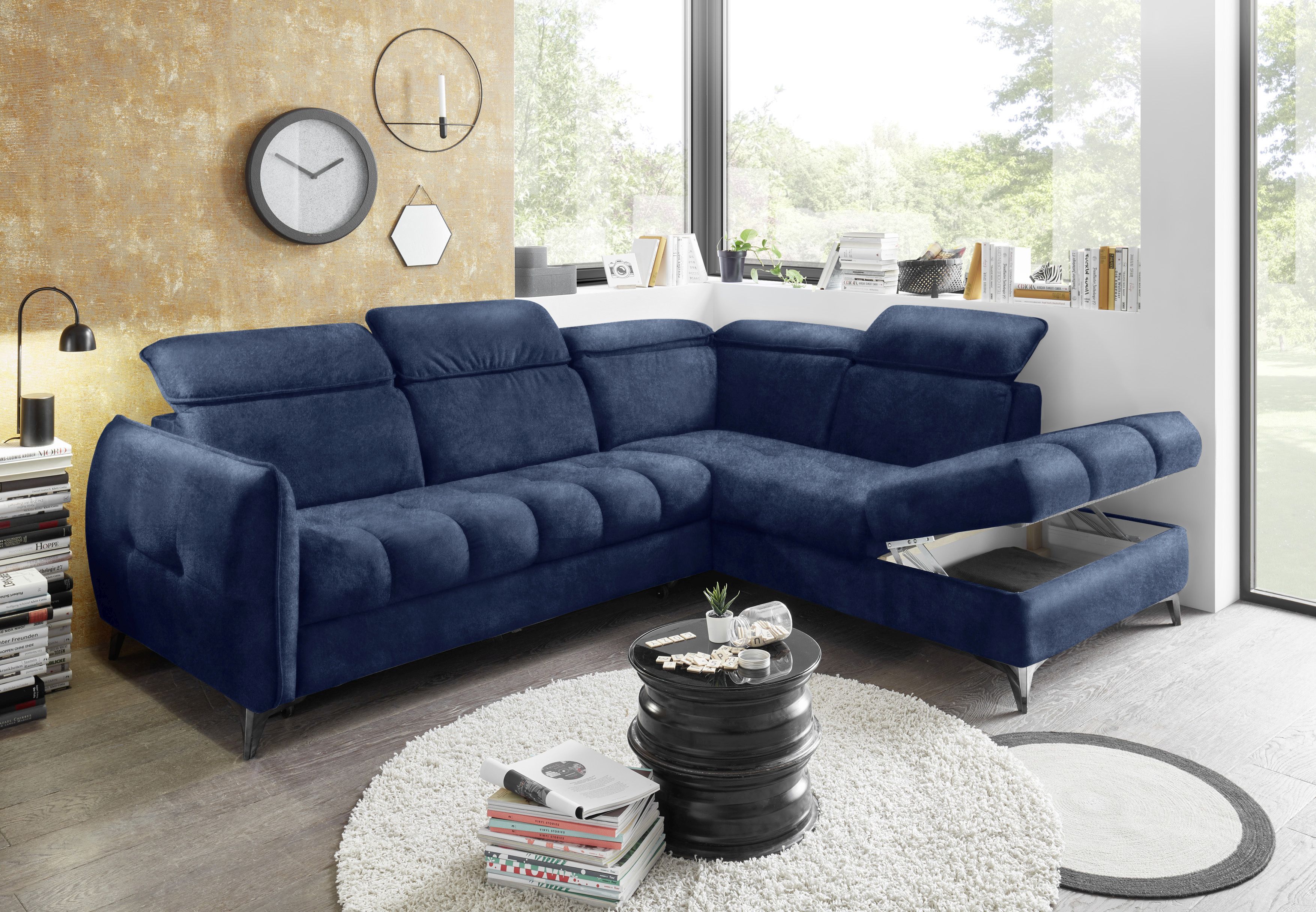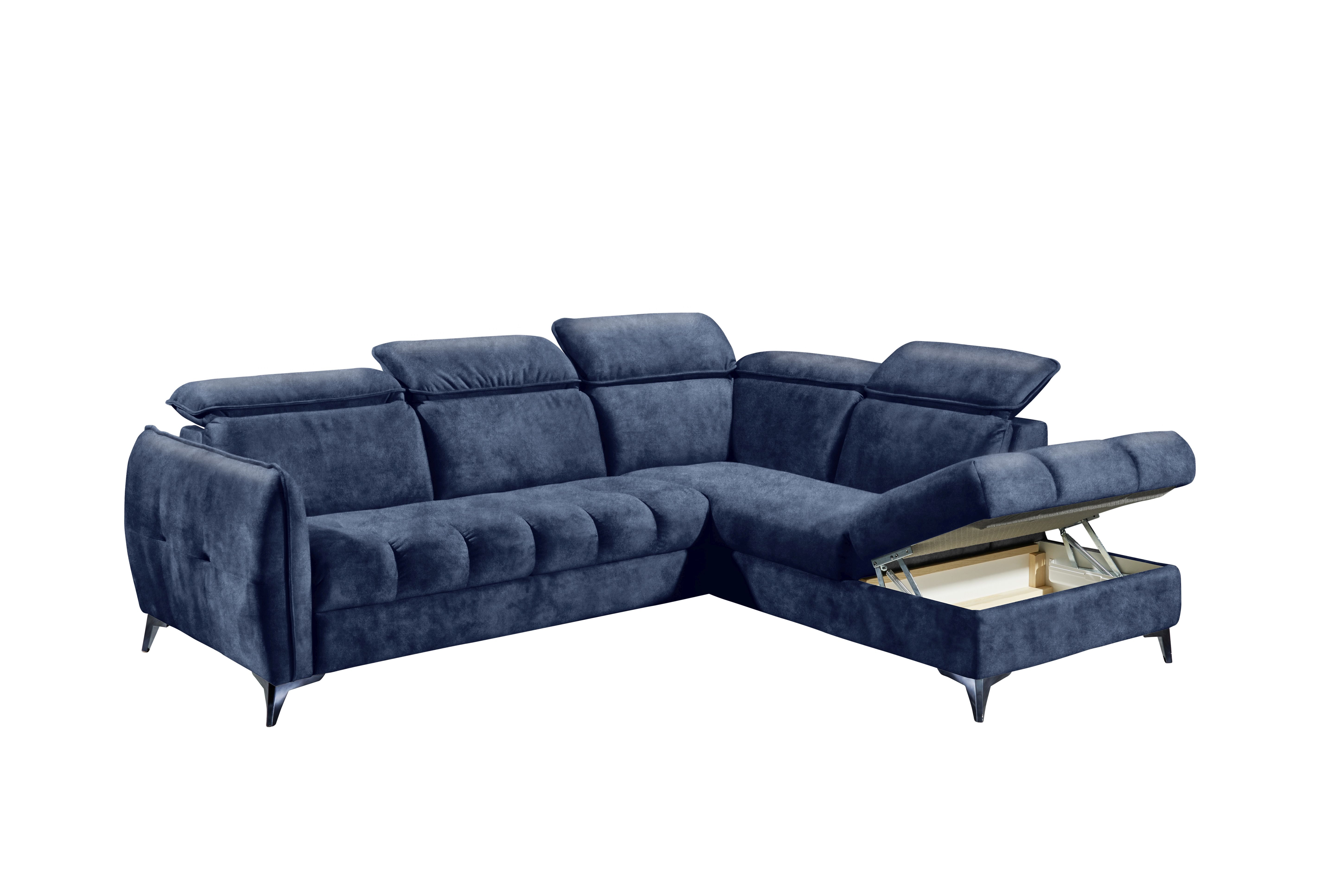 | Ausstattung Polster: | Kopfstützen, Ottomane rechts, Rücken echt, inkl. Bettkasten | ||
