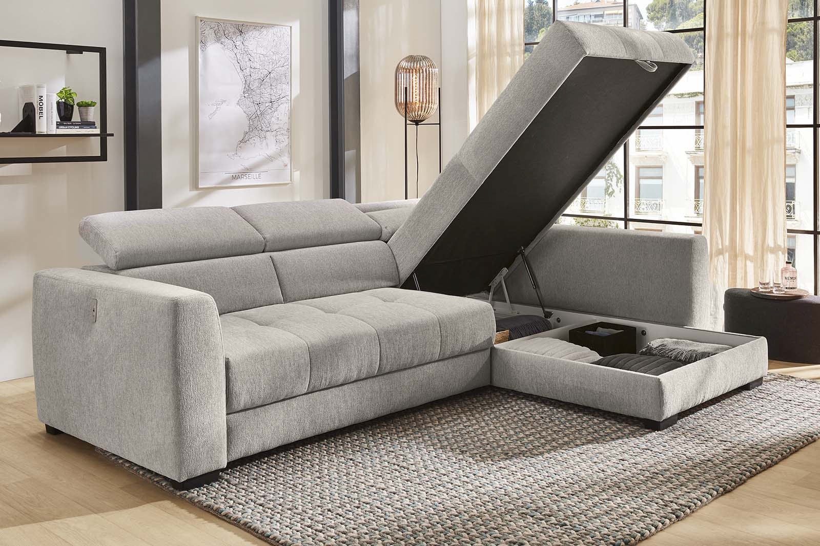 | Ausstattung Polster: | Kopfstützen, Ottomane rechts links wählbar, Rücken echt, Sitzvorzug motorisch, USB Anschluss, inkl. Bettkasten, inkl. Kissen | ||