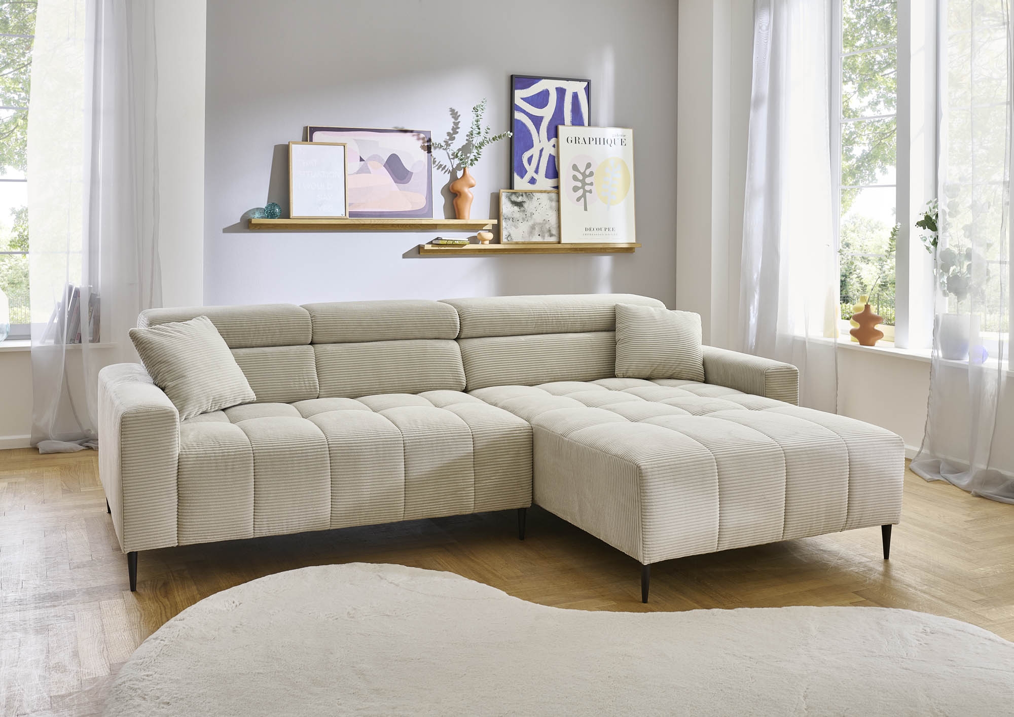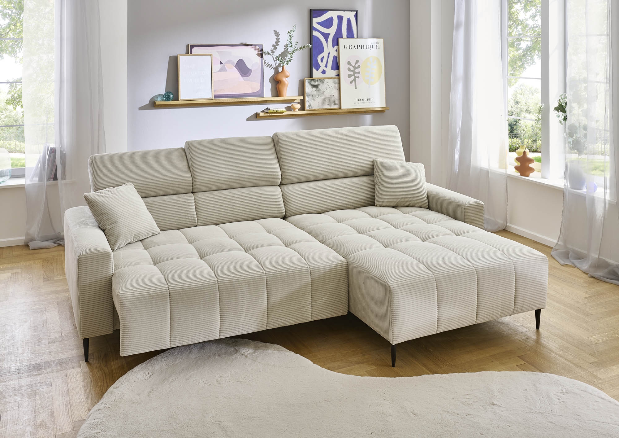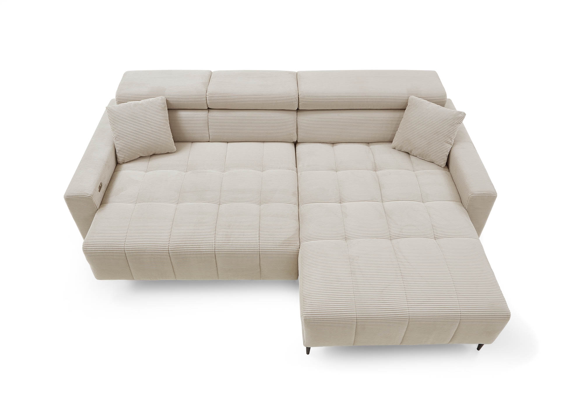 | Ausstattung Polster: | Ottomane rechts, Sitzvorzug motorisch, inkl. Kissen | ||