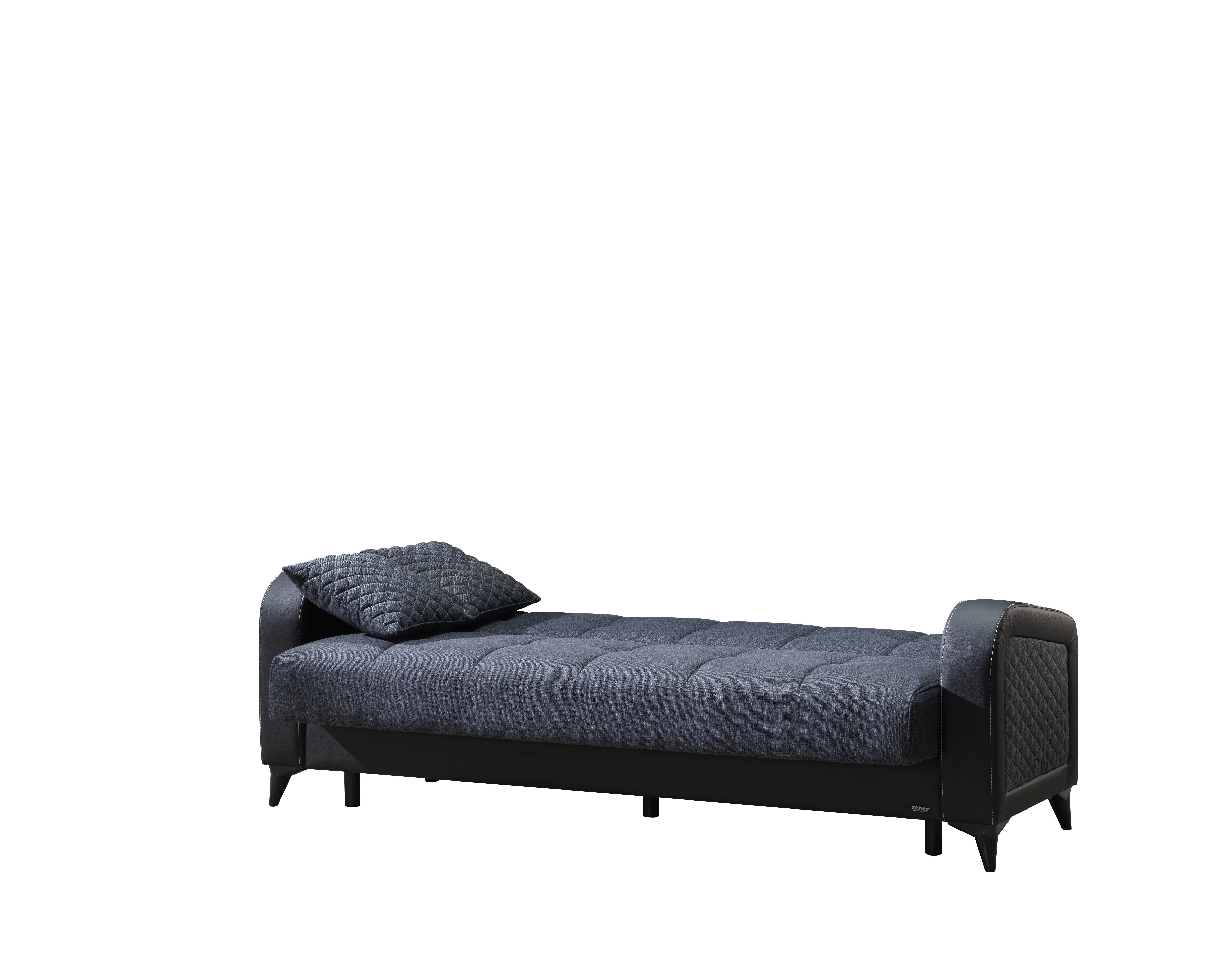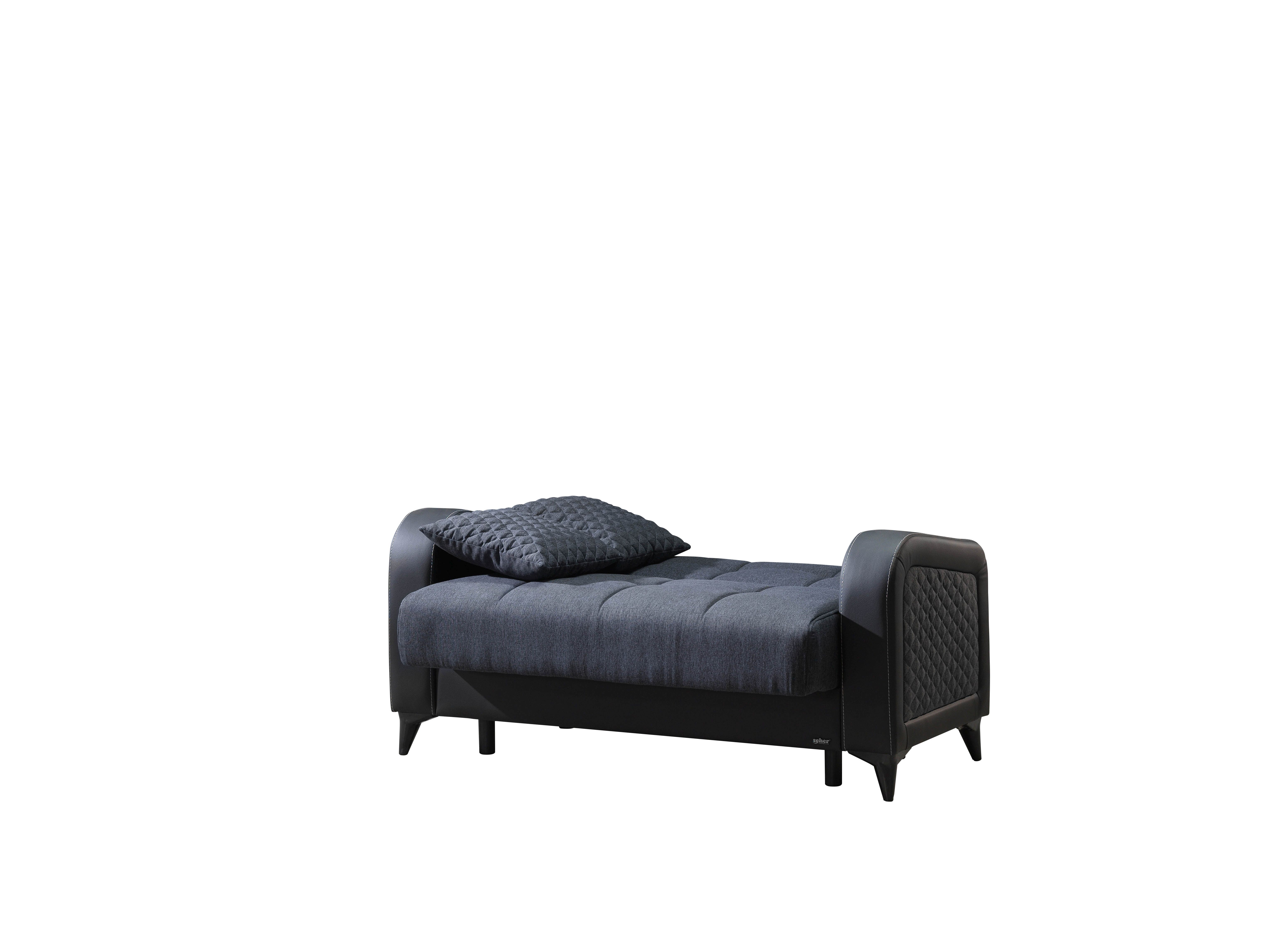 Bezug: Kunstleder Dolara in schwarz aus 70% Polyurethan kombiniert mit Papermoon 76 in der Farbe dunkelgrau aus 80% Polypropylen und 20% Polyester