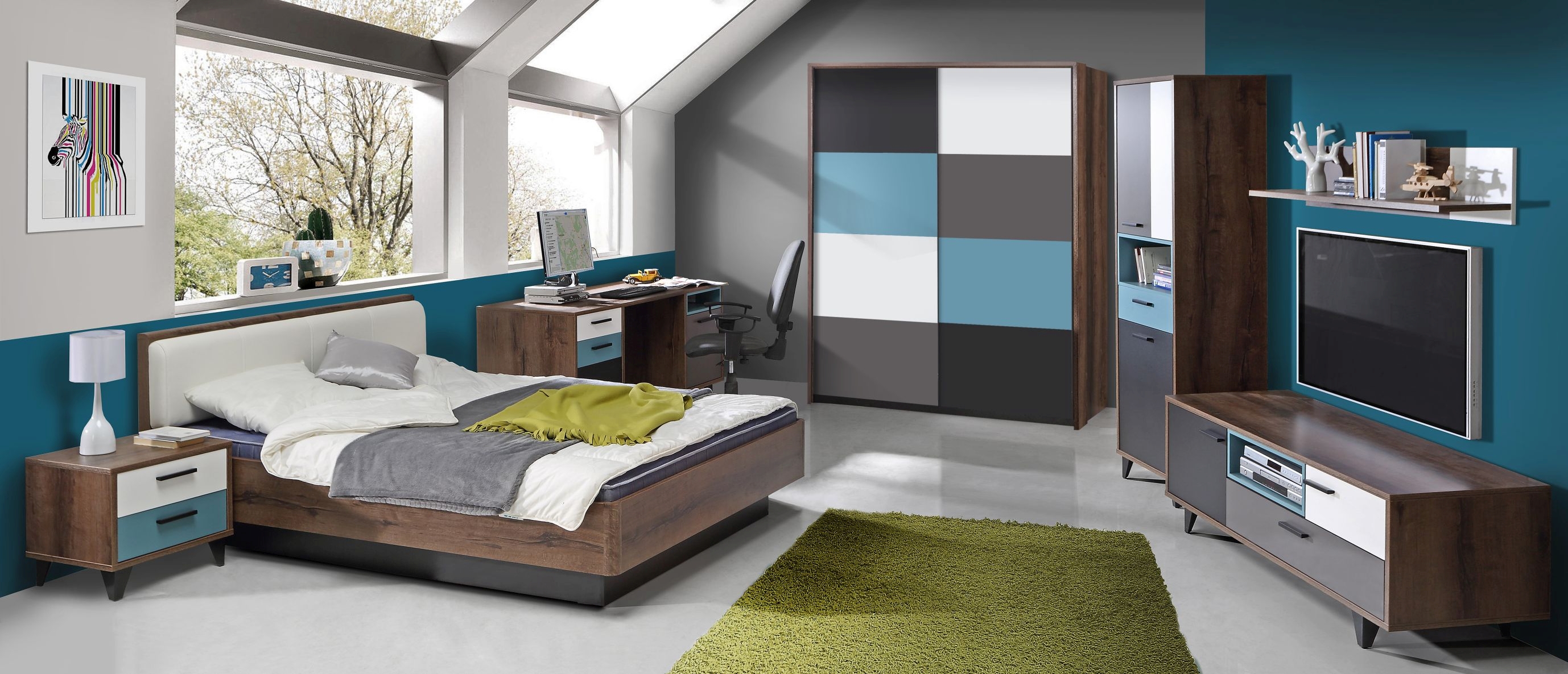 Front: Grau Nachbildung kombiniert mit Weiß, Schwarz und Oriental Grün