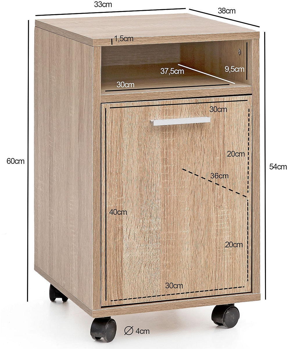 - BÜROHILFE ✔ Stifte, Locher, Tacker und Co. sind im Büro allgegenwärtig. Damit diese unerlässlichen Hilfsmittel aber nicht störend auf dem Schreibtisch herumliegen, besitzt dieser schicke Rollschrank zwei Türfächer und ein großzügiges Ablagefach. Damit ist genügend Platz, um diese Bürogegenstände unterzubringen. DIN A4 Blöcke passen übrigens in Türfächer und Staufach hinein. Somit ist alles sauber verstaut!