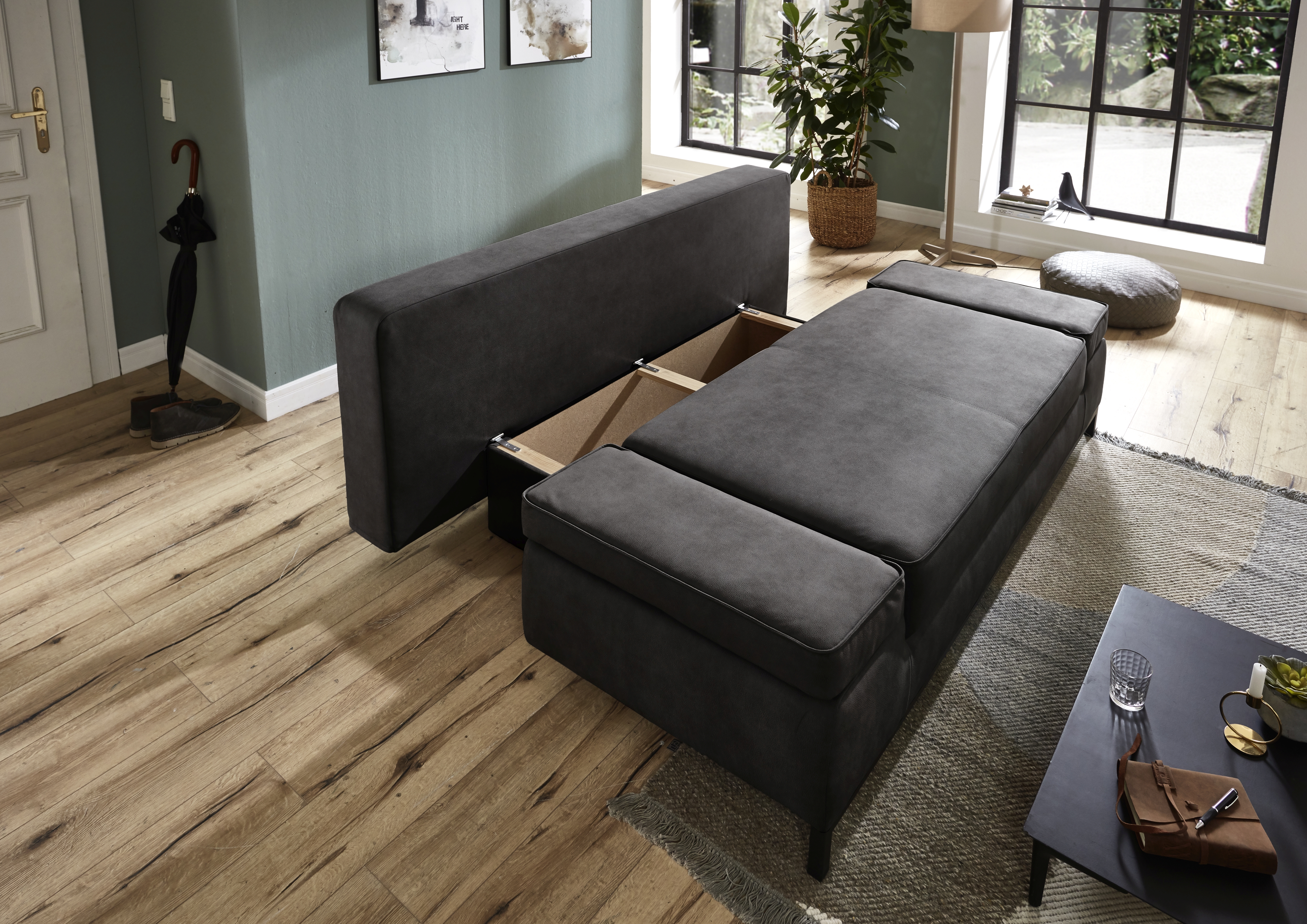 | Ausstattung Polster: | Rücken echt, Stauraum, inkl. Kissen | ||