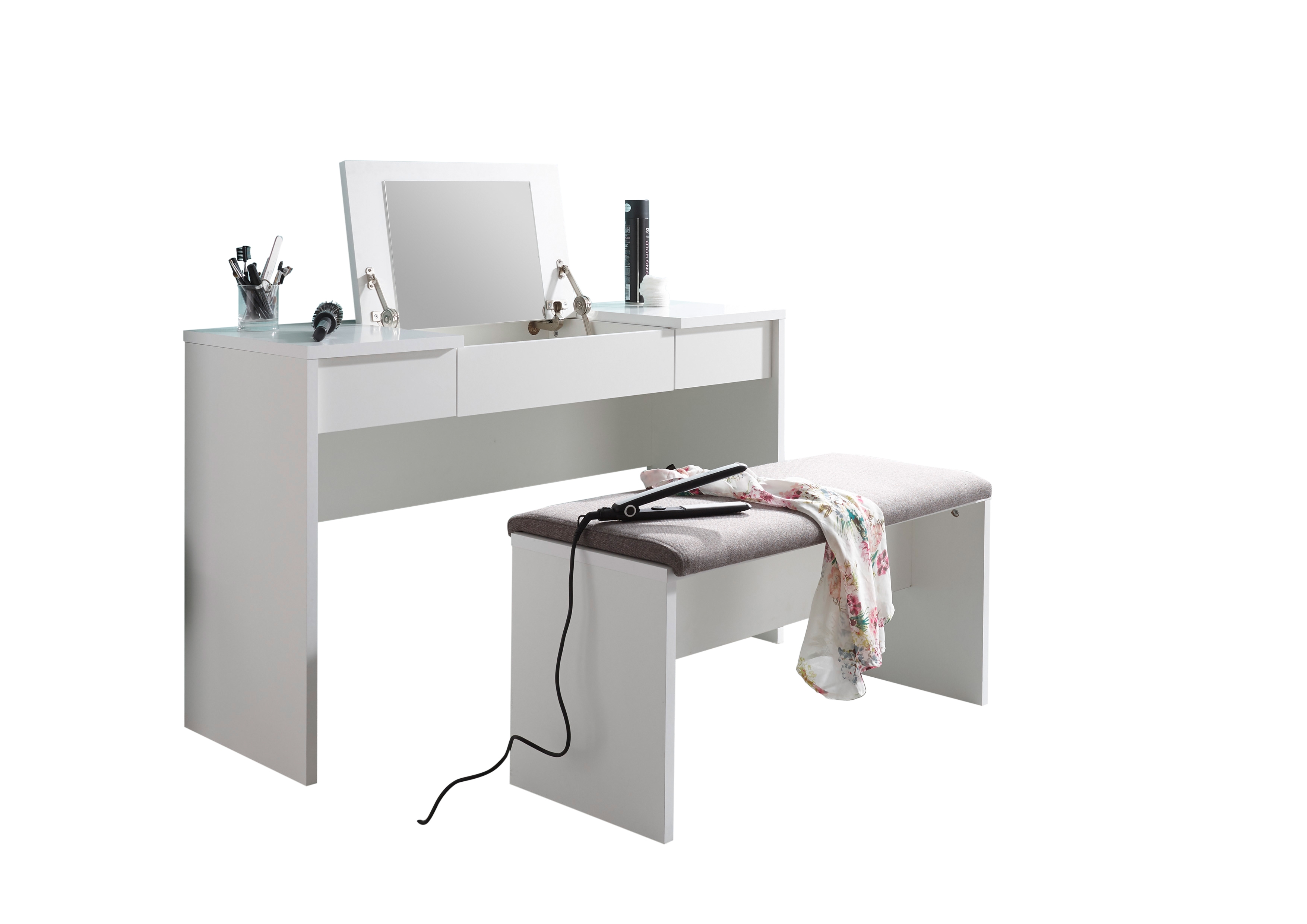 1 Schminktisch mit 2 Schubkästen und 1 aufklappbarem Spiegel
