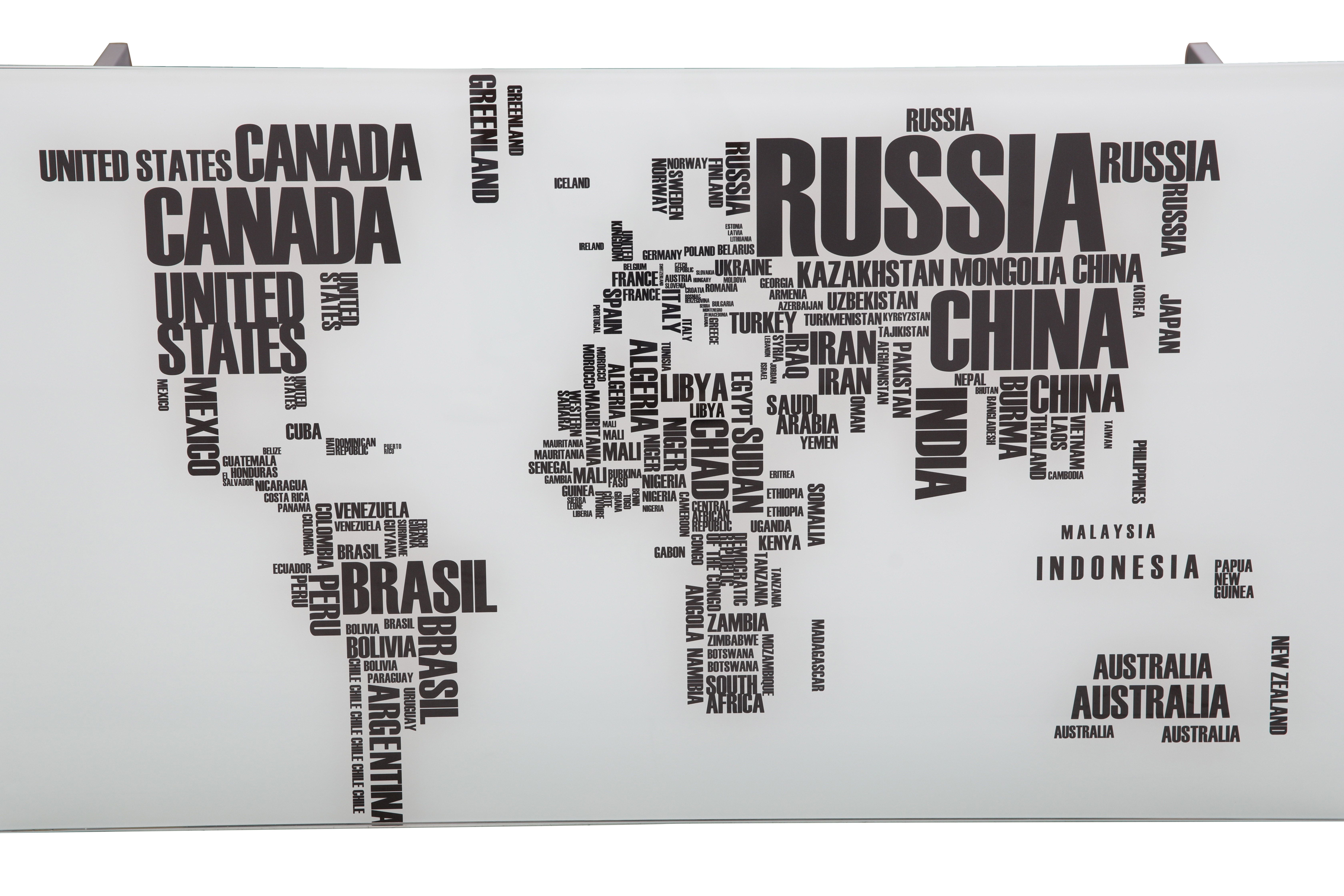 Tischplatte: Sicherheitsglas in weiß mit Motiv Weltkarte
