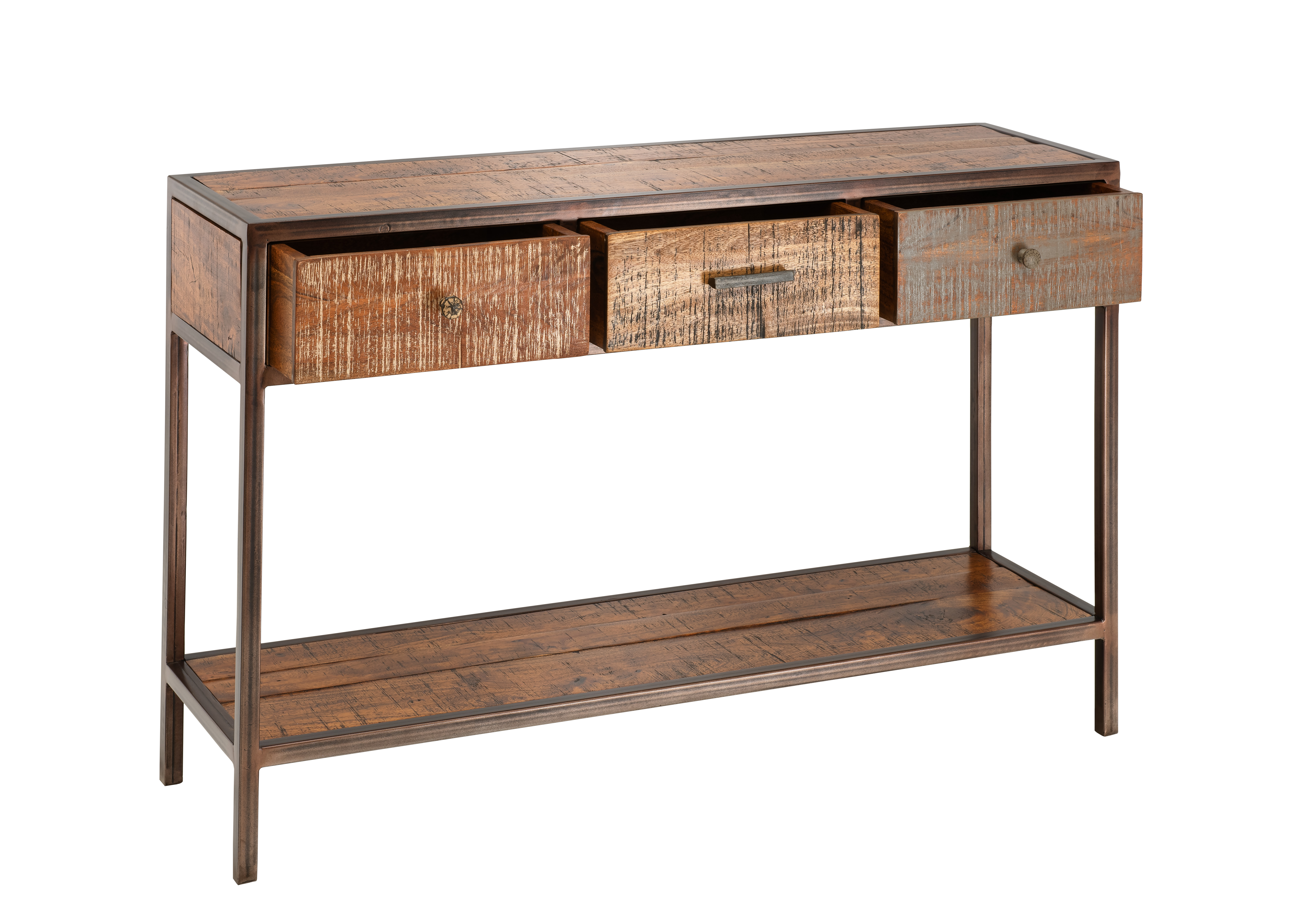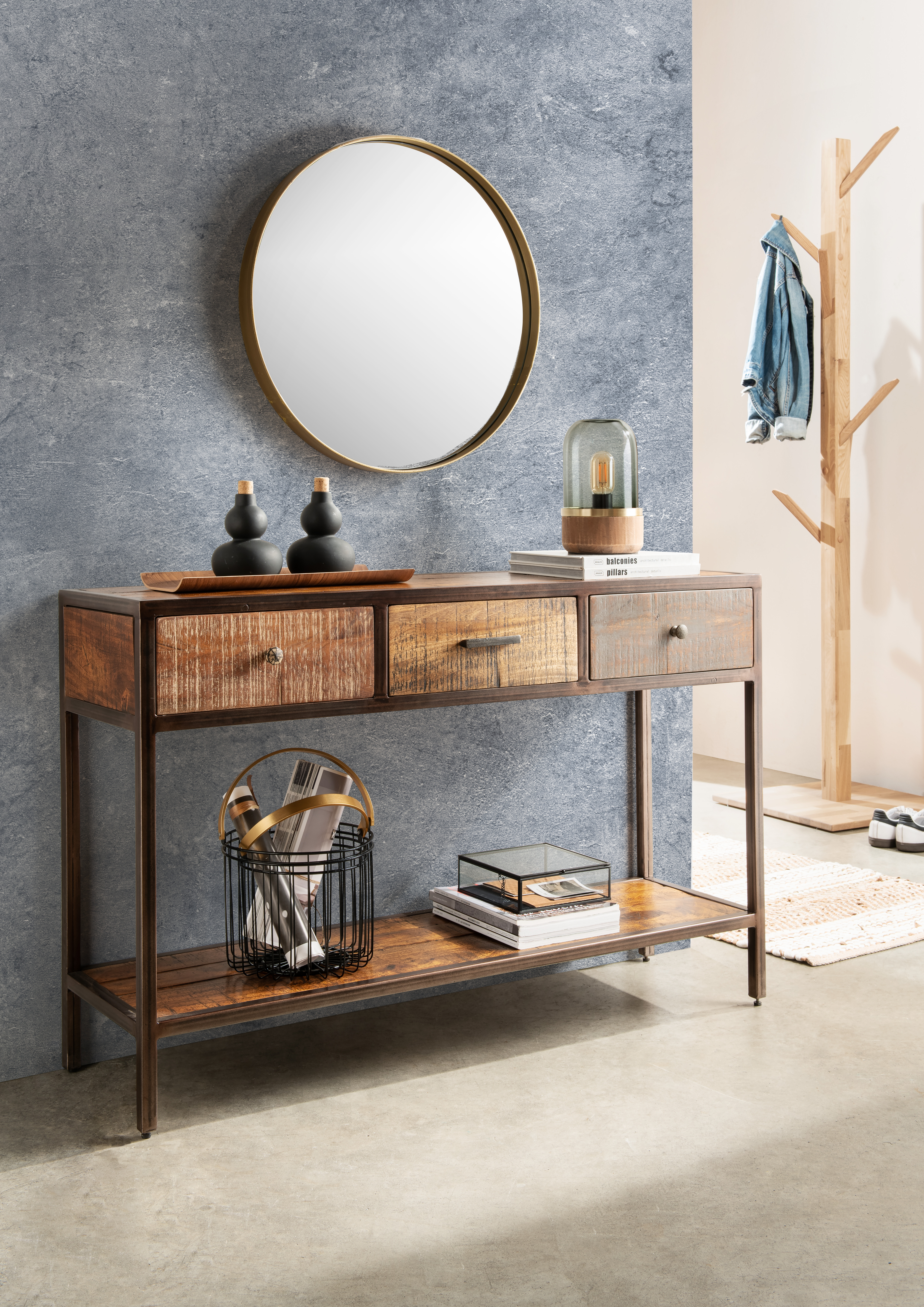 Massives recyceltes Altholz (Indien) mit Metallrahmen (vintage behandelt)