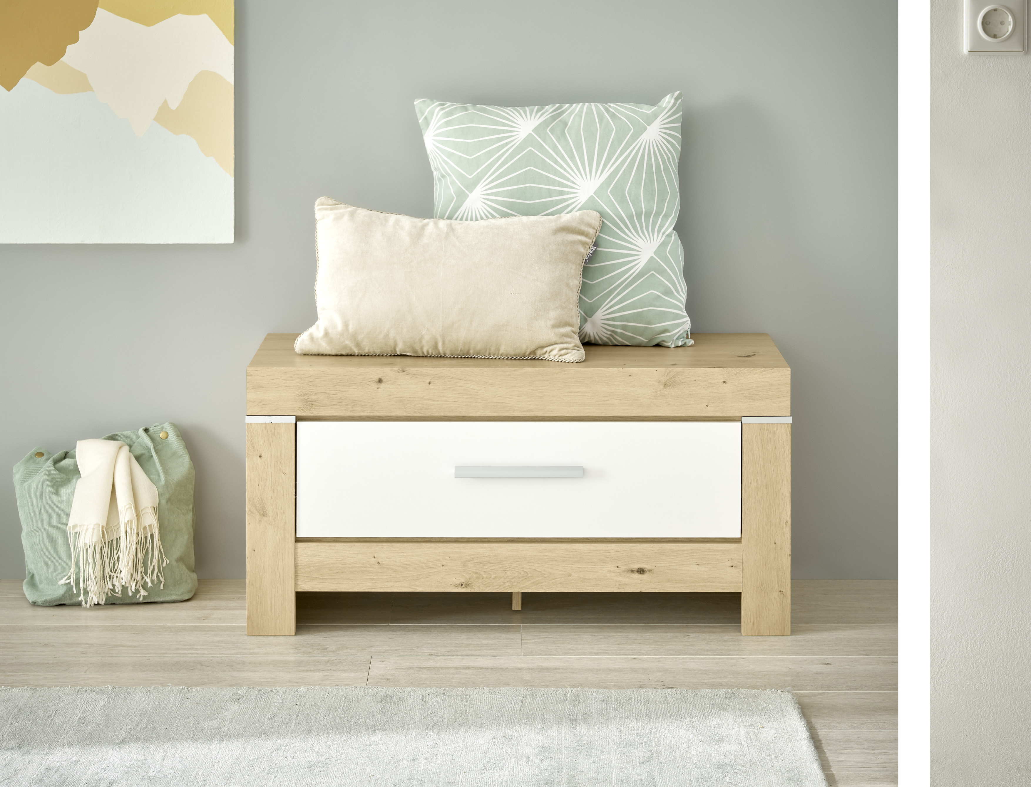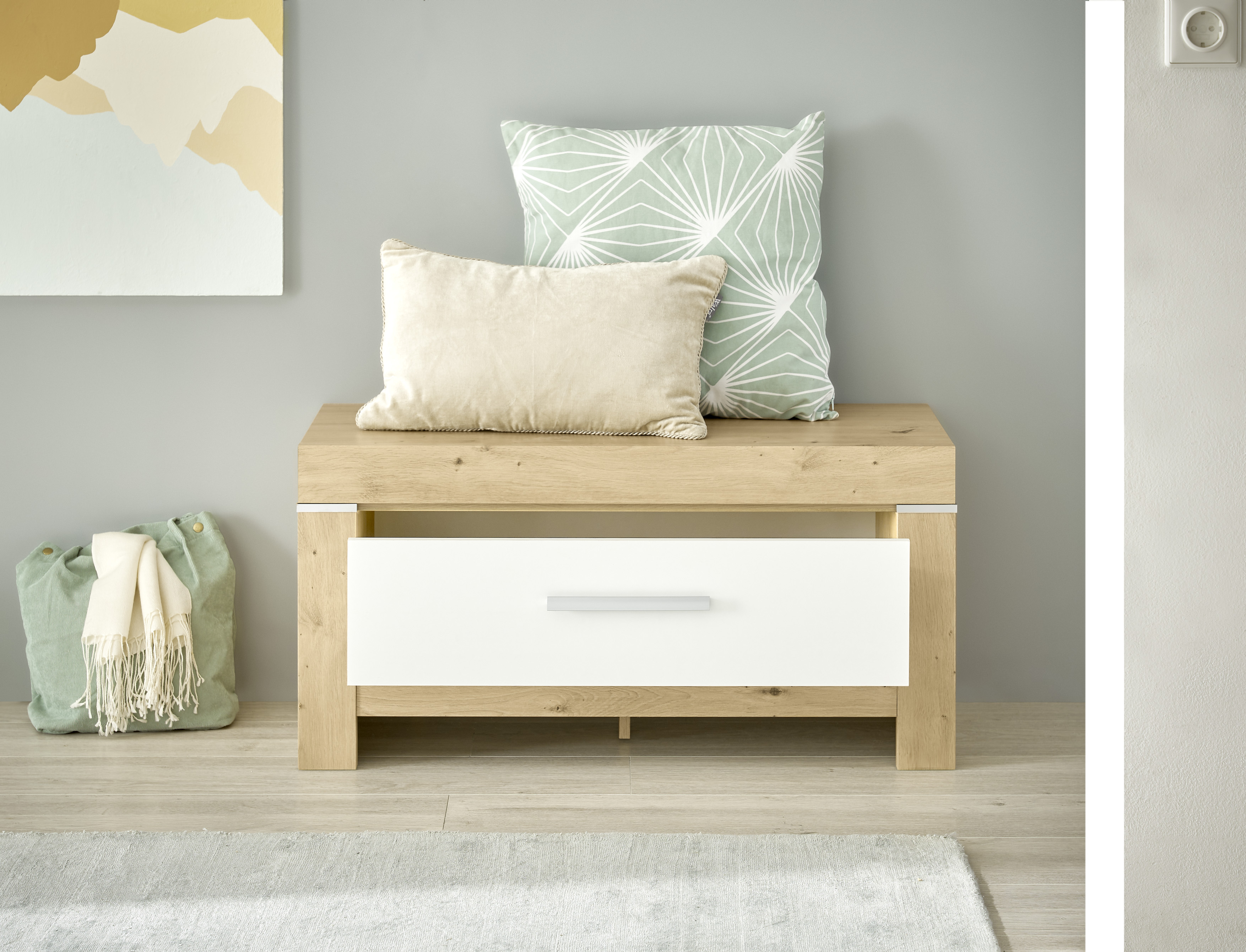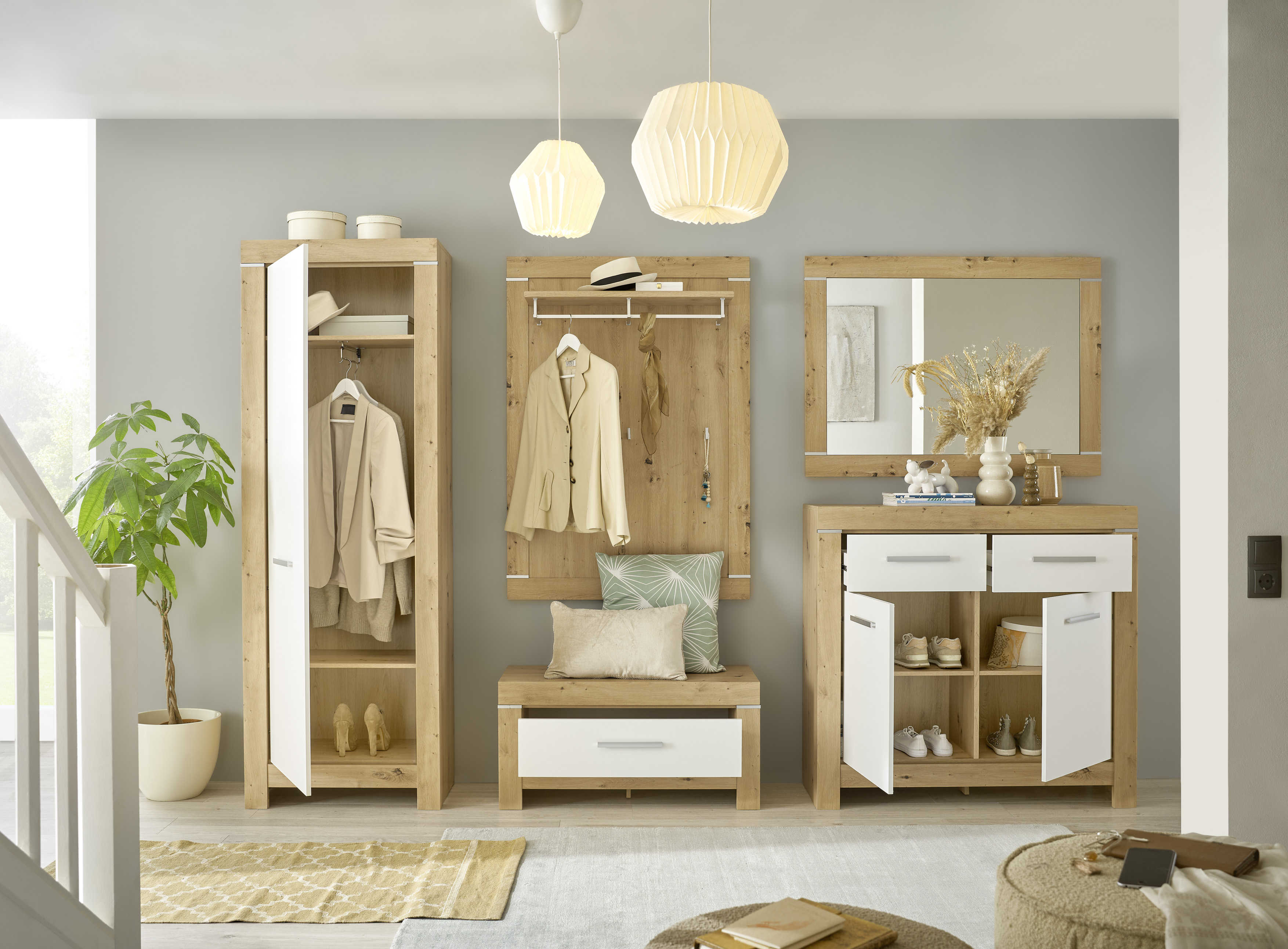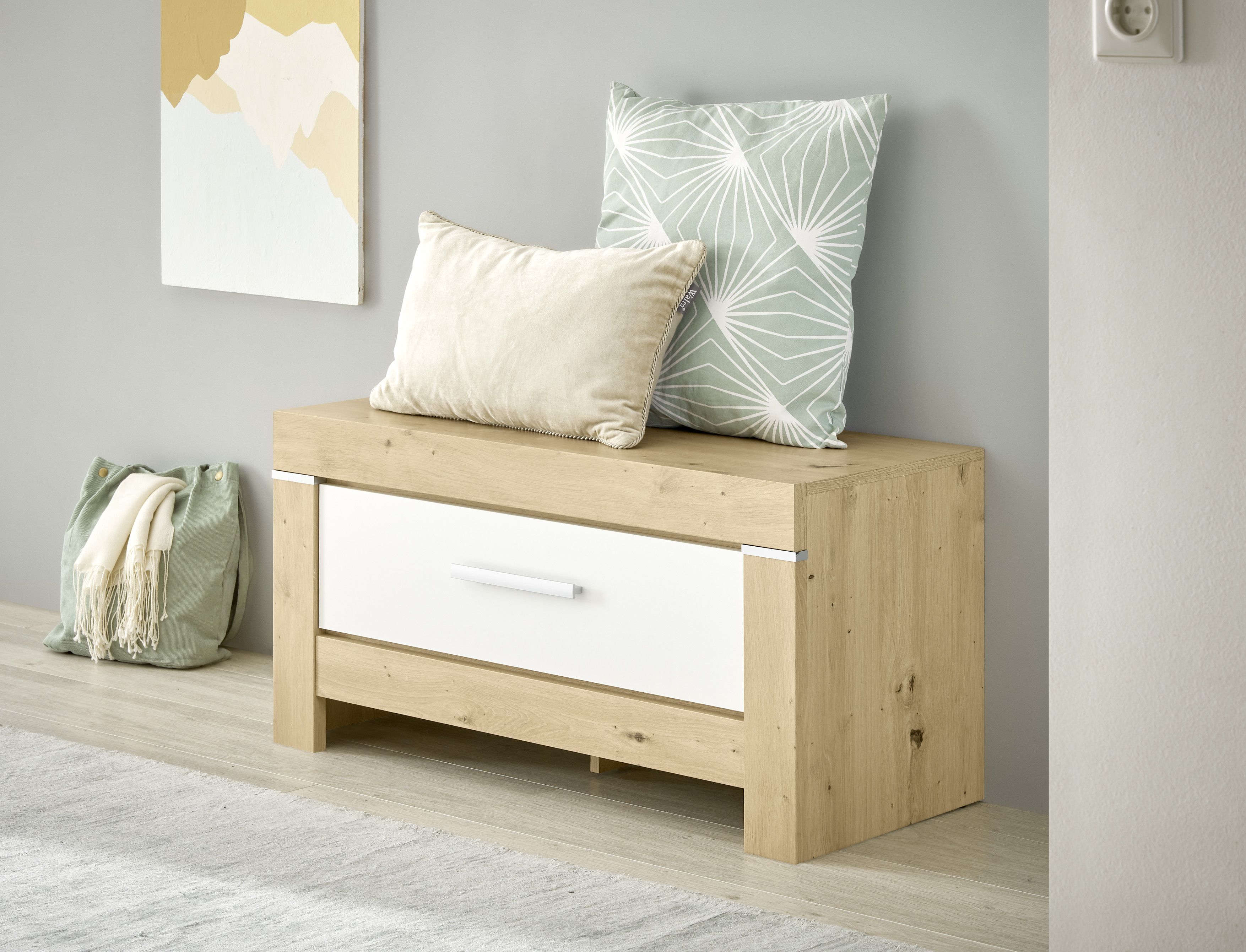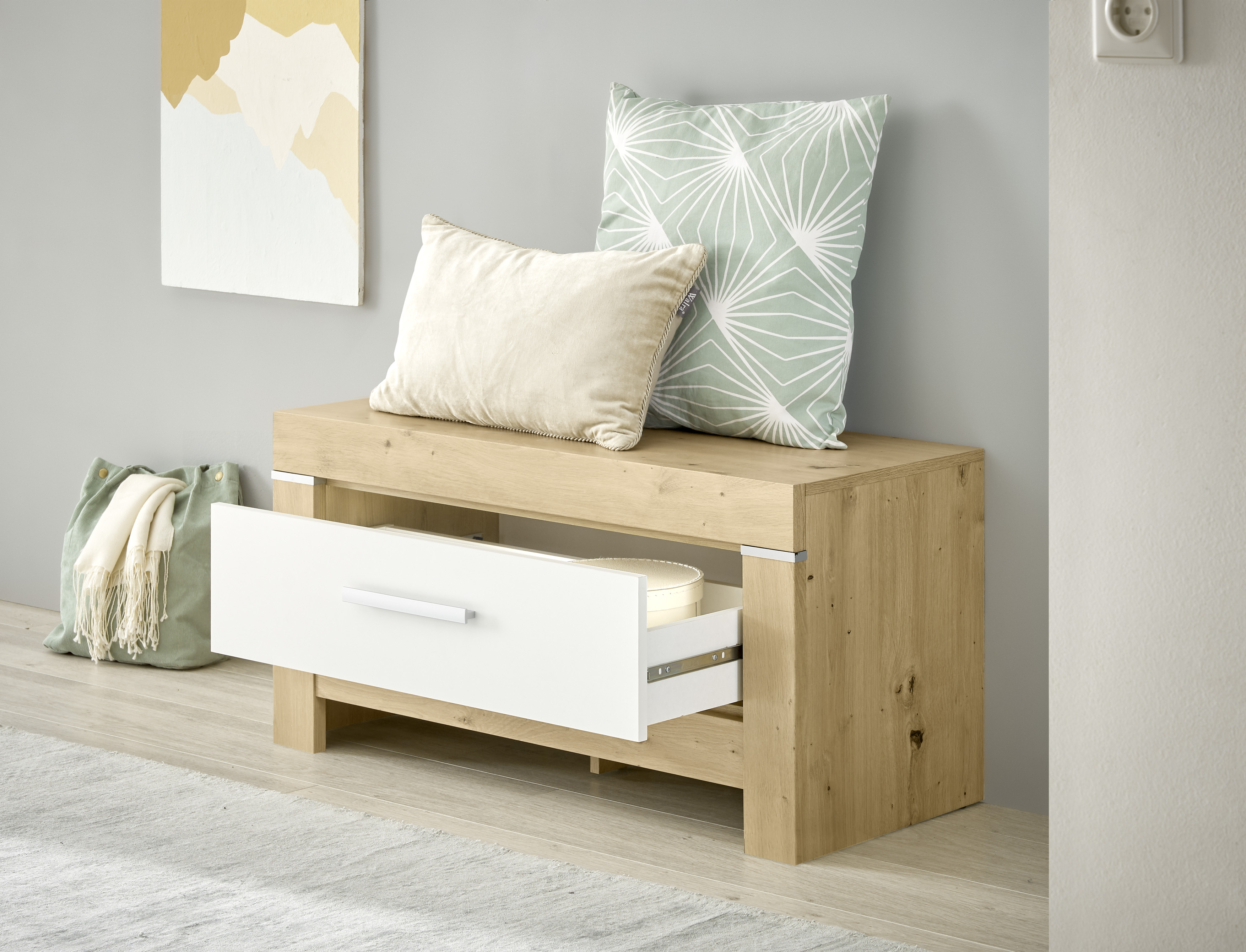- Modernes Design passend zur Möbelserie in Artisan Eiche und Weiß