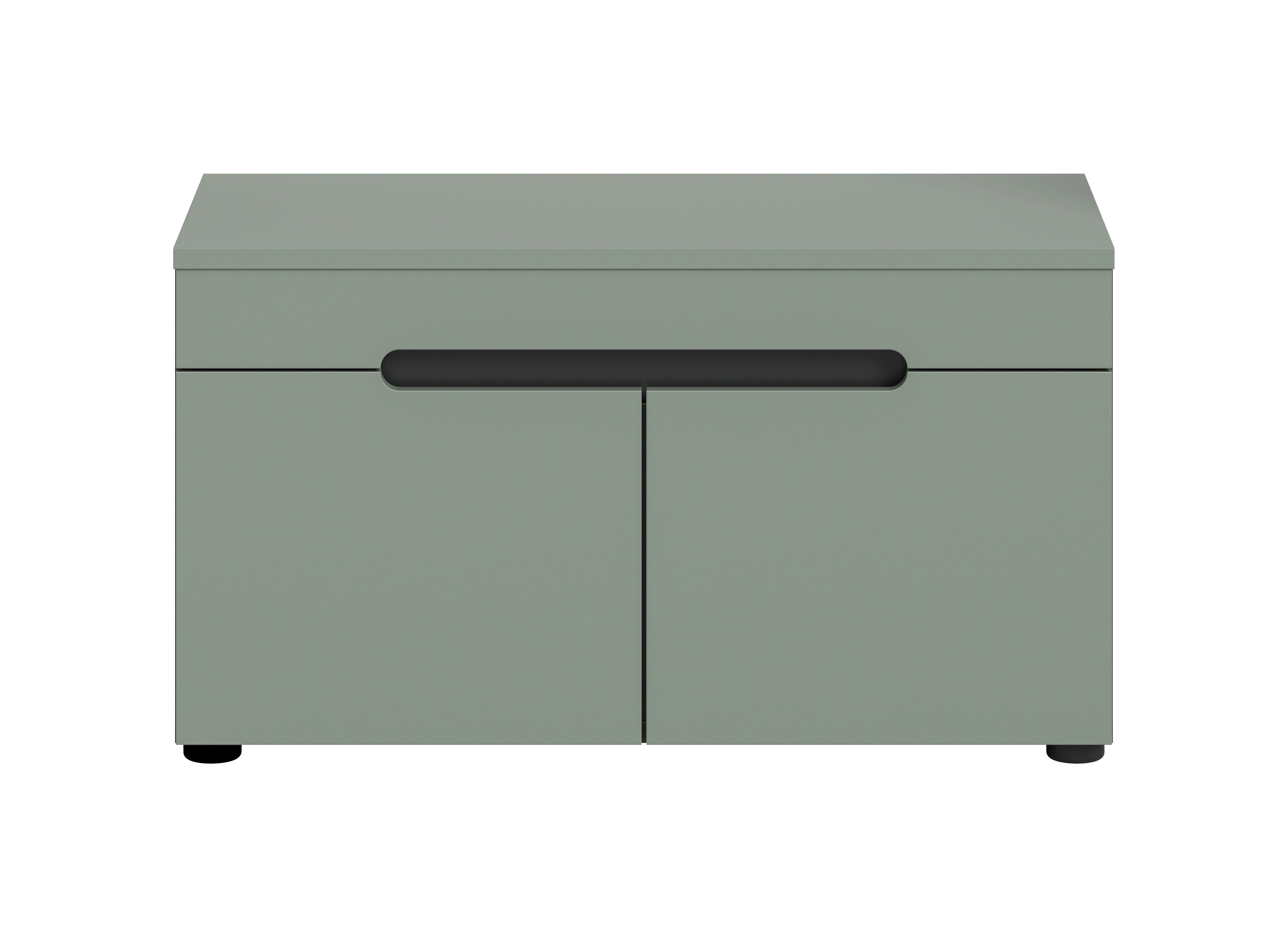 Unsere Garderoben Sitzbank mit den Maßen 80x45x37 cm kombiniert praktische Sitzgelegenheit mit stilvollem Stauraum. Das hochwertige Design in Basaltgrau Nachbildung und Smoke Green verleiht Ihrem Eingangsbereich eine moderne Note. Entdecken Sie jetzt diese platzsparende und ästhetische Lösung für eine organisierte Garderobe.