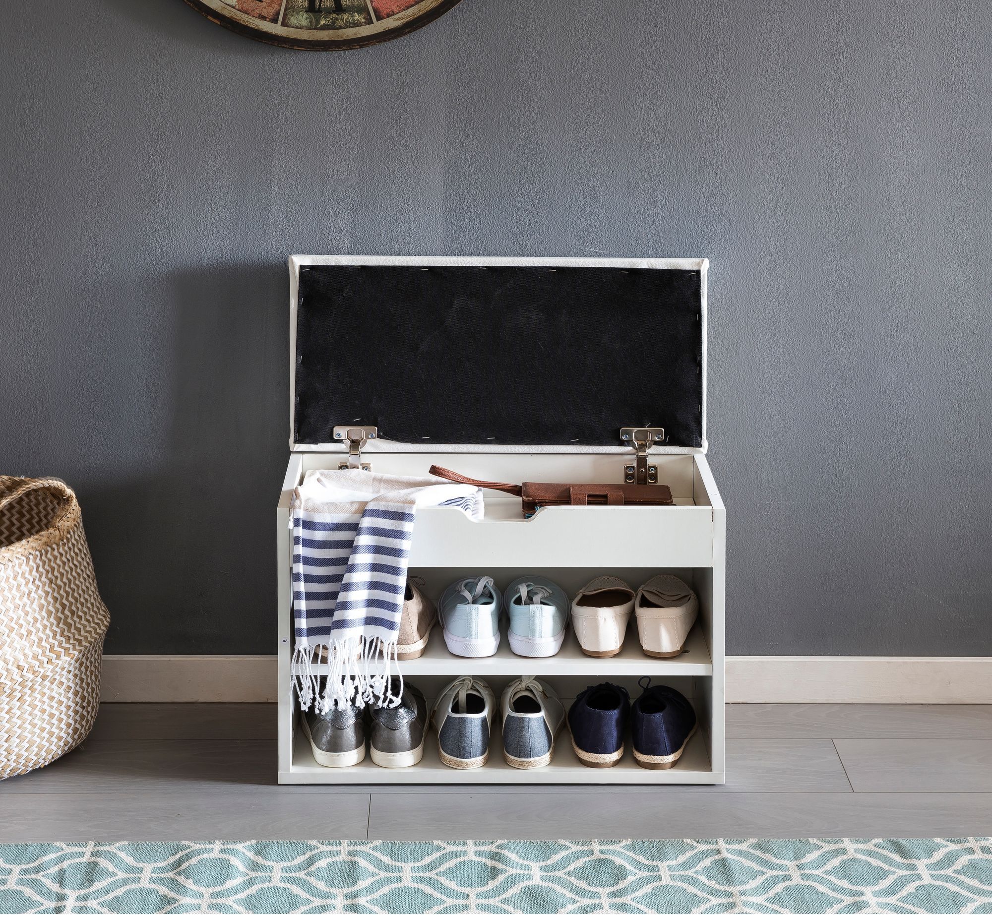 - ALLTAGSHELFER ✔ Man setzt sich gerne hin, um gemütlich in die Schuhe zu schlüpfen oder diese wieder auszuziehen. Damit die Schuhe aber nicht im Flur herumstehen, können Sie diese, dank des integrierten Regals, schnell in dieser schmalen Sitzbank verschwinden lassen. Damit ist dieses Multitalent eine echt Hilfe für den Alltag!