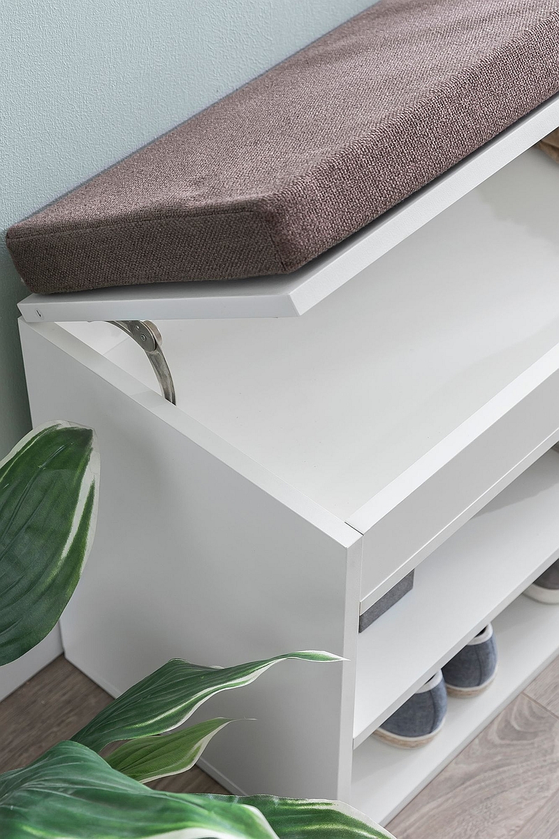 mit Sitzkissen und Stauraum unterhalb der Sitzfläche