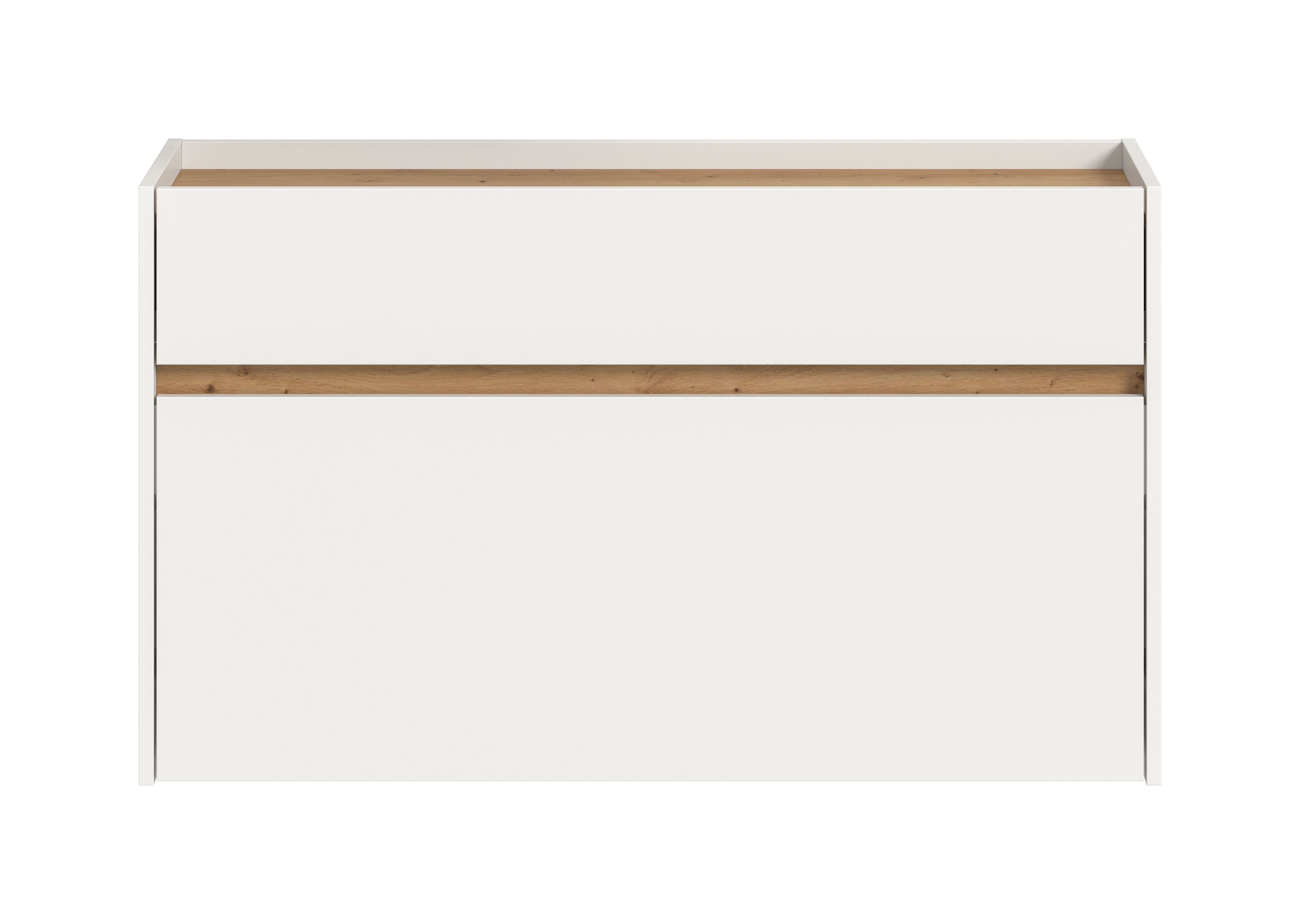 Die Schuhkommode 110x61x32 cm in Weiß und Artisan Oak Nachbildung mit 1 Schubkasten, 1 Schuhwalze bietet Platz für ca. 8 Paar Schuhe. FSC®-zertifizierter Holzwerkstoff steht für Nachhaltigkeit. Die pflegeleichte Oberfläche und schnelle Montage machen sie besonders nutzerfreundlich. Erweitere dein Zuhause flexibel mit weiteren Artikeln der Serie. Für mehr Ordnung und Stil.