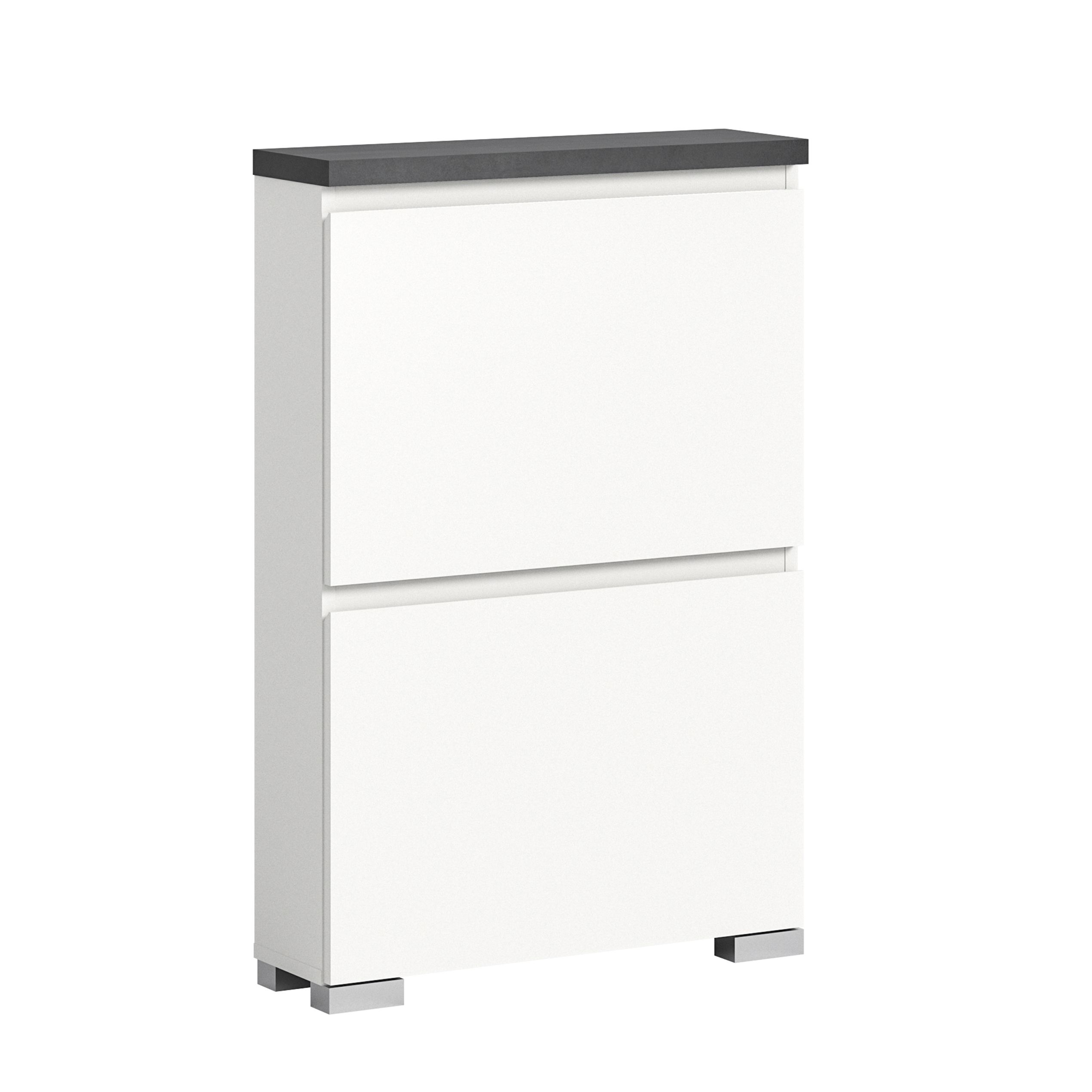 In unserer HADERO Serie präsentieren wir einen kombinierbaren Schuhschrank in stilvollem und zeitlosem Weiß mit einem Oberboden in Industrial Grau, der deinem Eingangsbereich einen modernen Touch verleiht. Mit seiner vielseitigen Gestaltung kannst du ihn nach deinen Bedürfnissen anpassen und so deine Schuhsammlung stilvoll organisieren. Entdecke die perfekte Symbiose aus Funktionalität und Design mit diesem flexiblen Schuhschrank.