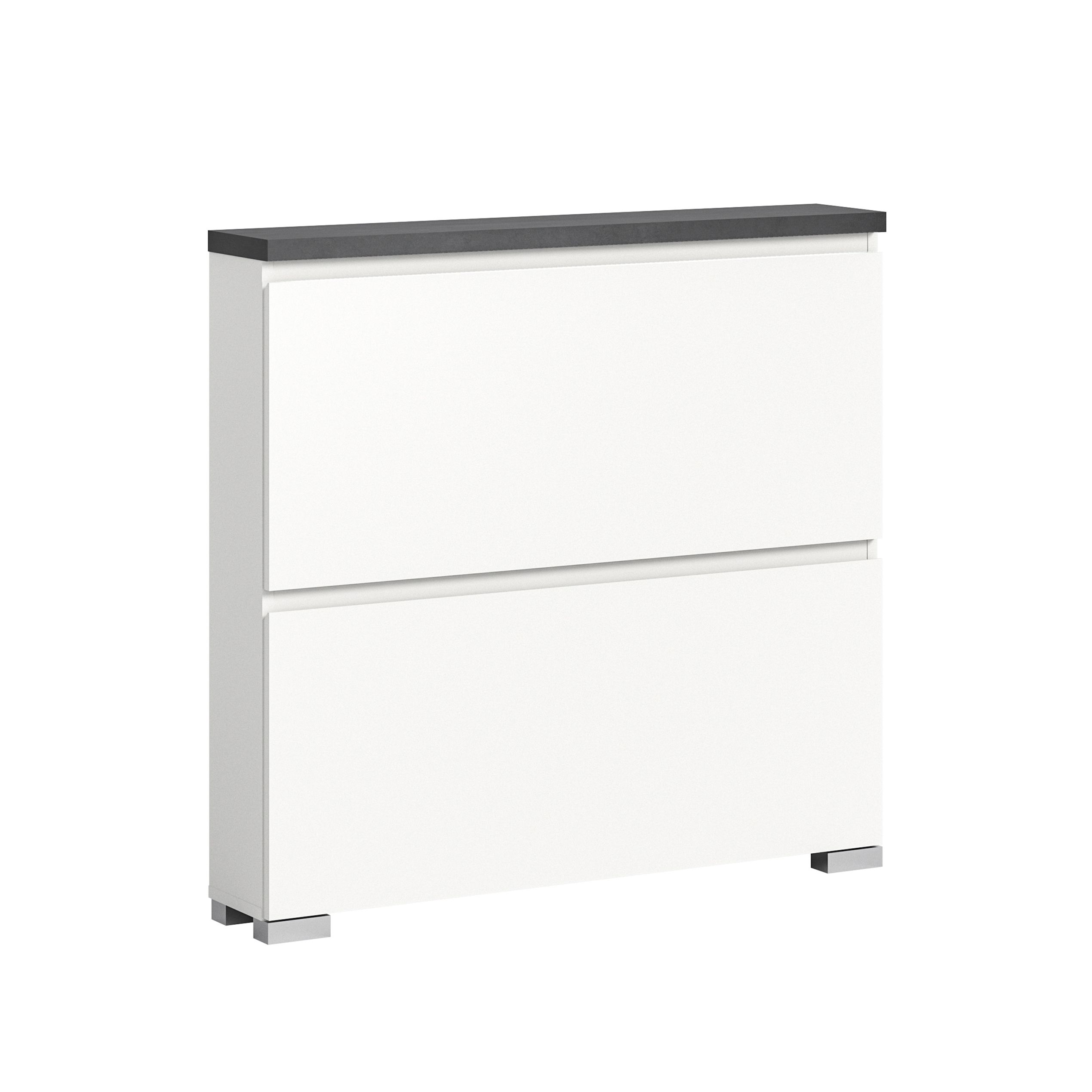 In unserer HADERO Serie präsentieren wir einen kombinierbaren Schuhschrank in stilvollem und zeitlosem Weiß mit einem Oberboden in Industrial Grau, der deinem Eingangsbereich einen modernen Touch verleiht. Mit seiner vielseitigen Gestaltung kannst du ihn nach deinen Bedürfnissen anpassen und so deine Schuhsammlung stilvoll organisieren. Entdecke die perfekte Symbiose aus Funktionalität und Design mit diesem flexiblen Schuhschrank.