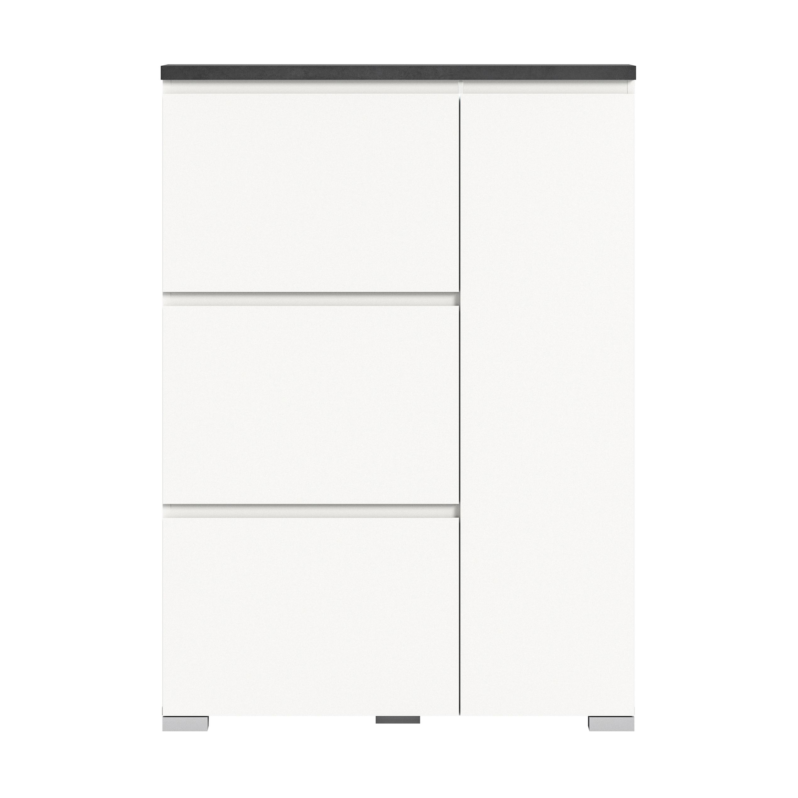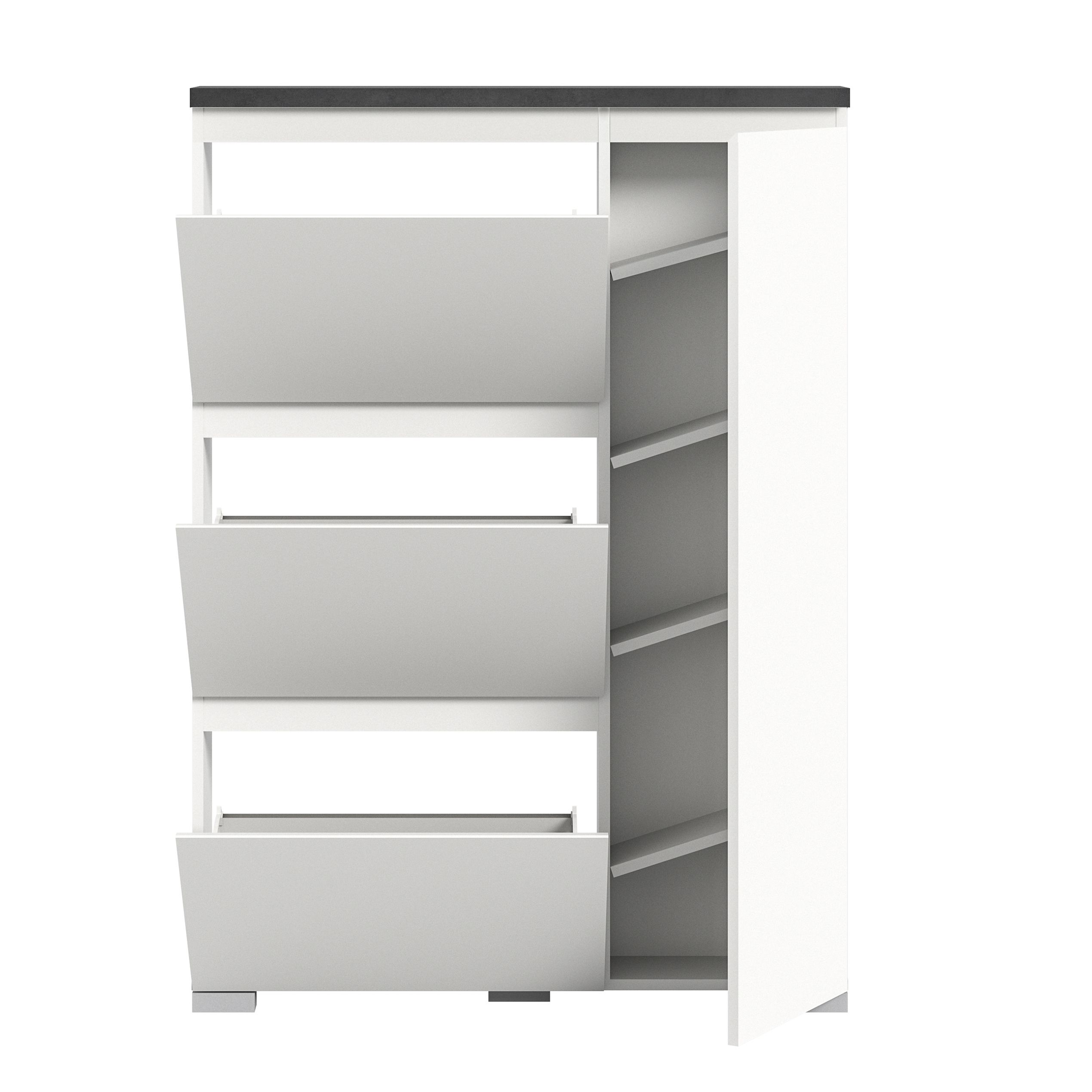 In unserer HADERO Serie präsentieren wir einen kombinierbaren Schuhschrank in stilvollem und zeitlosem Weiß mit einem Oberboden in Industrial Grau, der deinem Eingangsbereich einen modernen Touch verleiht. Mit seiner vielseitigen Gestaltung kannst du ihn nach deinen Bedürfnissen anpassen und so deine Schuhsammlung stilvoll organisieren. Entdecke die perfekte Symbiose aus Funktionalität und Design mit diesem flexiblen Schuhschrank.