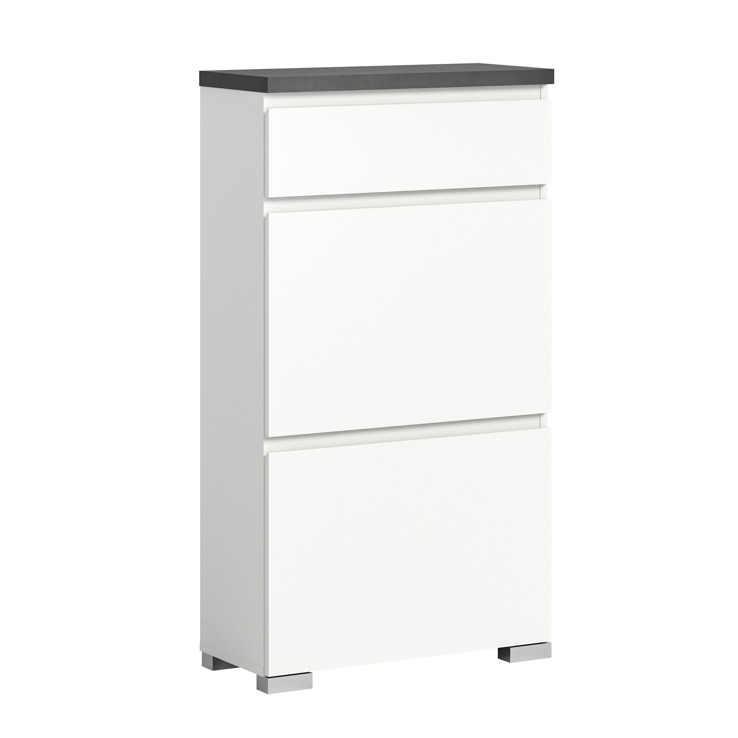 In unserer HADERO Serie präsentieren wir einen kombinierbaren Schuhschrank in stilvollem und zeitlosem Weiß mit einem Oberboden in Industrial Grau, der deinem Eingangsbereich einen modernen Touch verleiht. Mit seiner vielseitigen Gestaltung kannst du ihn nach deinen Bedürfnissen anpassen und so deine Schuhsammlung stilvoll organisieren. Entdecke die perfekte Symbiose aus Funktionalität und Design mit diesem flexiblen Schuhschrank.
