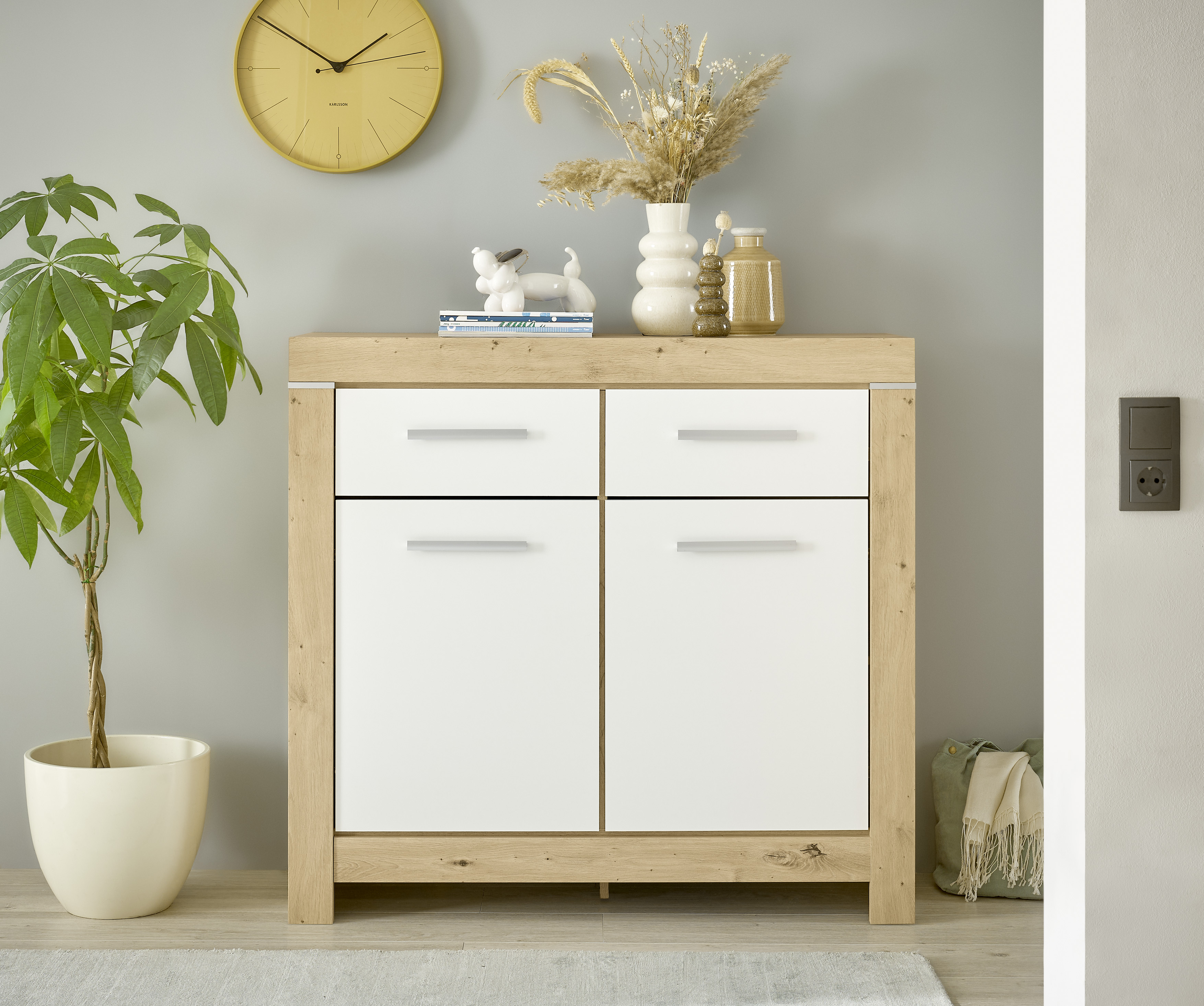 - Modernes Design passend zur Möbelserie in Artisan Eiche und Weiß