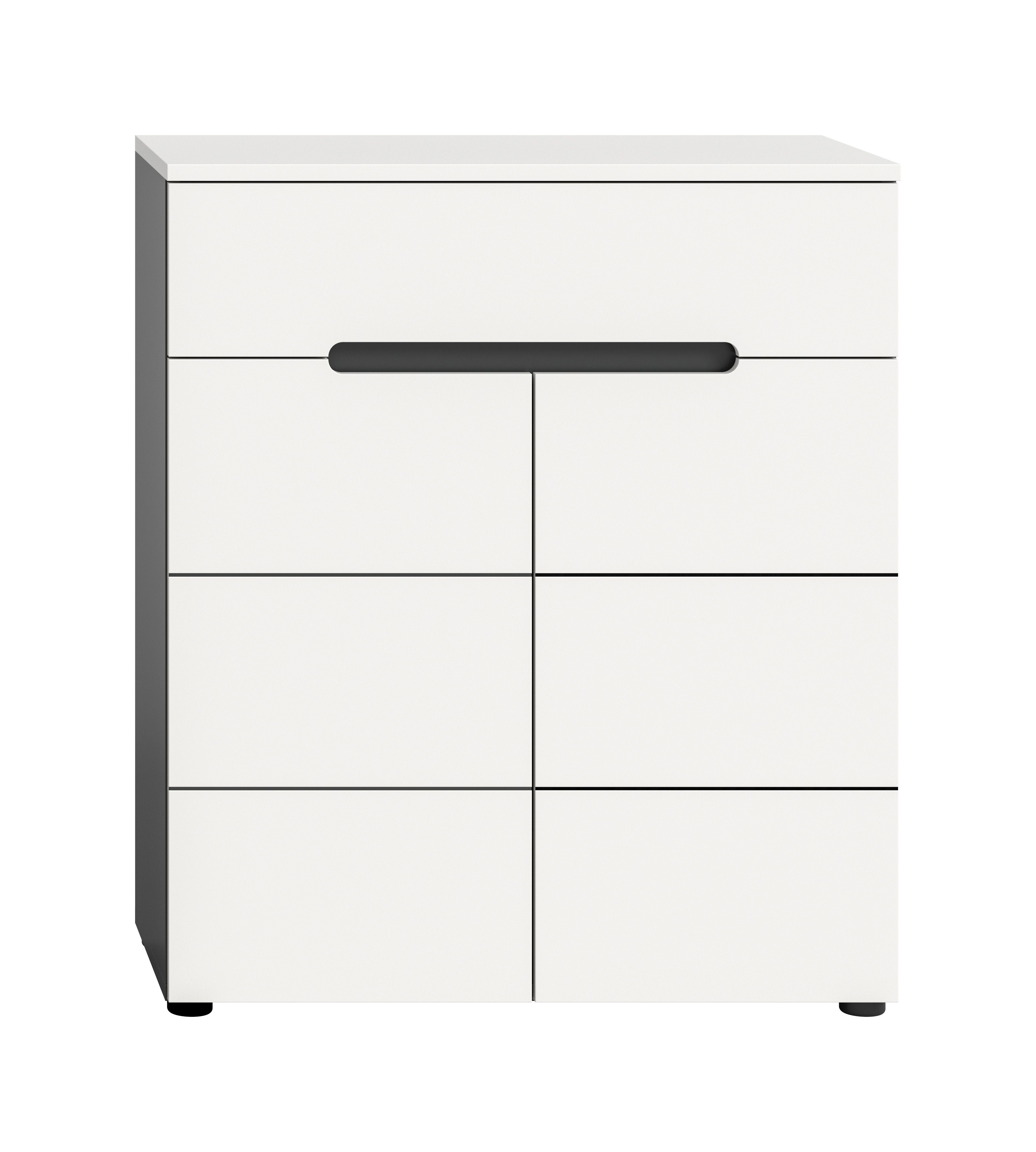 - Design/Stil: Schuhkommode mit zeitgemäßem und elegantem Design in Basalt grau NB und Weiß, das sich nahtlos in moderne Flure und Dielen einfügt.