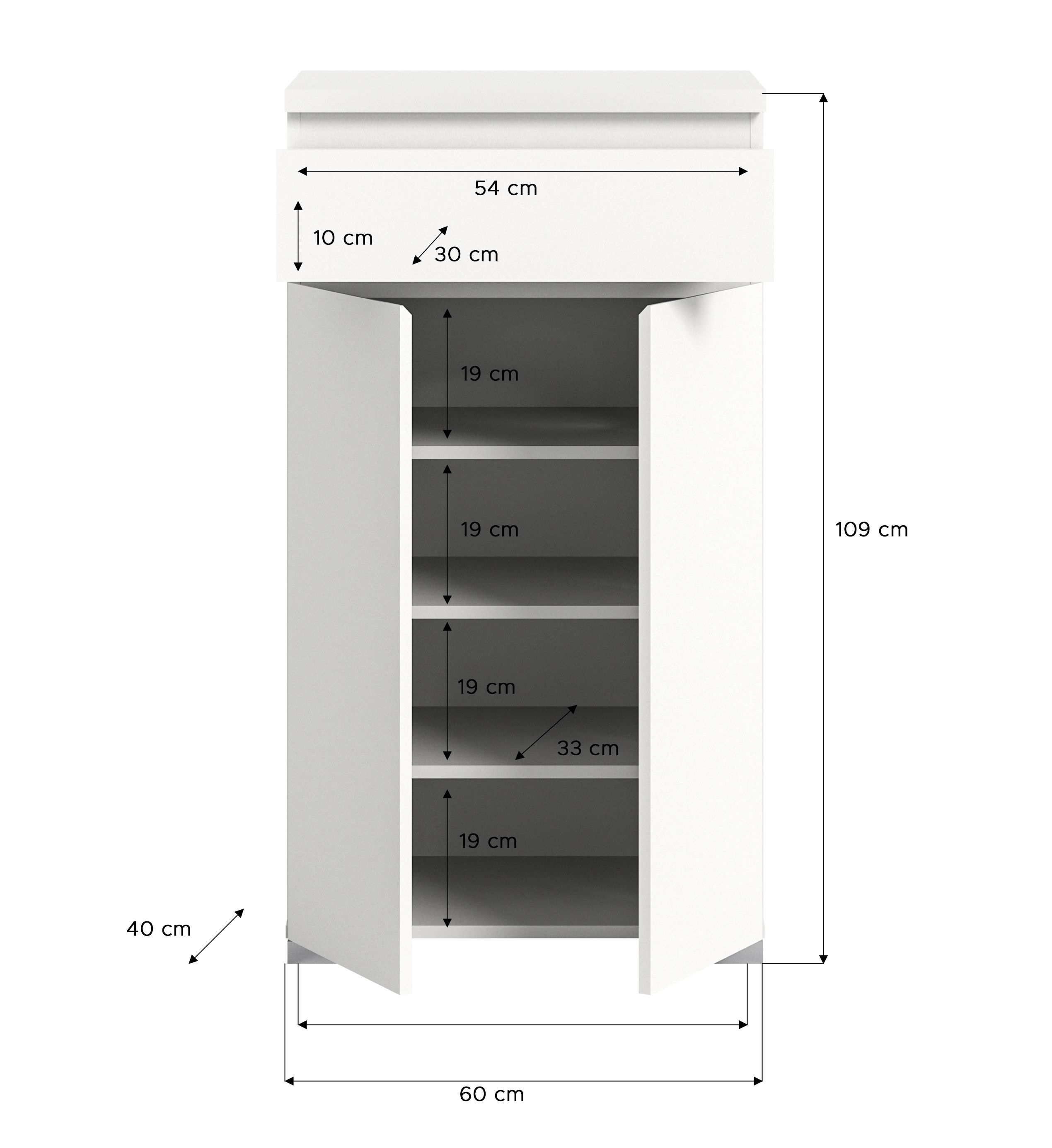 - Funktionalität: Mit seinen kompakten Abmessungen bietet der Schuhschrank ausreichend Stauraum für Schuhe und andere Accessoires, während er gleichzeitig Platz spart und den Raum optimal nutzt, was zu einer effizienten Organisation beiträgt.