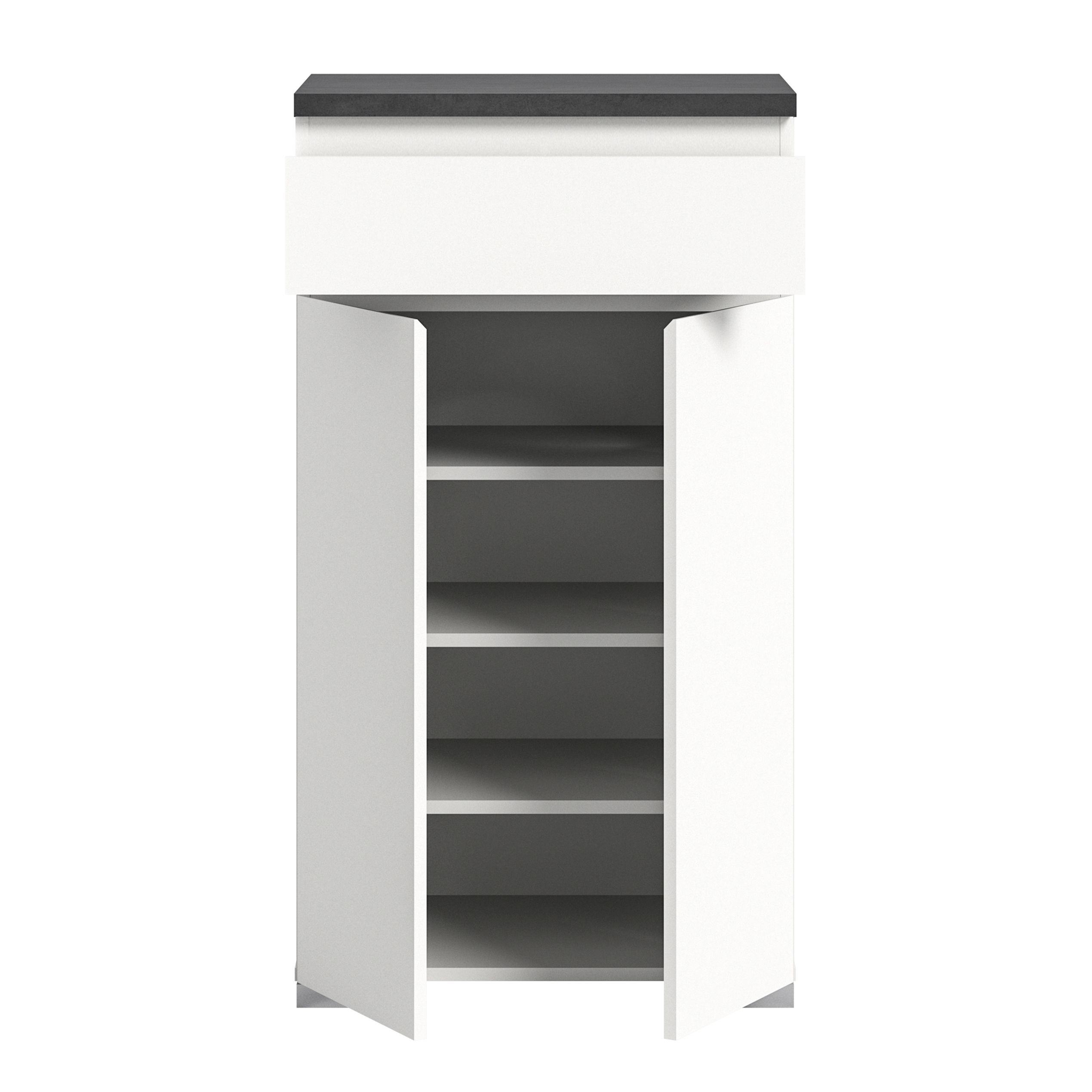 In unserer HADERO Serie präsentieren wir einen kombinierbaren Schuhschrank in stilvollem und zeitlosem Weiß mit einem grauen Oberboden, der deinem Eingangsbereich einen modernen Touch verleiht. Mit seiner vielseitigen Gestaltung kannst du ihn nach deinen Bedürfnissen anpassen und so deine Schuhsammlung stilvoll organisieren. Entdecke die perfekte Symbiose aus Funktionalität und Design mit diesem flexiblen Schuhschrank.