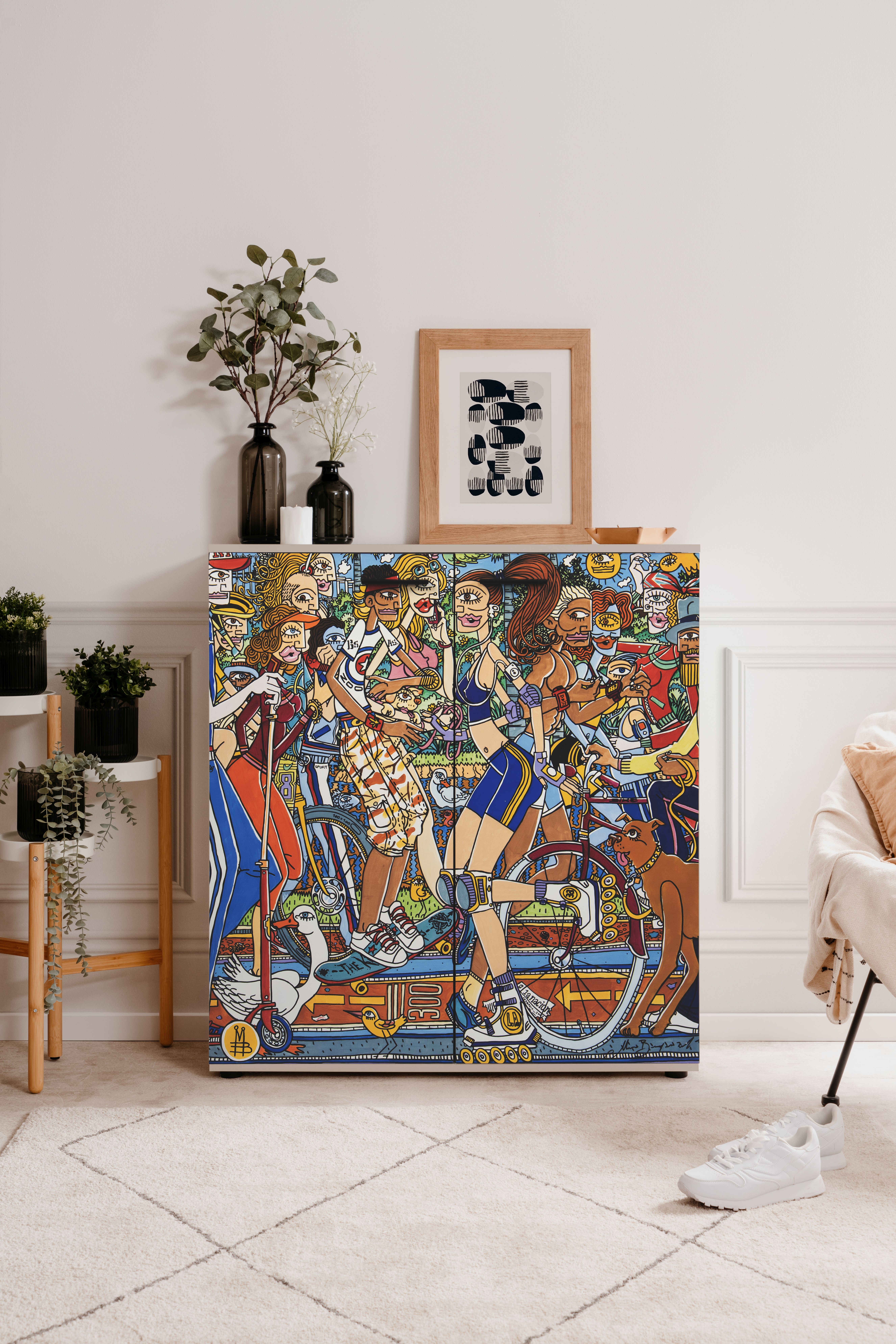 Korpus und Front: Beige mit bedruckten Türen designed by Mauro Bergonzoli