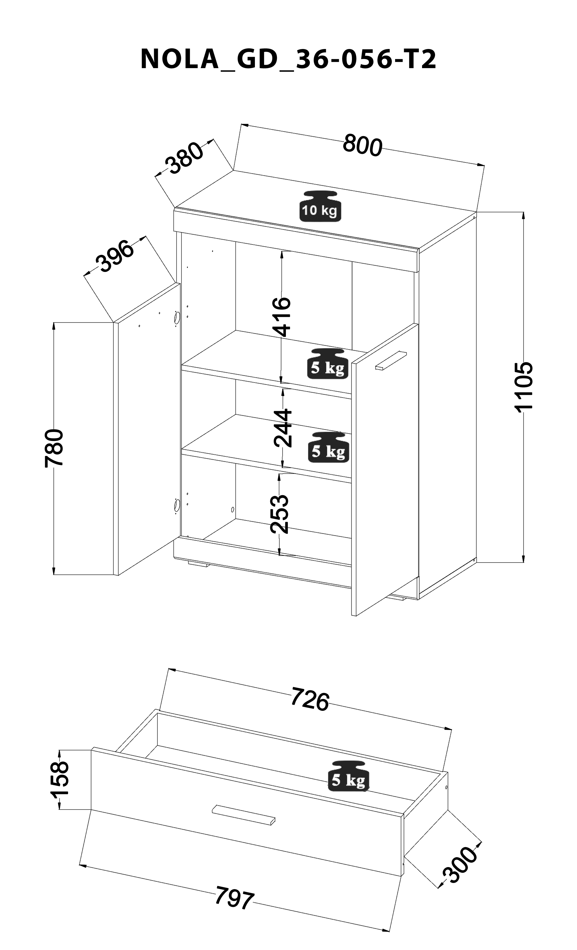 | Ausstattung Kommoden Phono Büro Regal: | Schublade(n), Türe(n) | ||