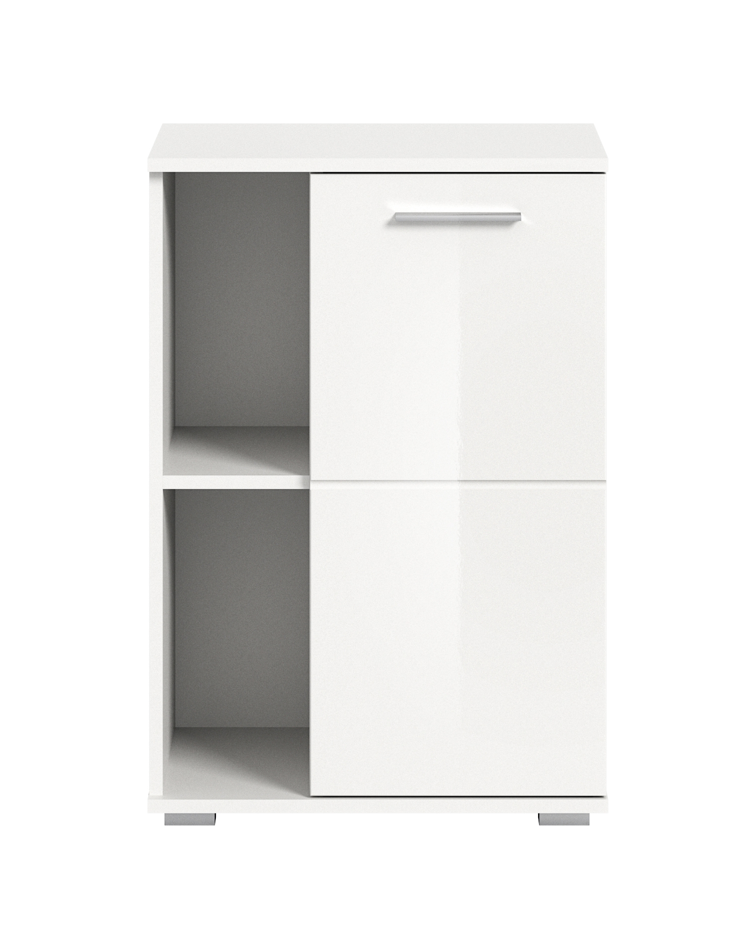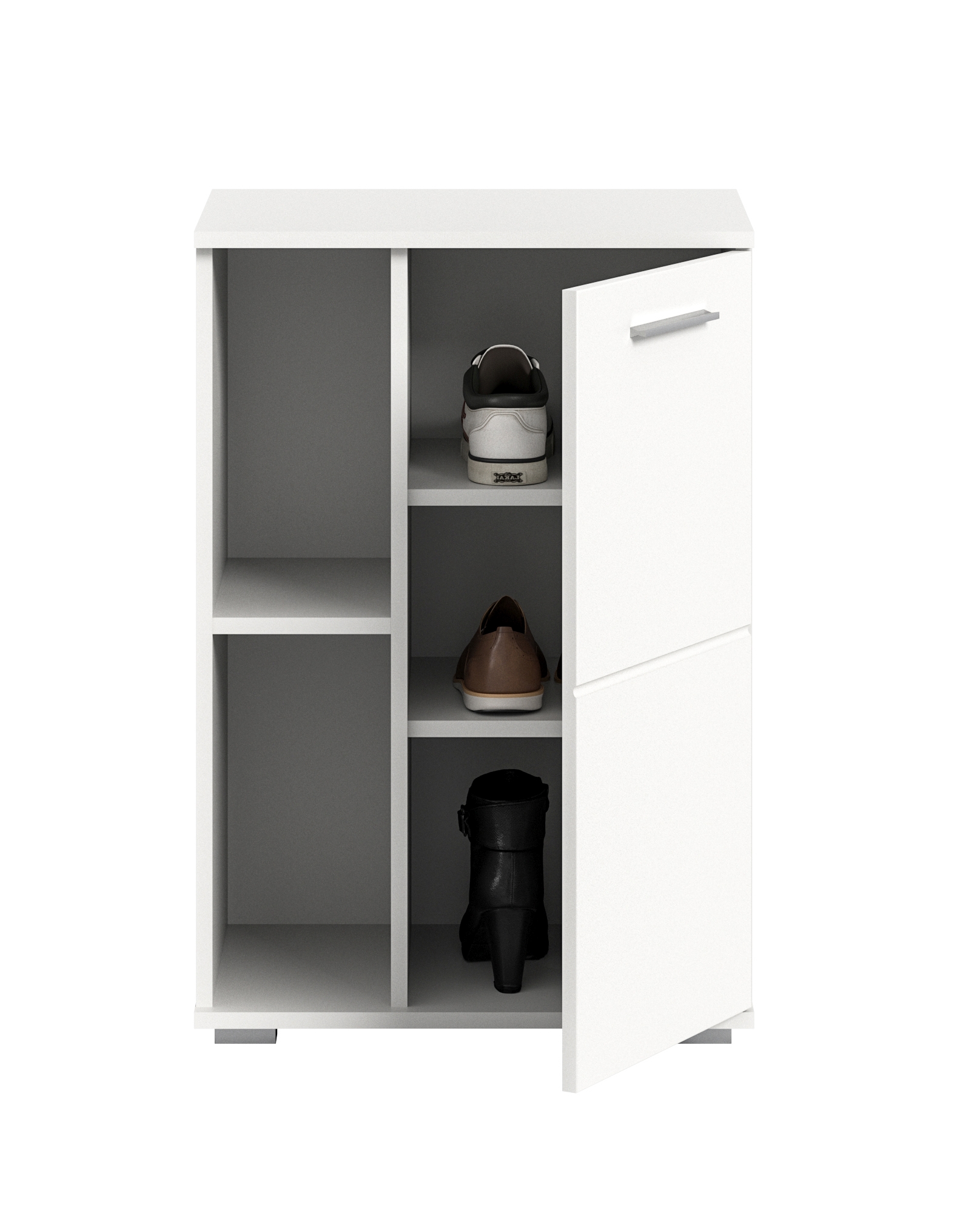 Entdecken Sie unsere platzsparende Schuhkommode für Flur und Diele, mit den Maßen 55x79x37 cm. Die Kombination aus weißer Nachbildung und weißem Hochglanz verleiht Ihrem Eingangsbereich ein modernes und ansprechendes Ambiente. Holen Sie sich jetzt dieses stilvolle und funktionale Möbelstück für eine organisierte Aufbewahrung Ihrer Schuhe.