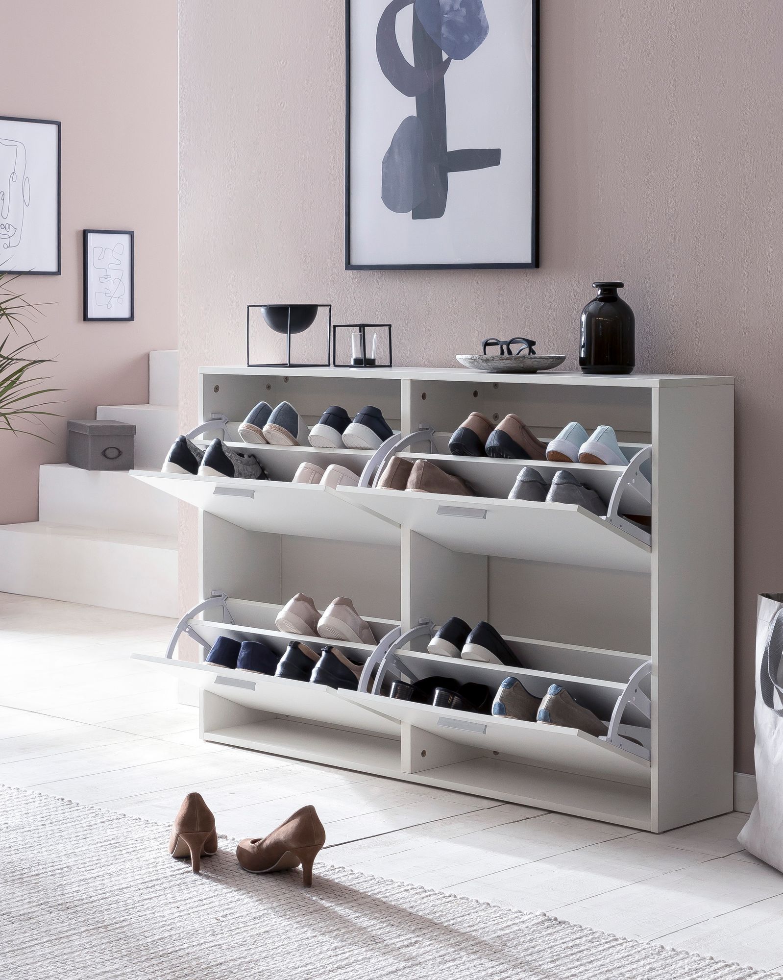 - Vier Kippfächer mit insgesamt 8 Schuhablagen