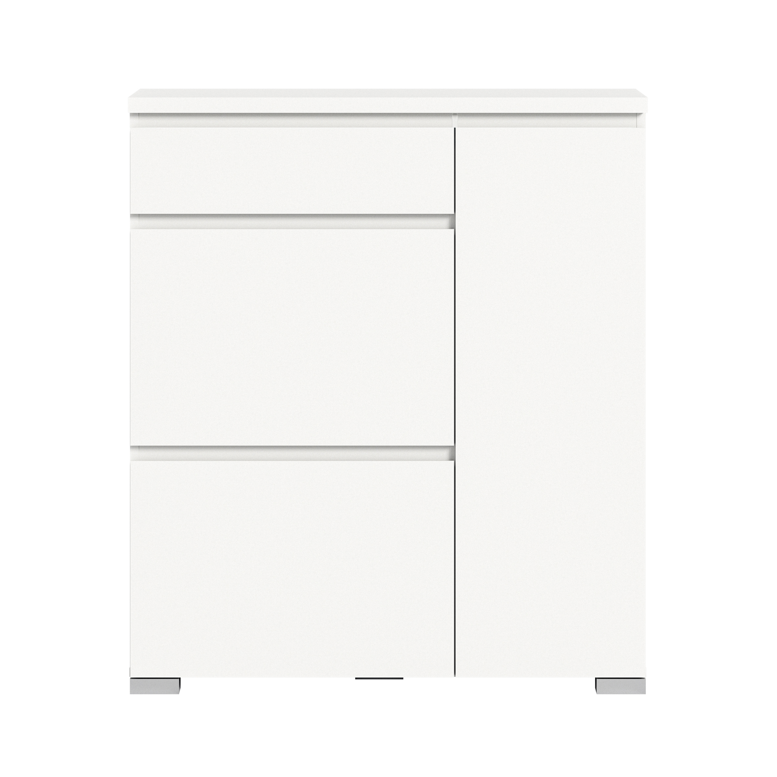 1 Schuhkipper niedrig mit 1 Schubkasten, 2 Klappen, 1 Türe und 4 Einlegeböden