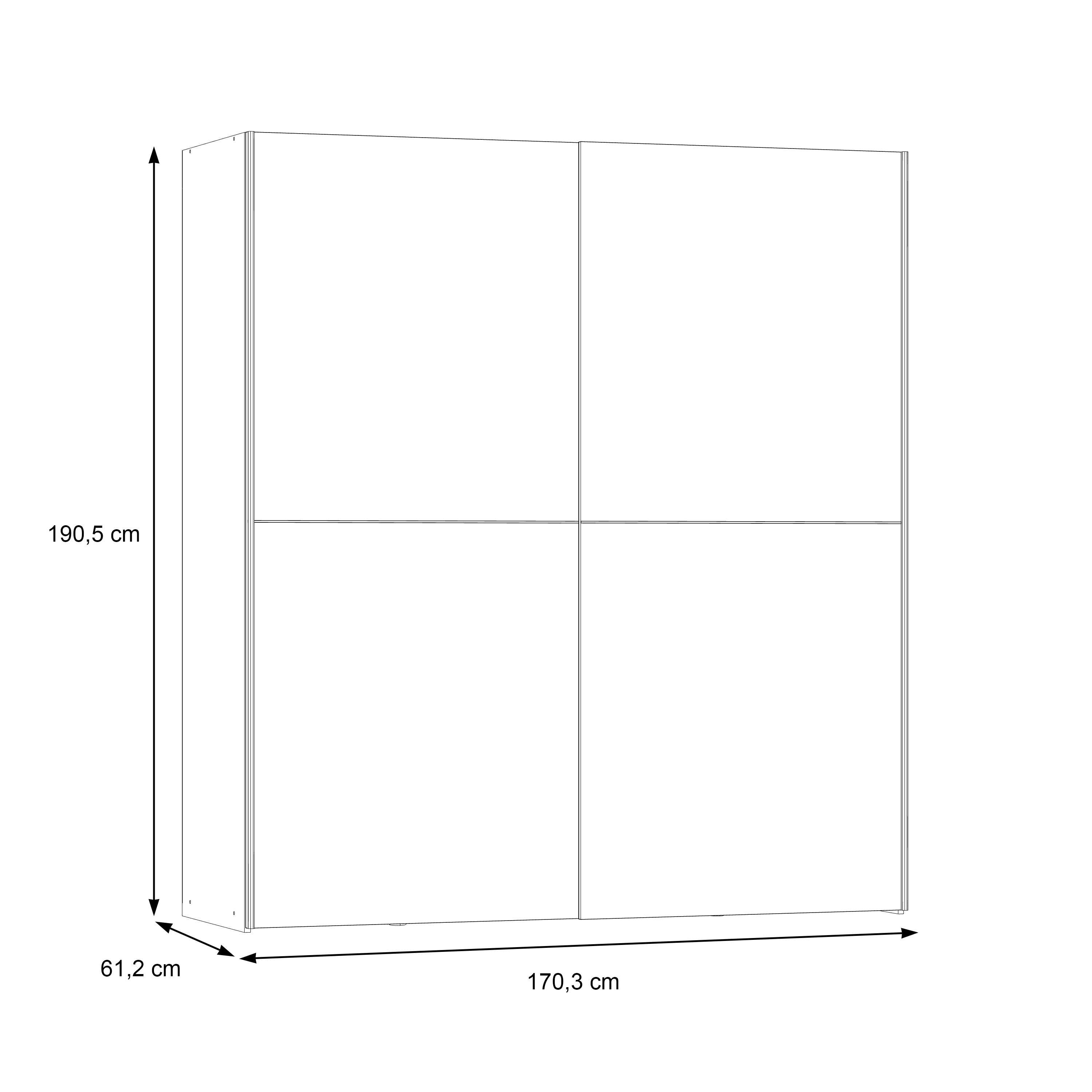 | Schwebetürenschrank | 170,3 | 190,5 | 61,2 |