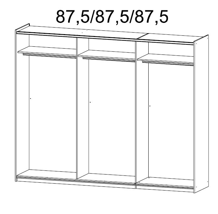 - eingeteilt in 3 Bereiche mit je 1 Fachboden und 1 Kleiderstange