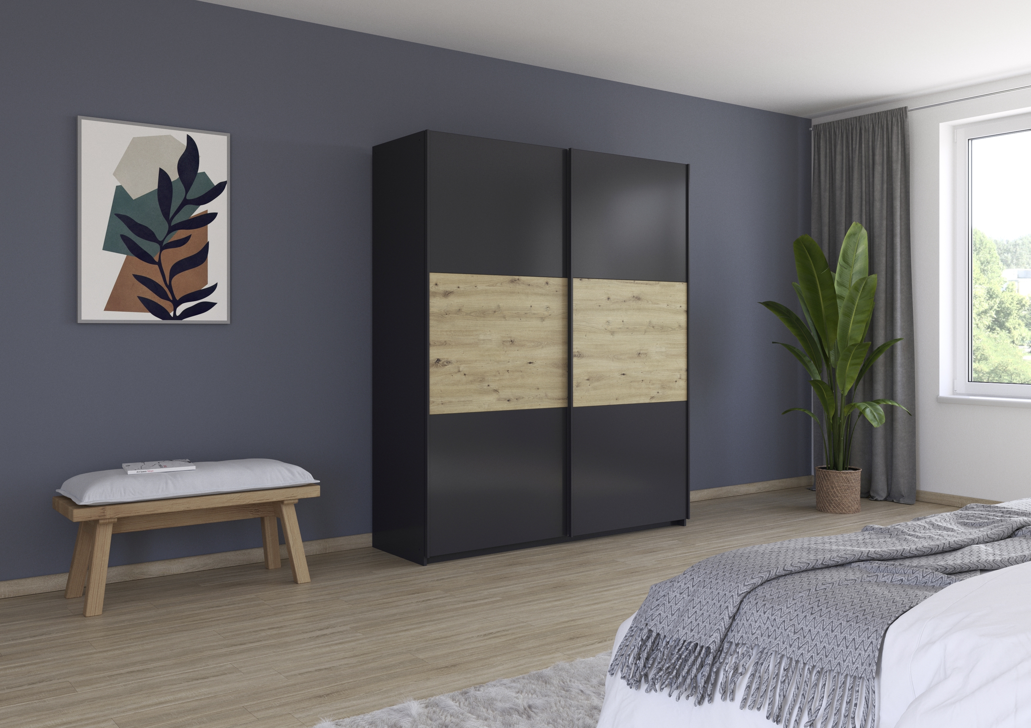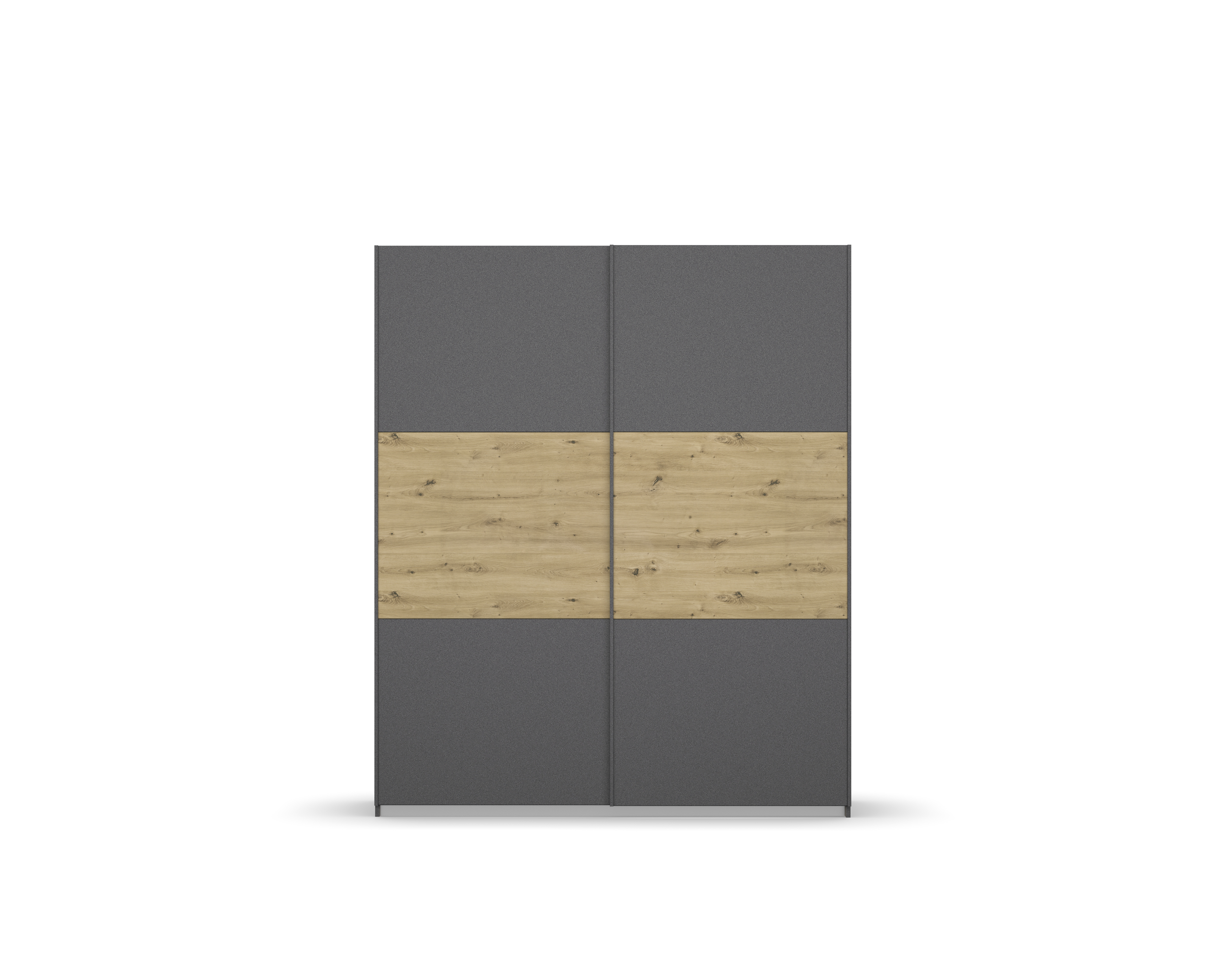 Front und Korpus: Grau-Metallic kombiniert mit Absetzungen in Artisan Eiche Holznachbildung