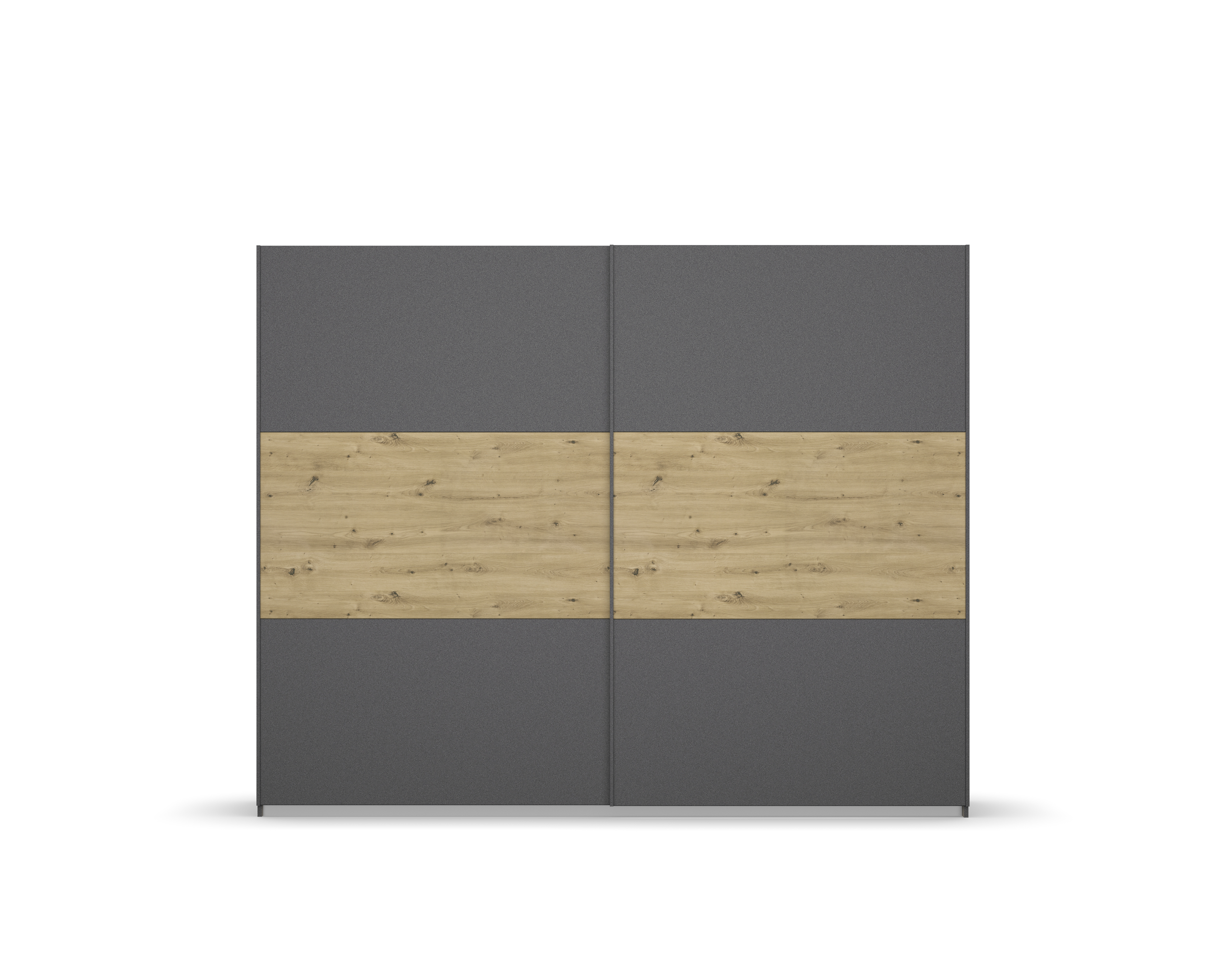 Front und Korpus: Grau-Metallic kombiniert mit Absetzungen in Artisan Eiche Holznachbildung