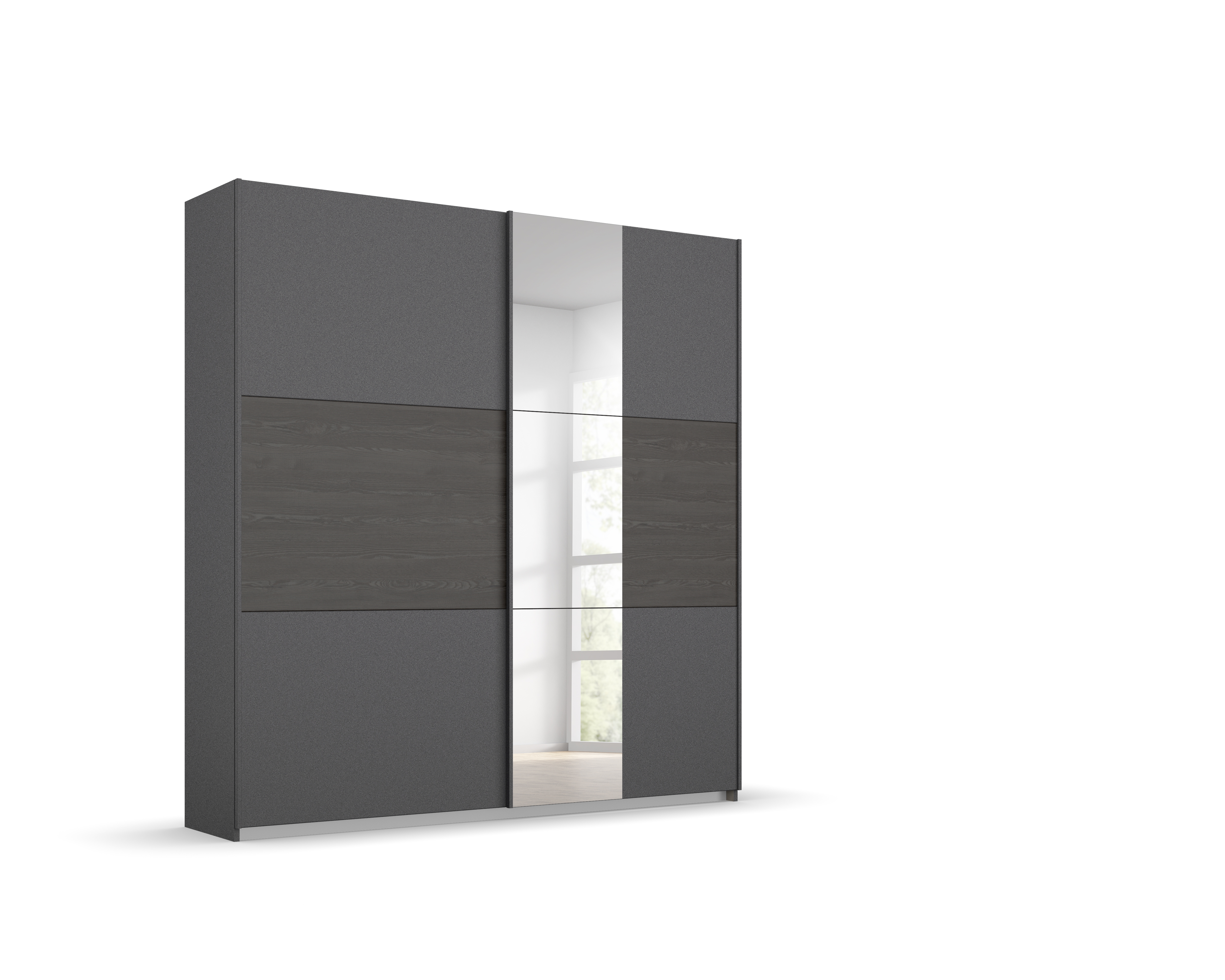 Front und Korpus: Grau-Metallic kombiniert mit Absetzungen in Black Eiche Holznachbildung