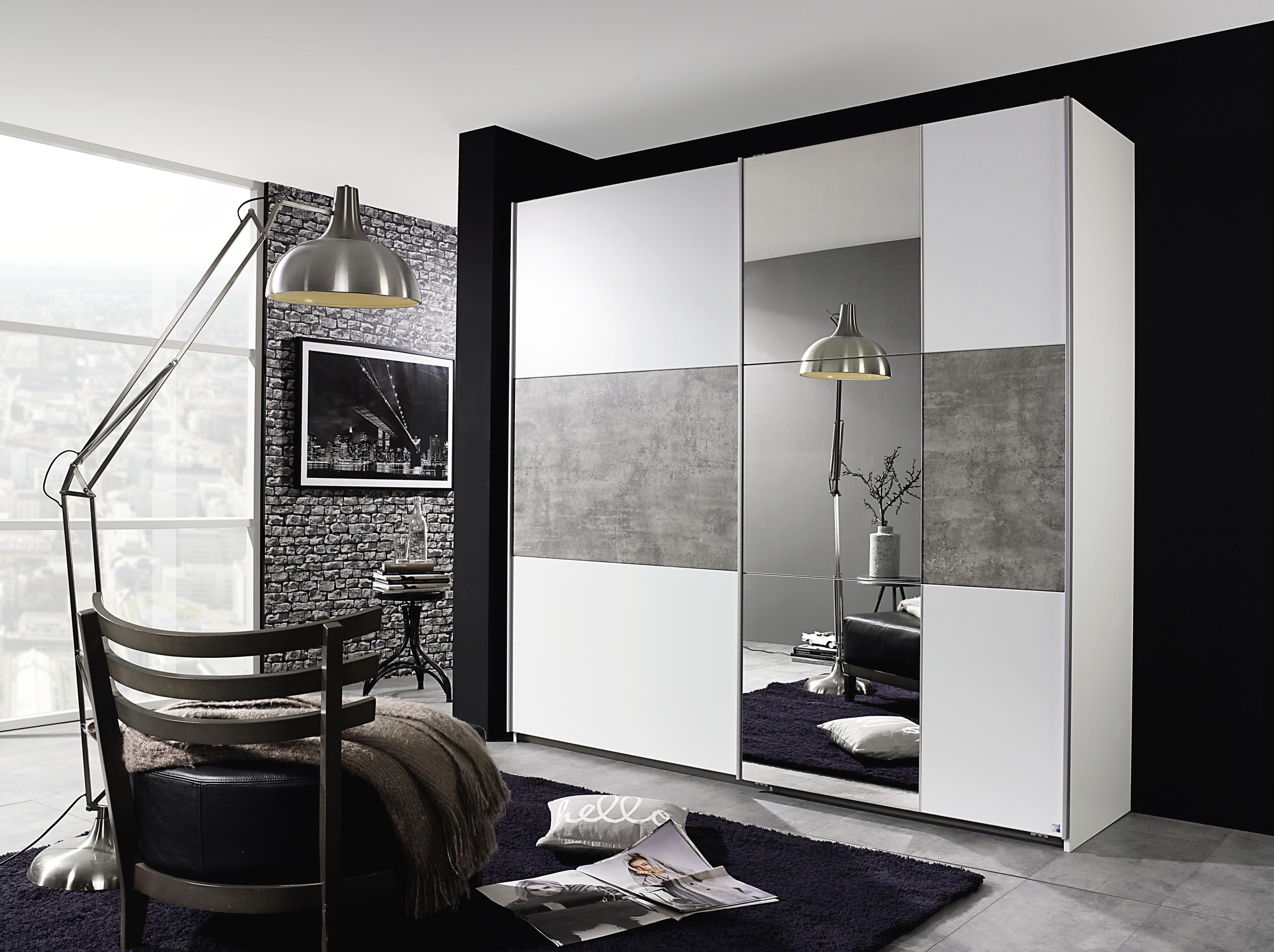 Front: Alpinweiß kombiniert mit Absetzungen in Stone Grey / Spiegel