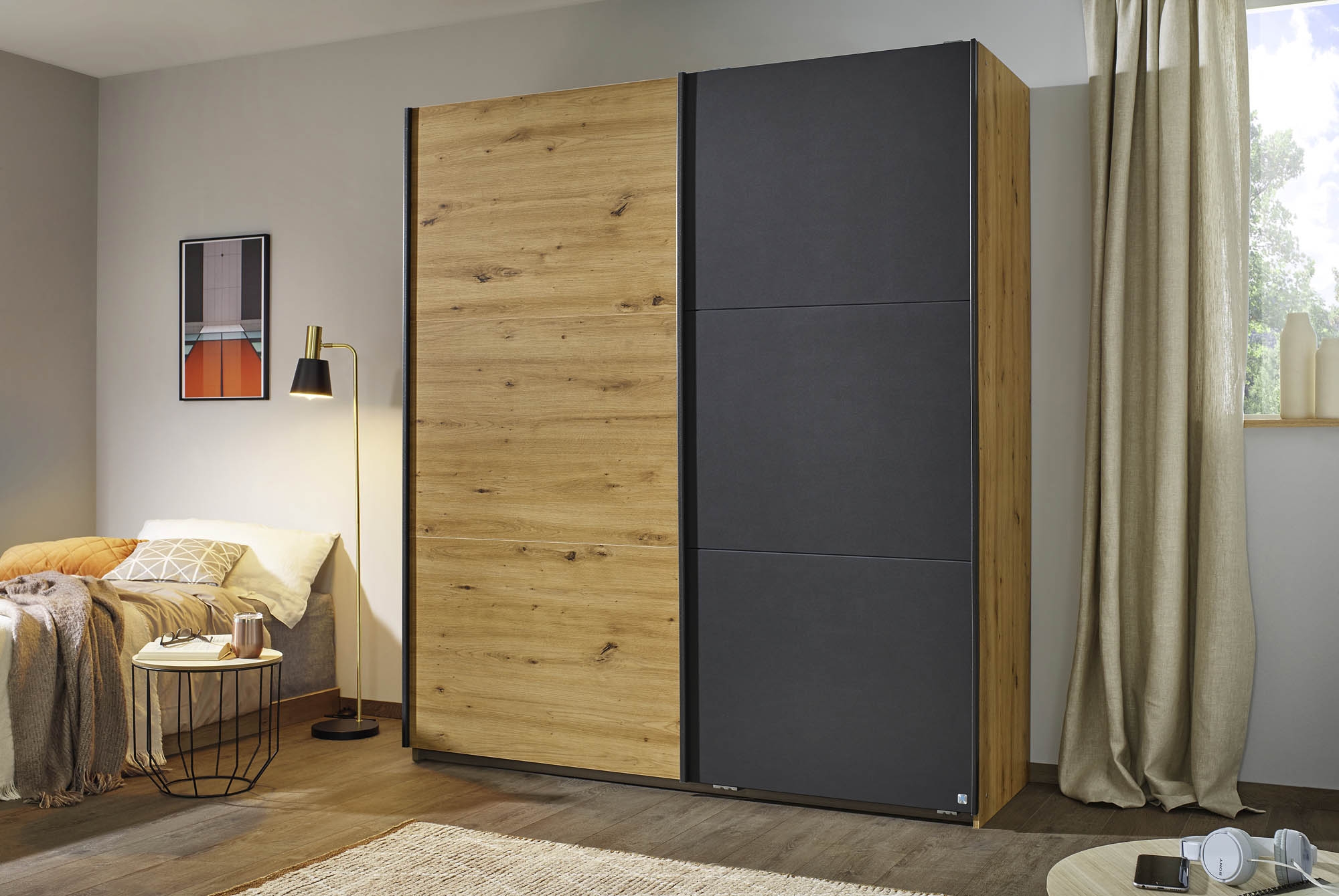 Front und Korpus: Eiche Artisan Holznachbildung kombiniert mit Absetzungen in grau-metallic