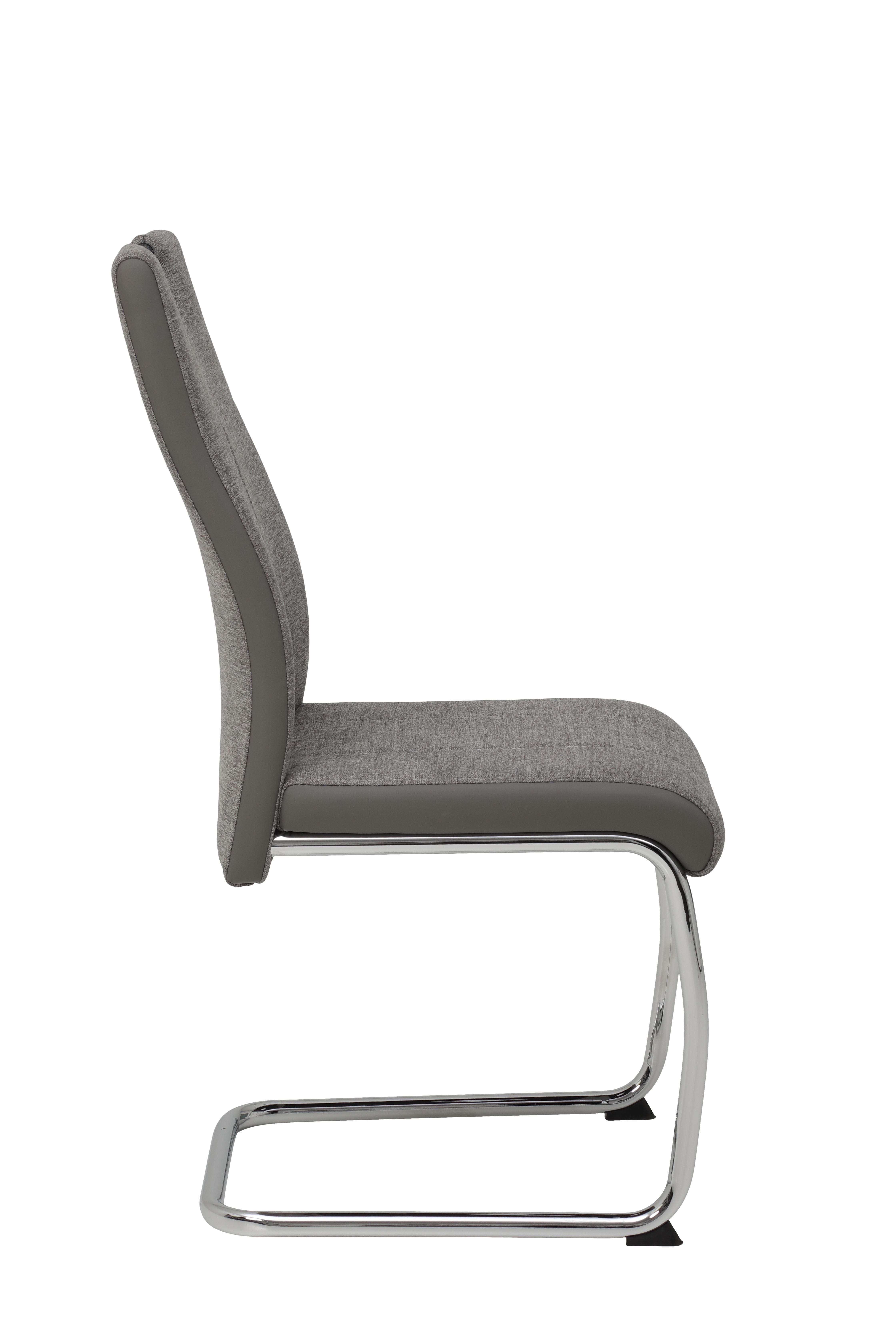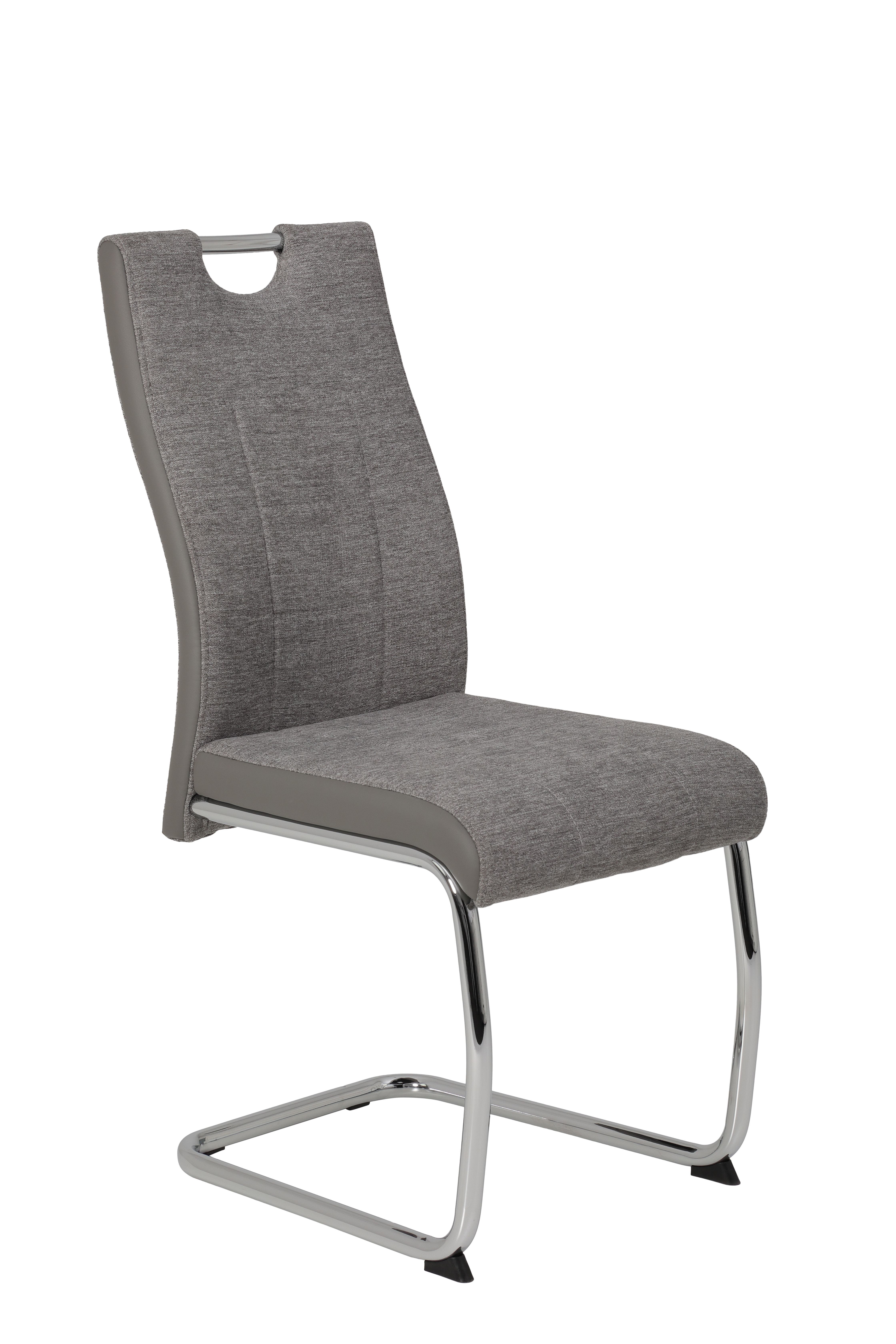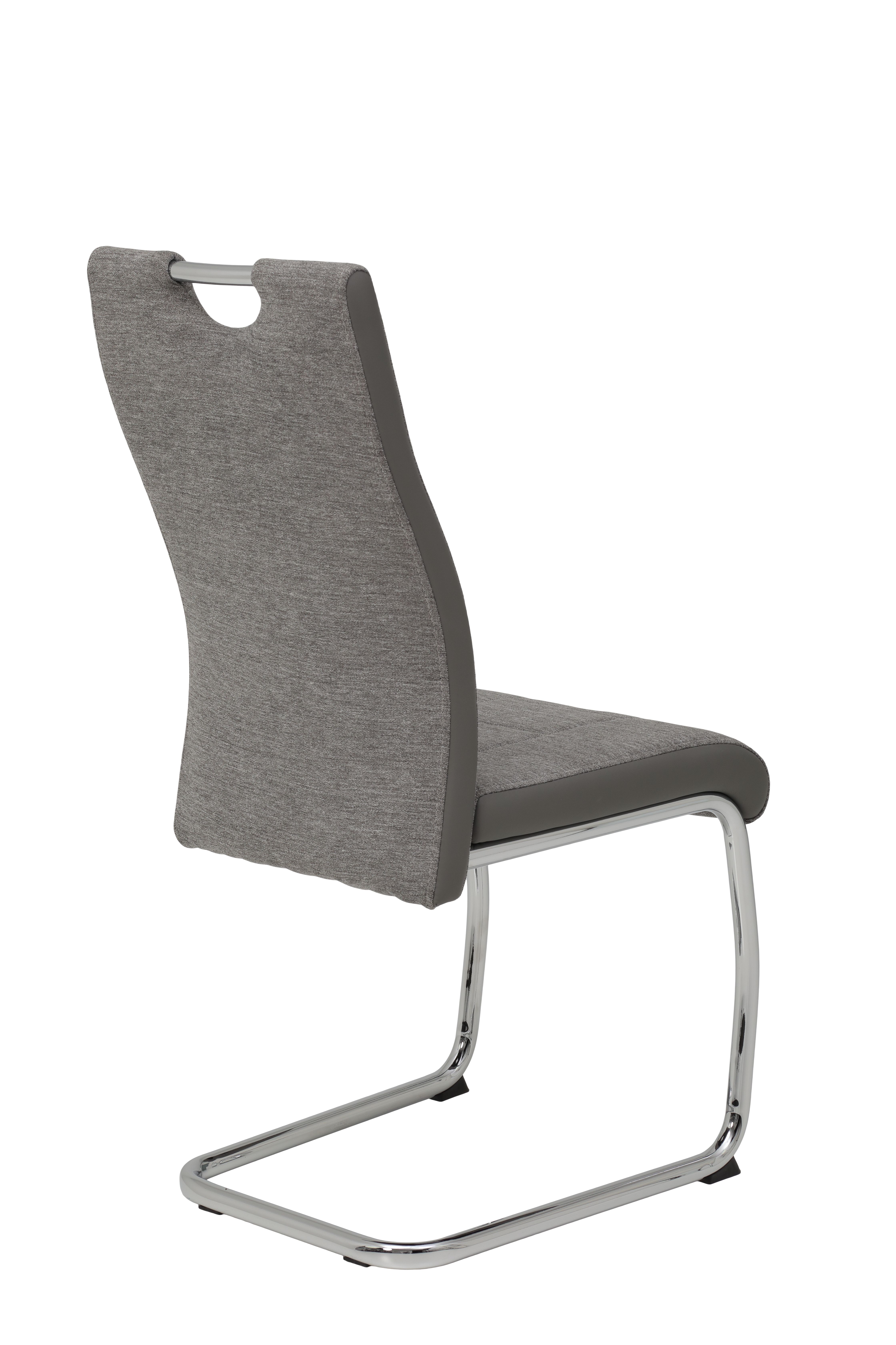 Bezug: Webstoff in grau melliert aus 100% Polyester; Seiten in schwarzem Kunstleder aus 97% Polyurethan und 3% Baumwolle
