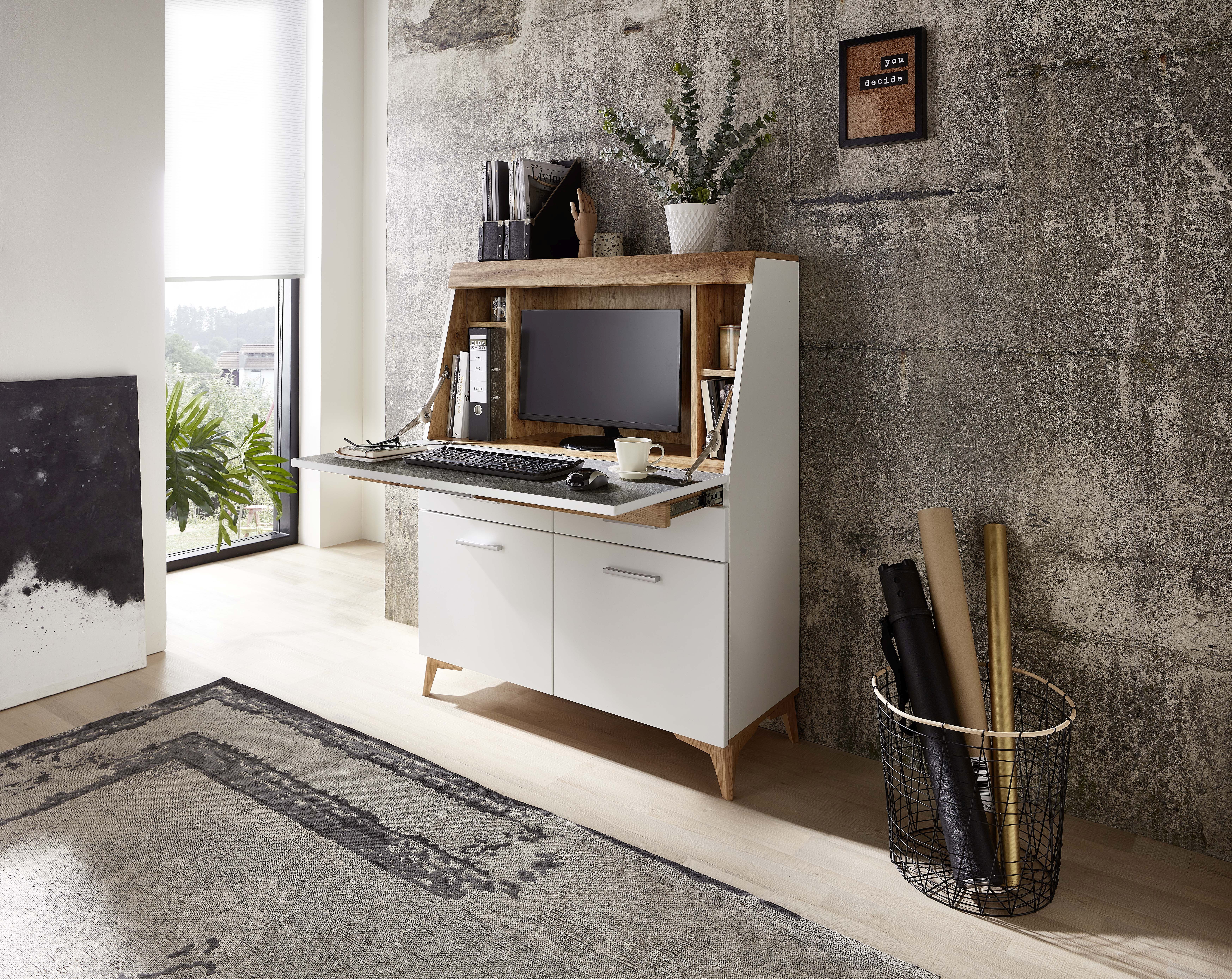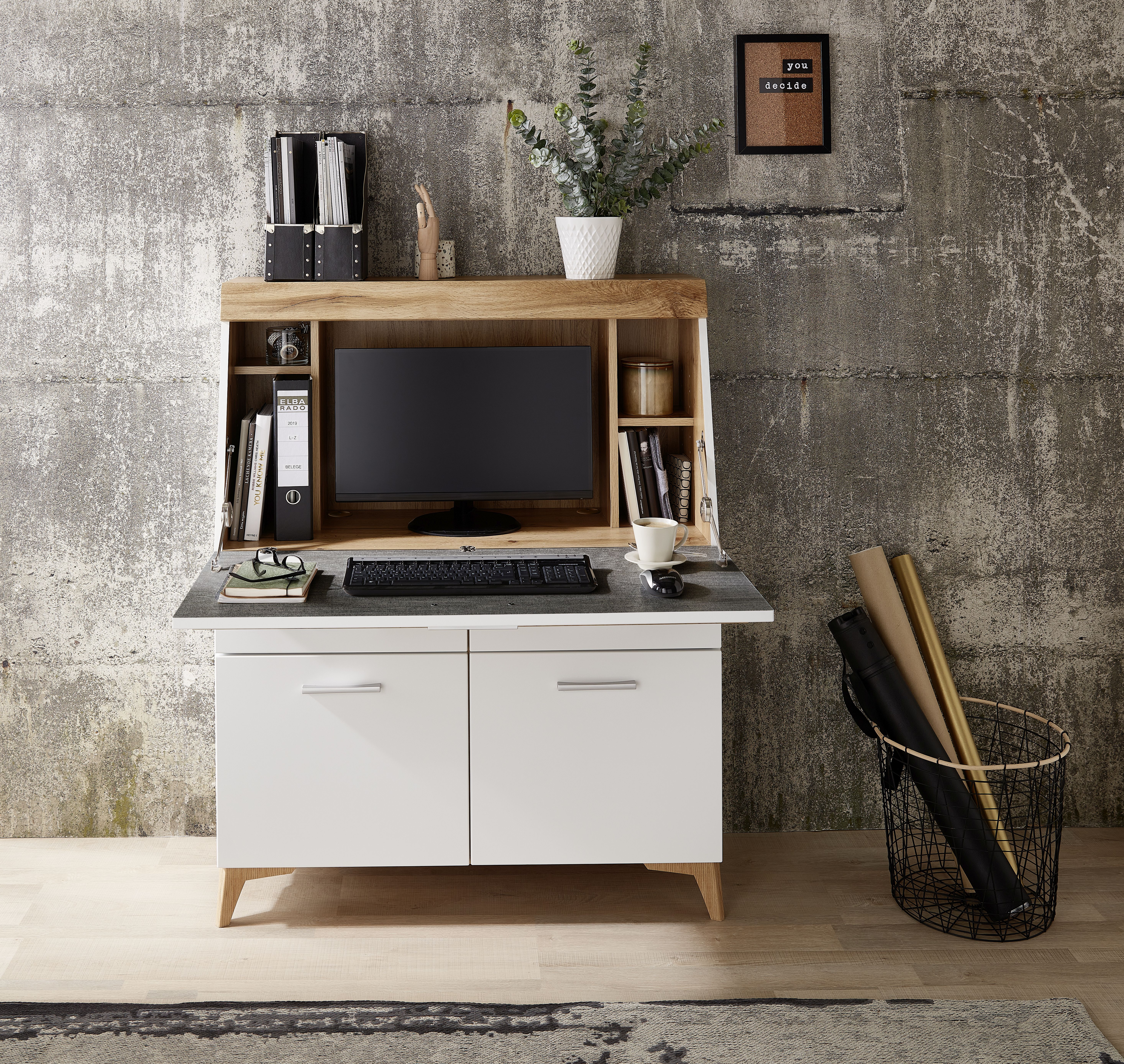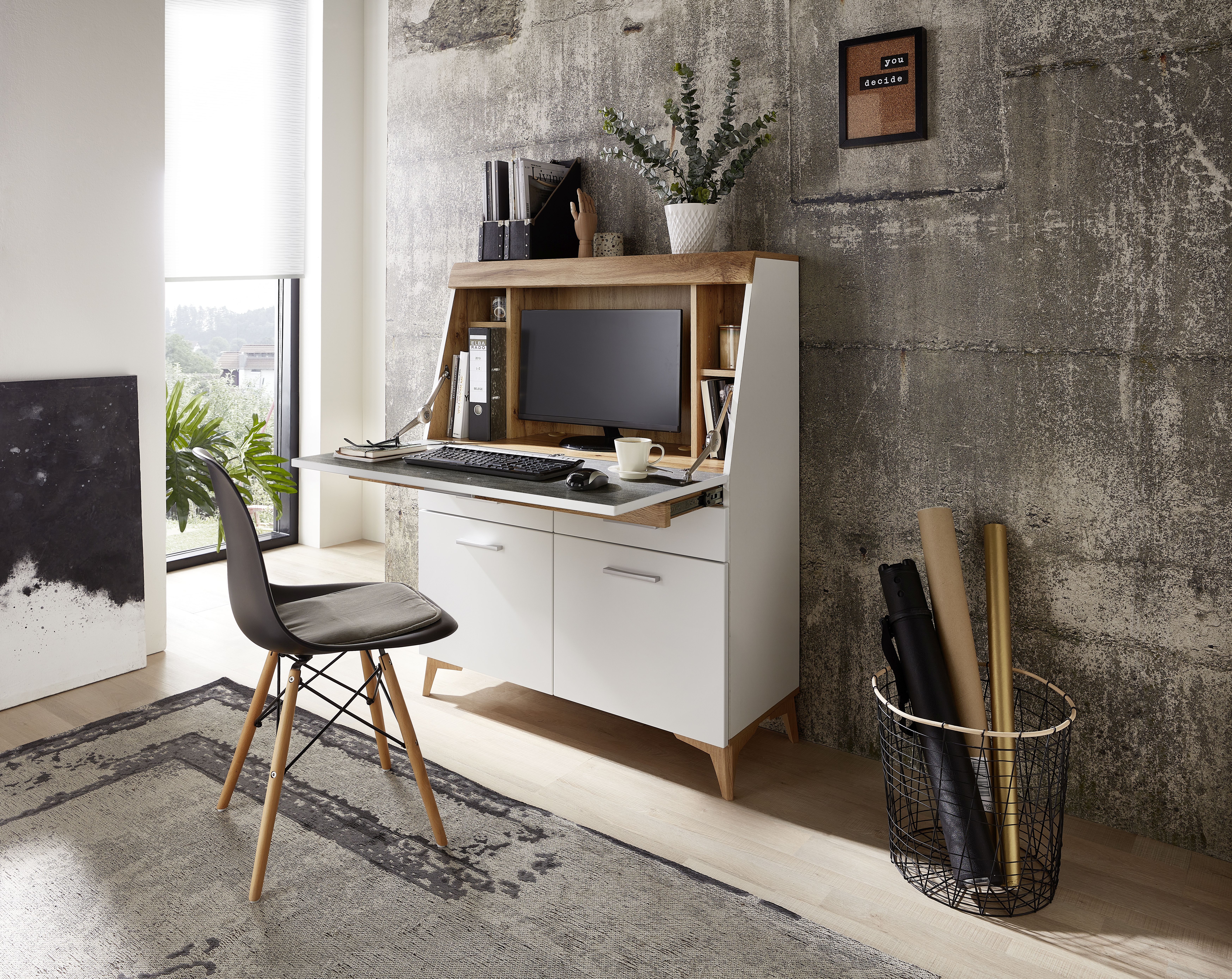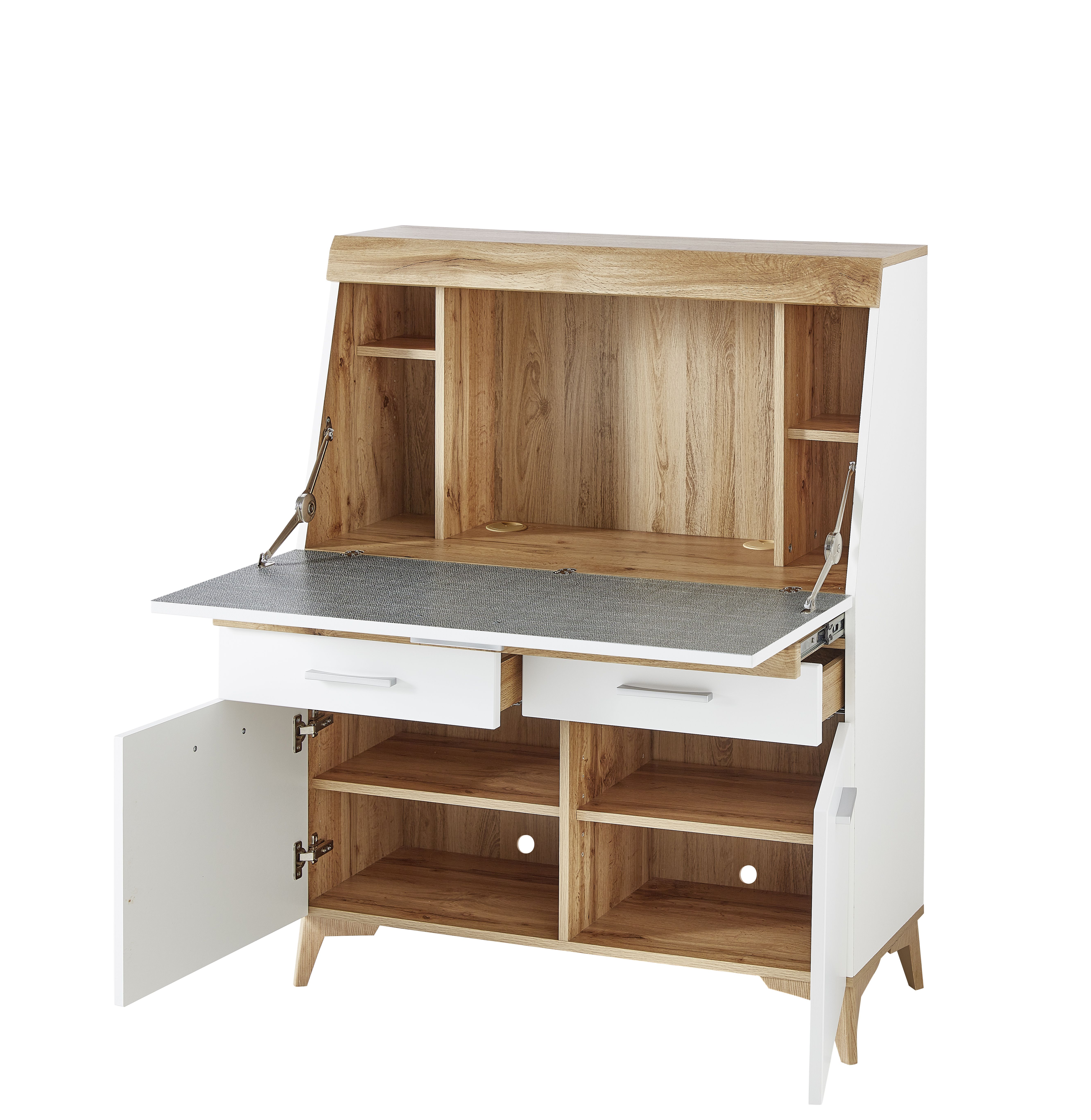 Front: Weiß matt MDF mit Absetzungen in Eiche Altholz Holznachbildung