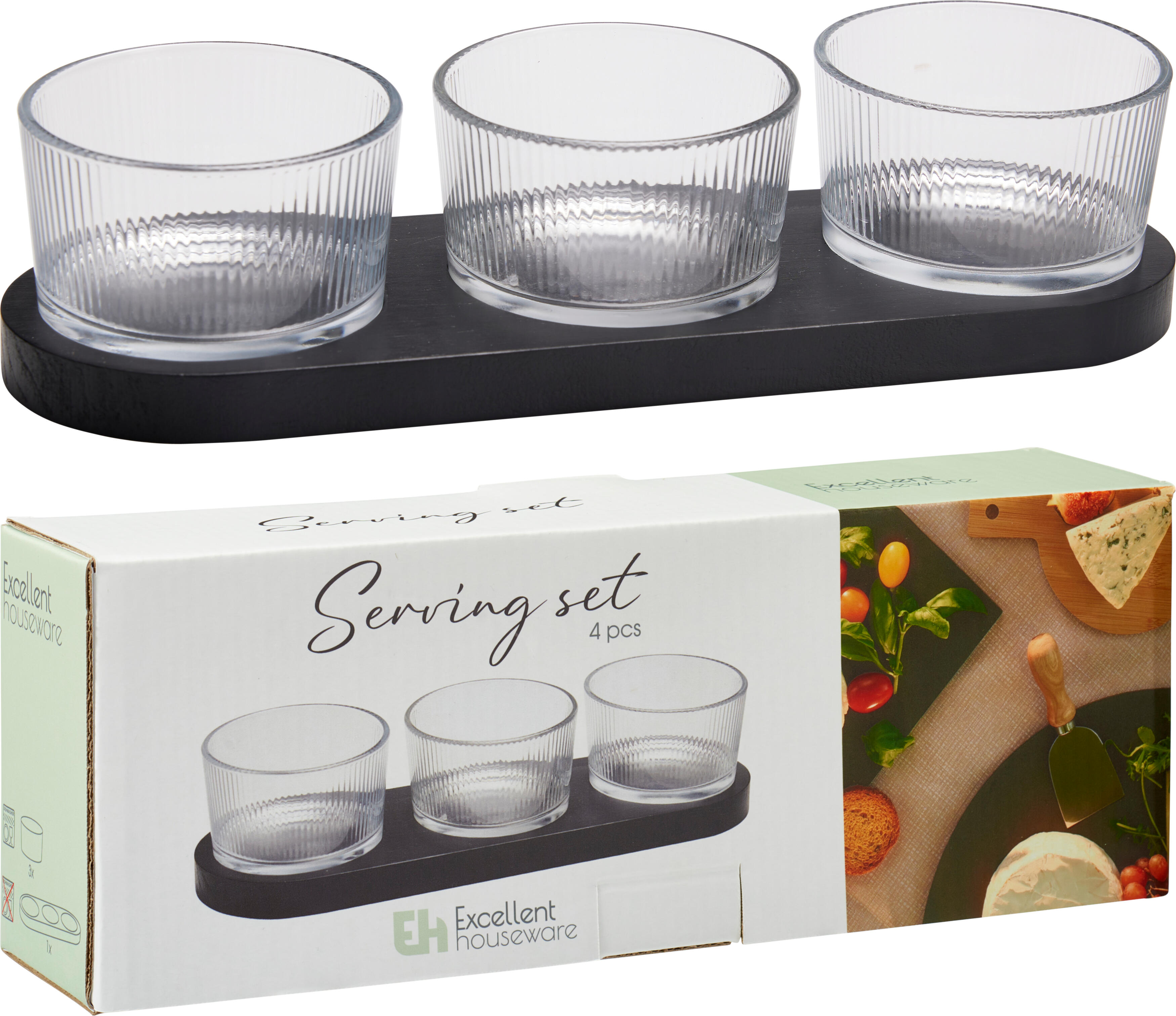 1 Servierset bestehend aus 3 Gläsern und 1 Tablett