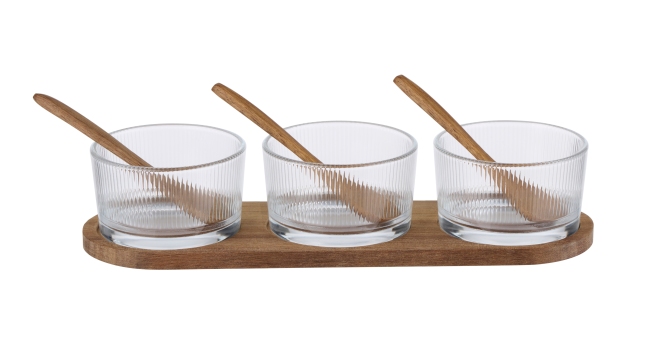 1 Servierset bestehend aus einem Servierbrett, 3 Schalen, 3 Löffeln