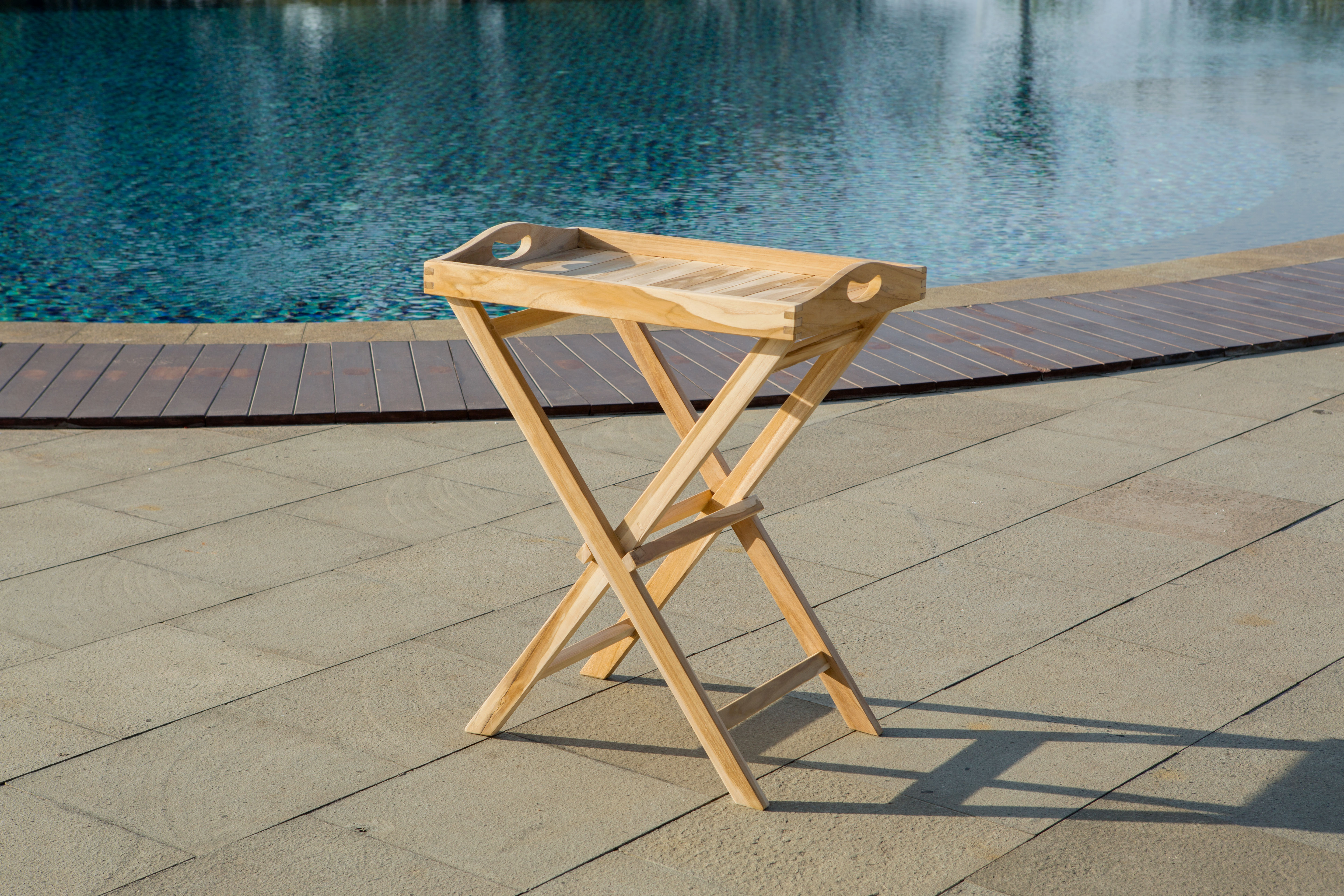Dieses Möbel ist komplett naturbelassen, also nicht geölt oder lackiert, was mit der Zeit zu einer Vergrauung der Holzoberfläche führen wird. Wer es lieber „clean“ mag, der möge die Möbel mit handelsüblichem Teaköl (gibt es in jedem Baumarkt) gemäß Packungsbeilage pflegen.