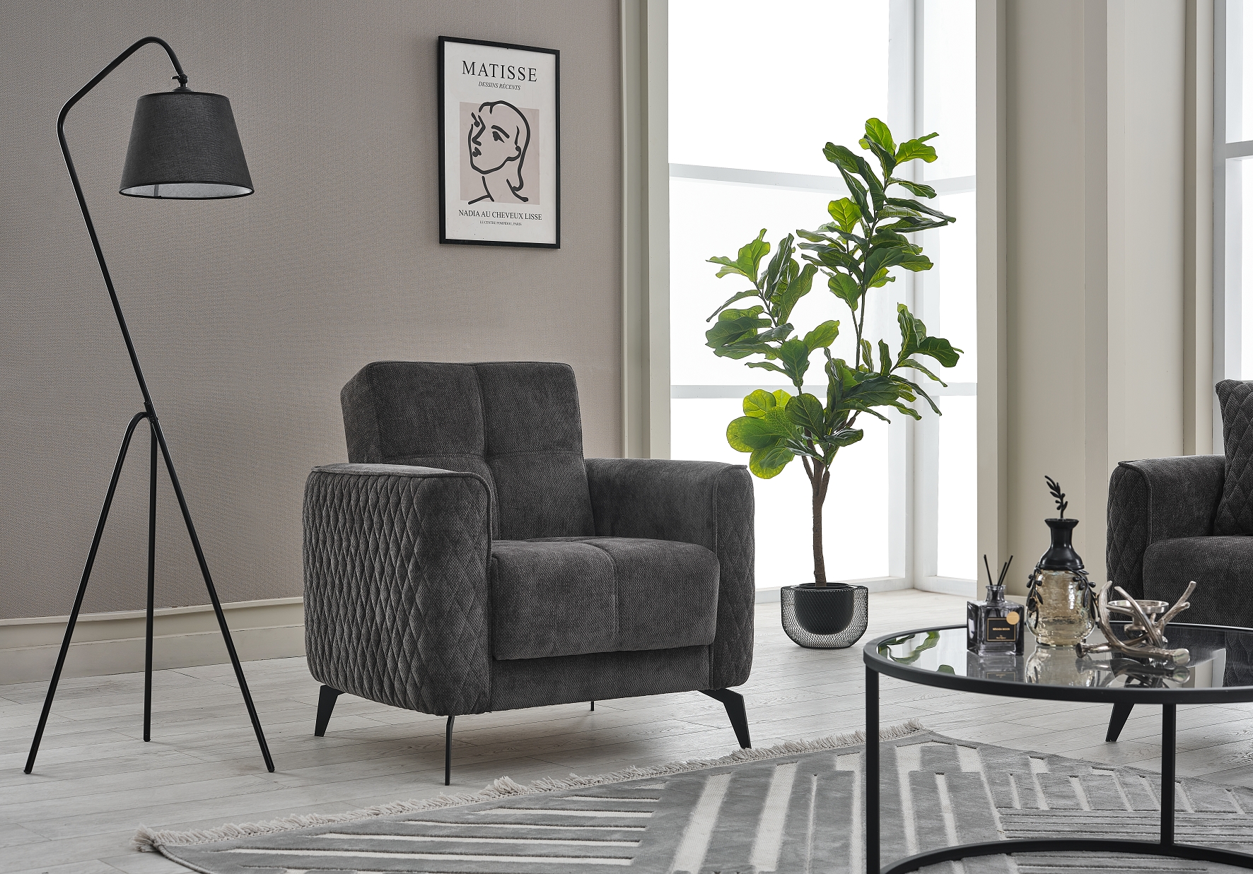 Dieser Sessel ist eine funktionale Ergänzung für Wohnräume mit begrenztem Platz oder als Teil einer Sitzgruppe. Der Bezug ist strapazierfähig und pflegeleicht – ideal für den täglichen Gebrauch. Sitz- und Rückenfläche sind mit Bonellfederkern gepolstert und bieten angenehmen, gleichmäßigen Komfort. Der Rücken ist rundum mit Echtstoff bezogen, sodass der Sessel auch frei im Raum platziert werden kann. Schwarze Metallfüße sorgen für sicheren Stand und eine schlichte, moderne Optik. Die Lieferung erfolgt ohne Dekoration.