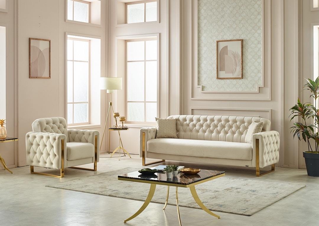 Bezug: Stoff Melon Soft 02 in der Farbe beige aus 70% Polyester und 30% Baumwolle